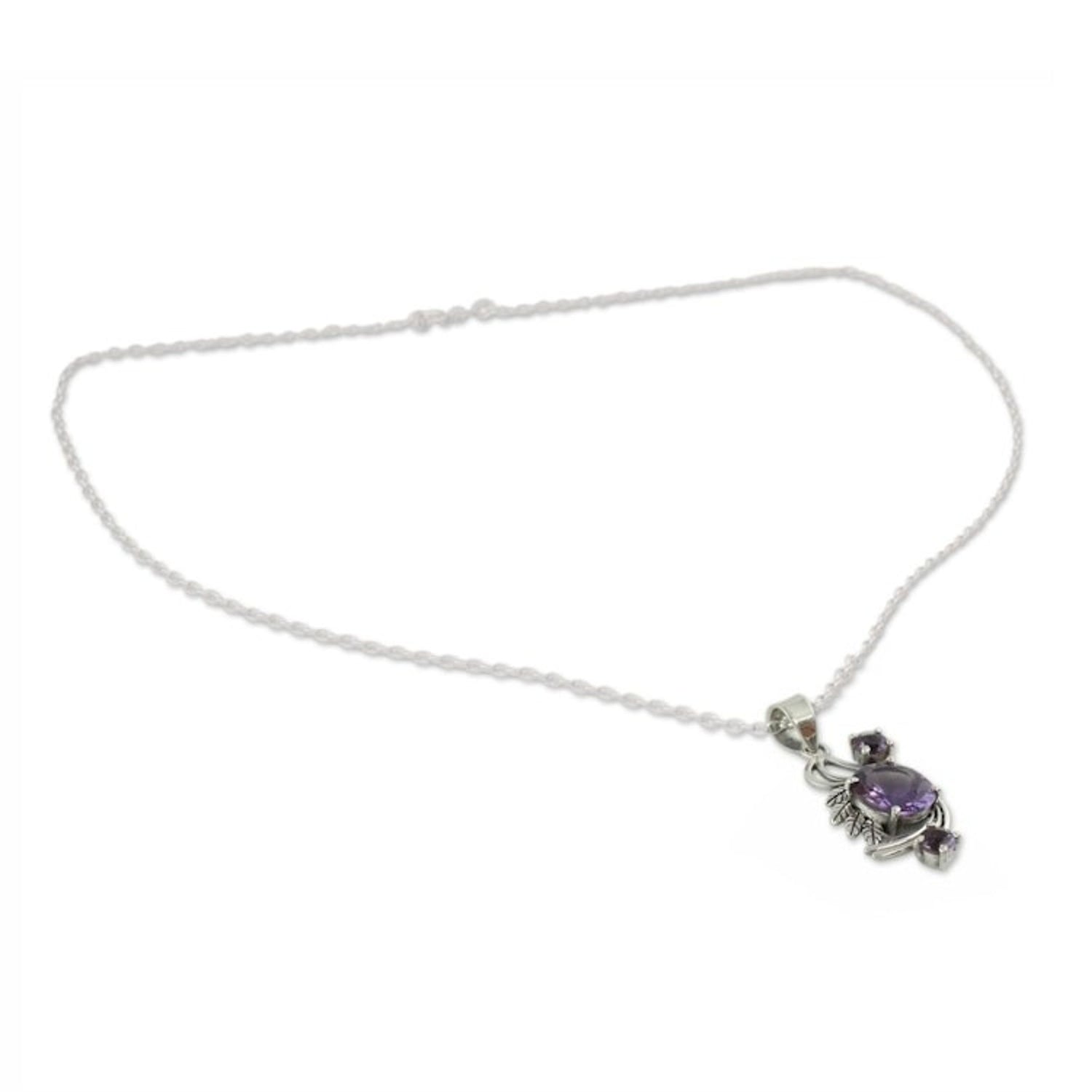 Handcrafted in India, this necklace is made from sterling silver and amethyst. It features a combination finish and a cable chain, with the pendant measuring 1.5 inches L x 0.6 inches W. The necklace is 18 inches L and secures with a spring ring clasp.