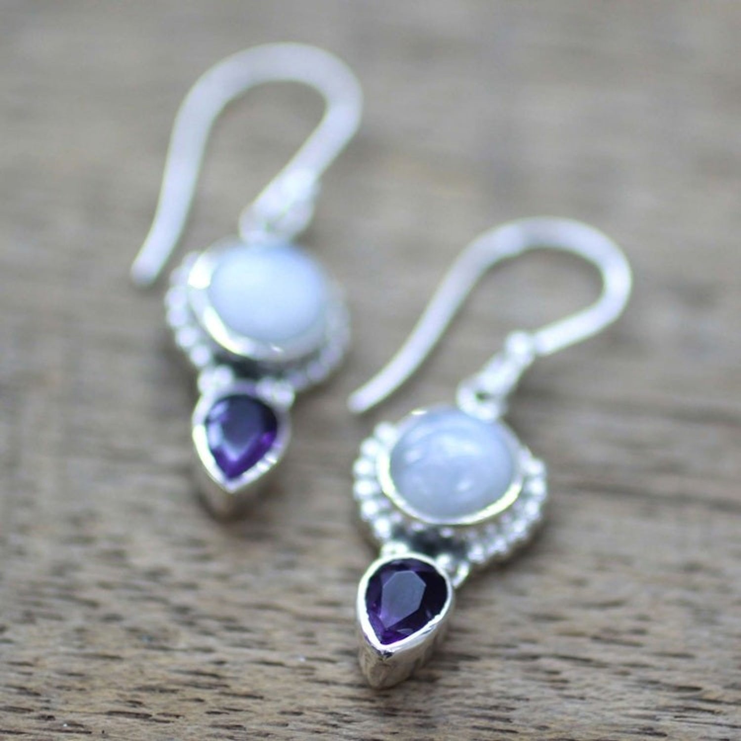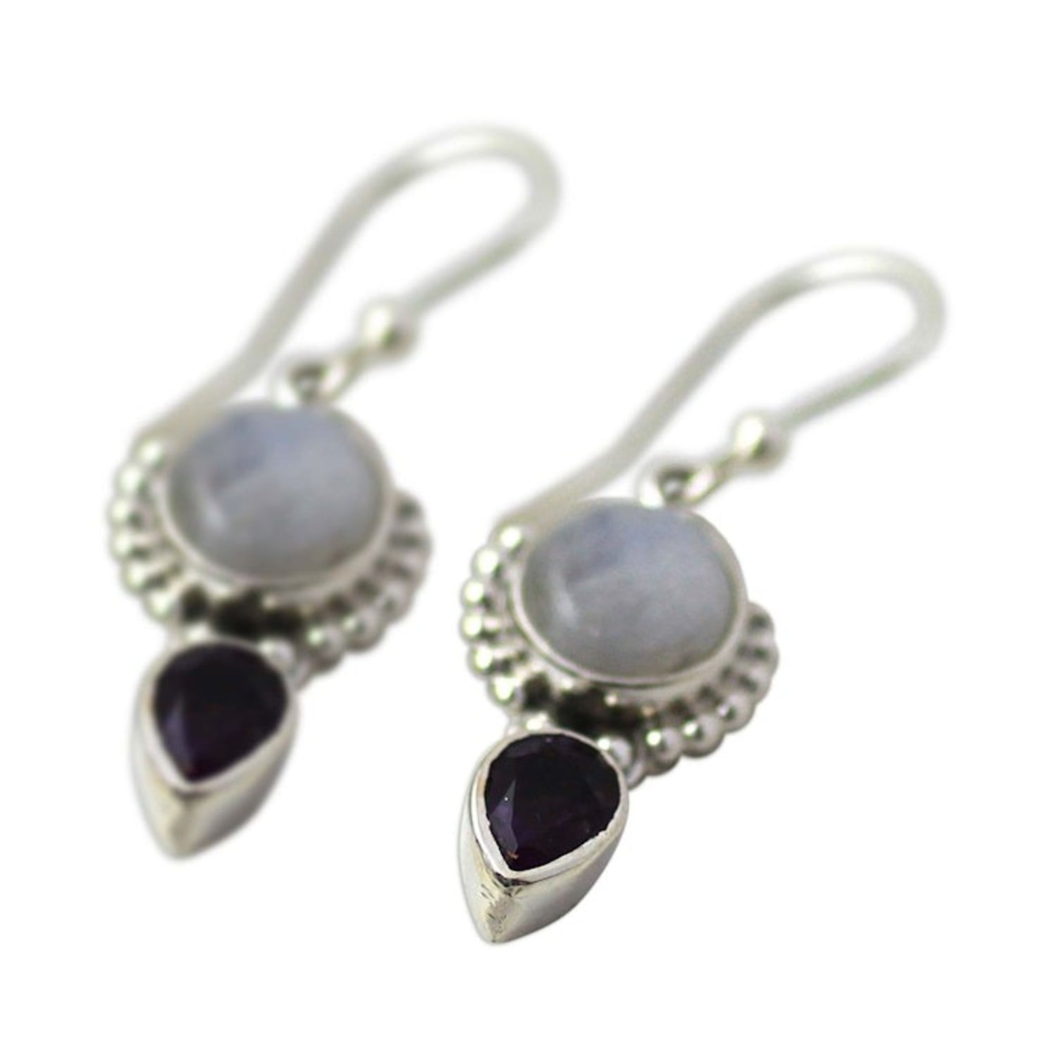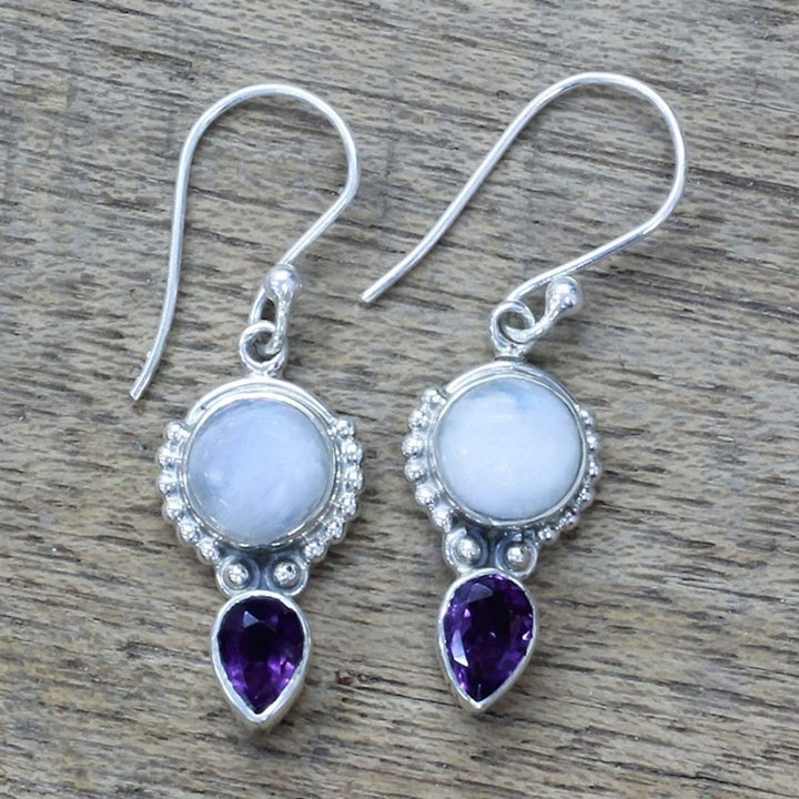Amethyst Rainbow Moonstone Dangle Earrings from India 'Indian Rain'