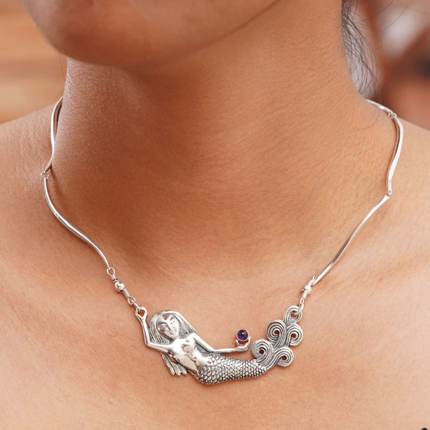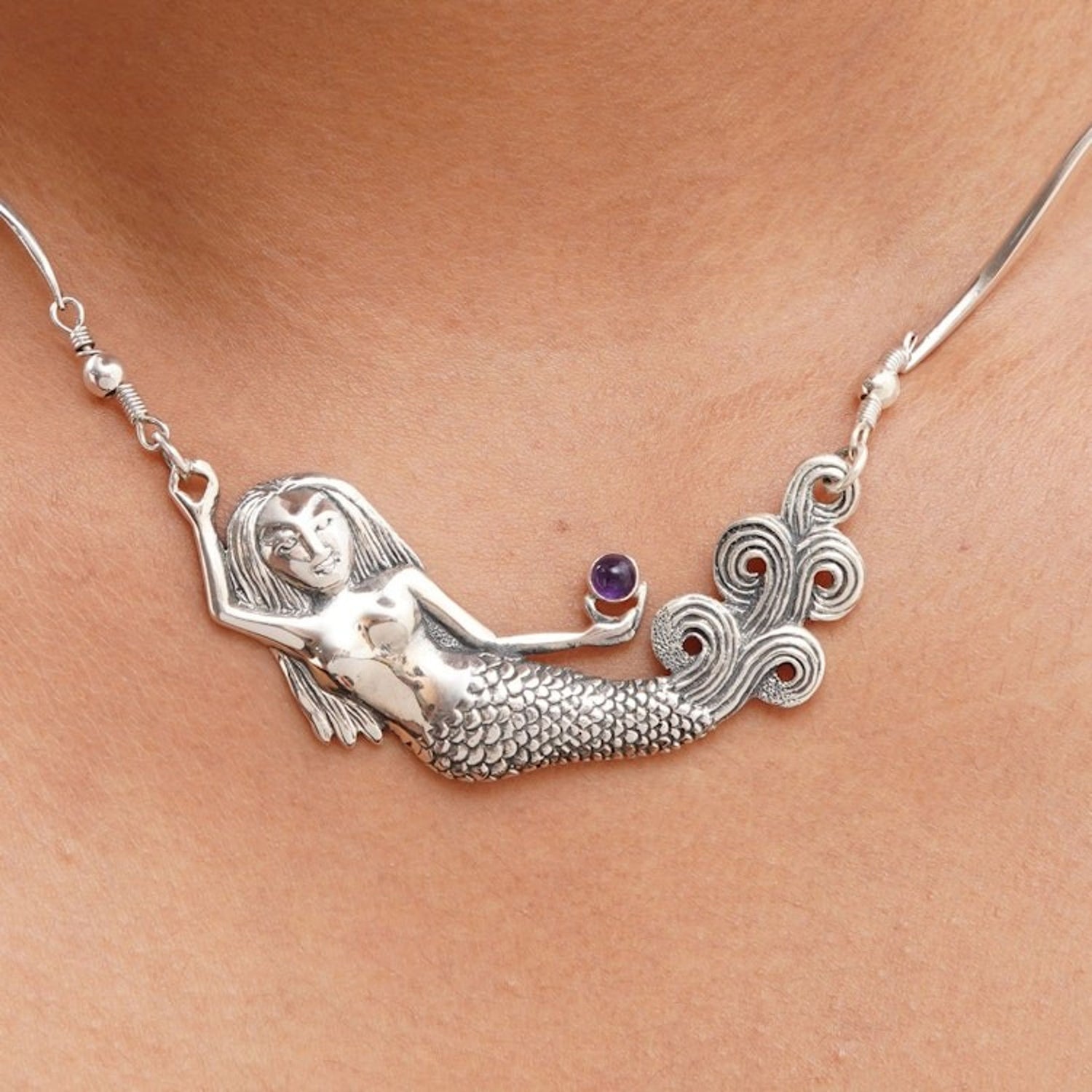 Amethyst Sterling Silver Pendant Necklace 'Mermaid Spell'