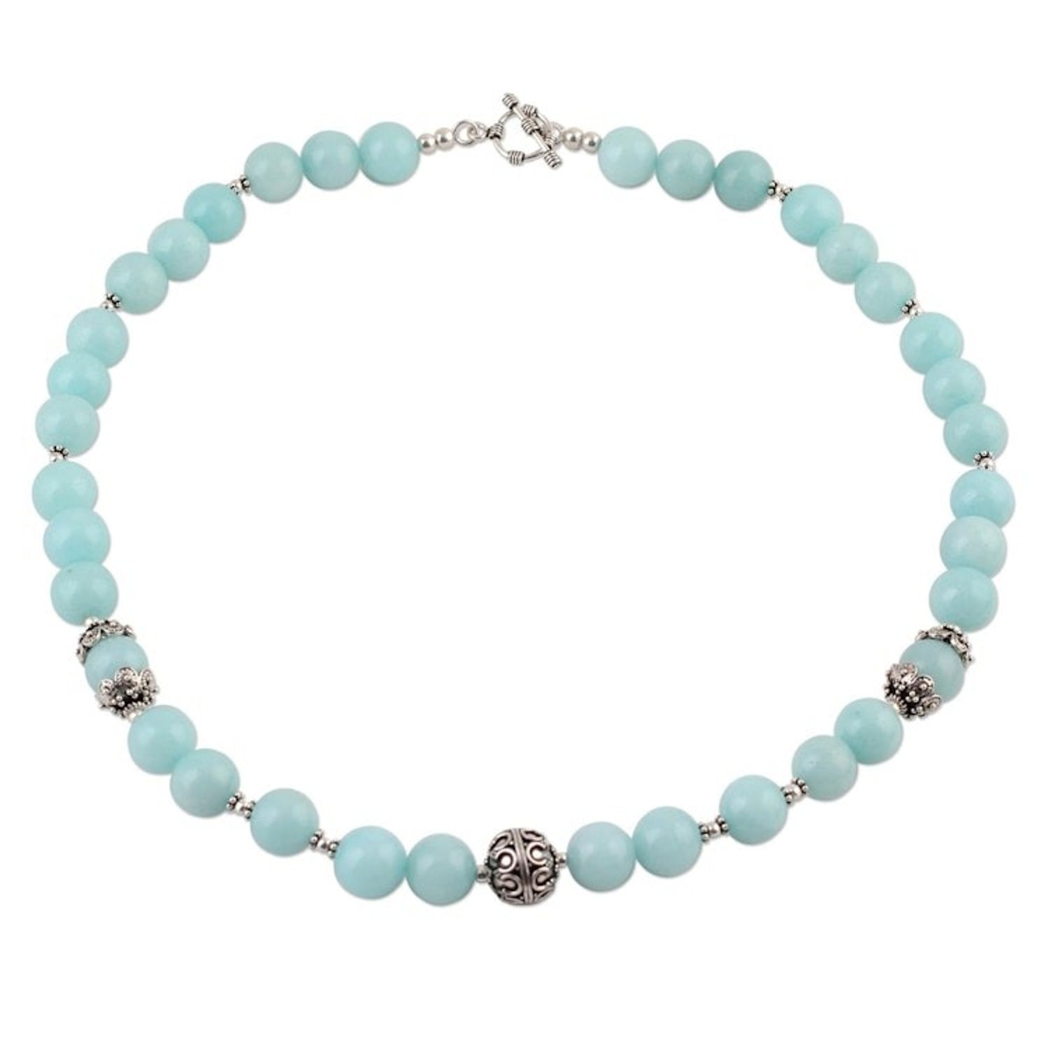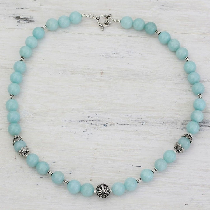 Aqua Aventurine and Sterling Silver Beaded Necklace 'Morning Dance'