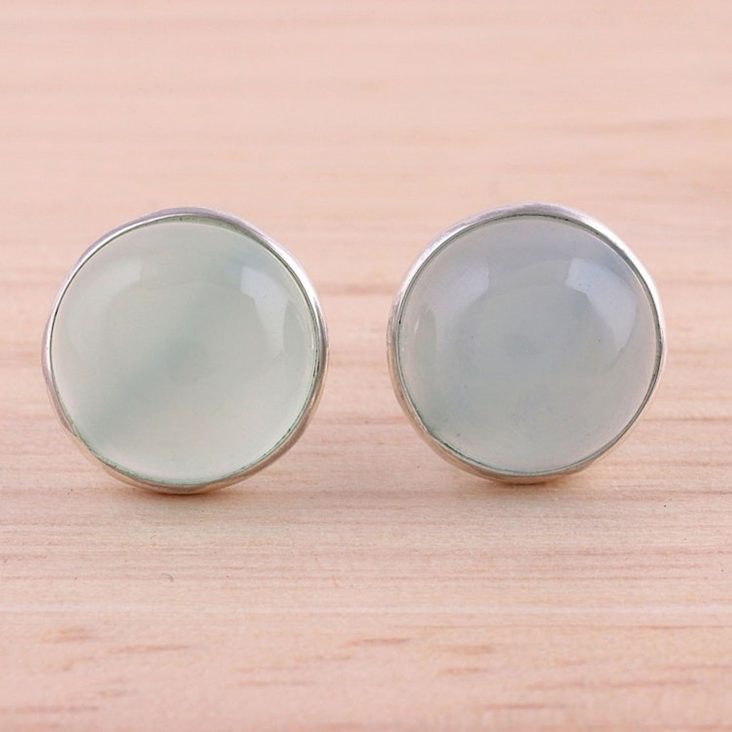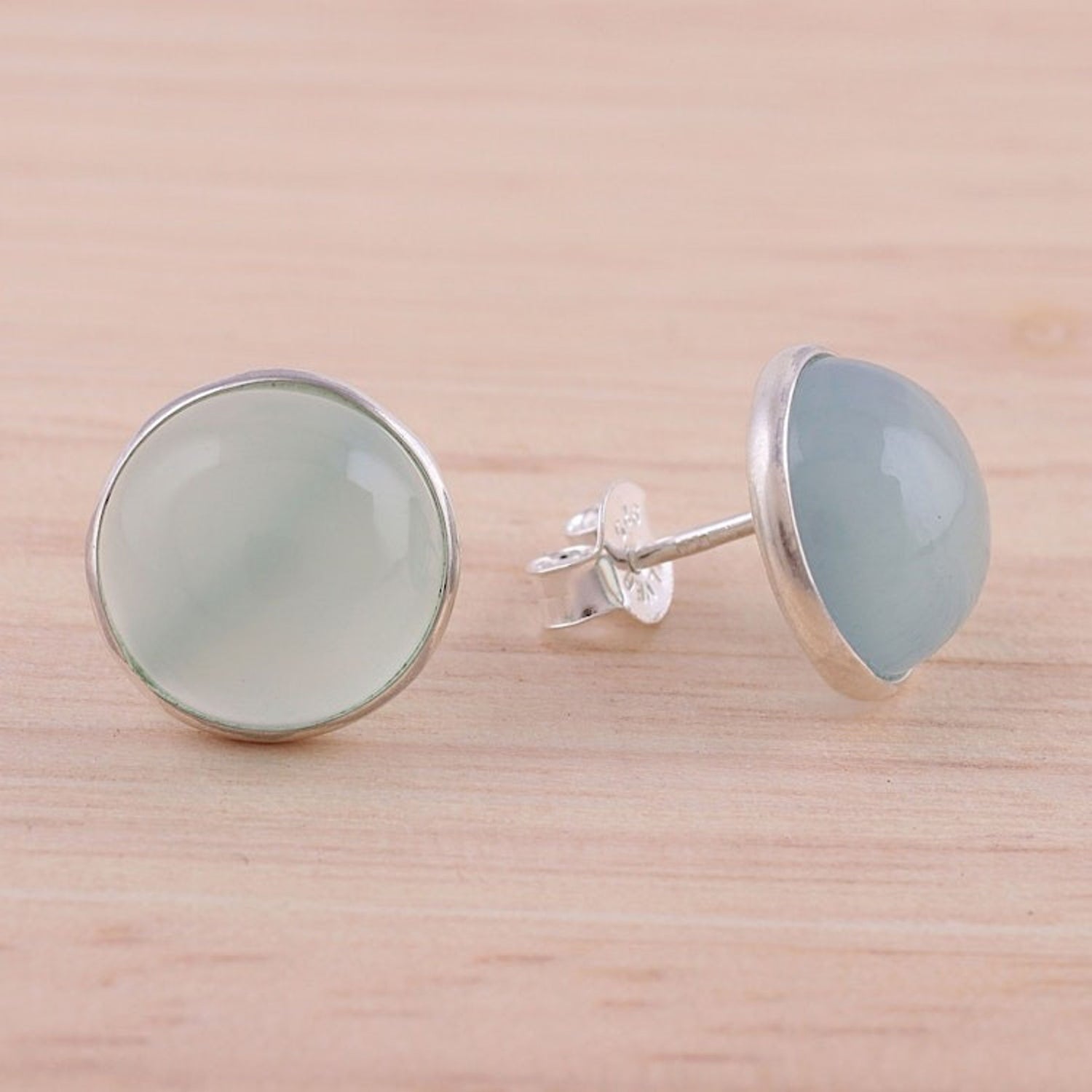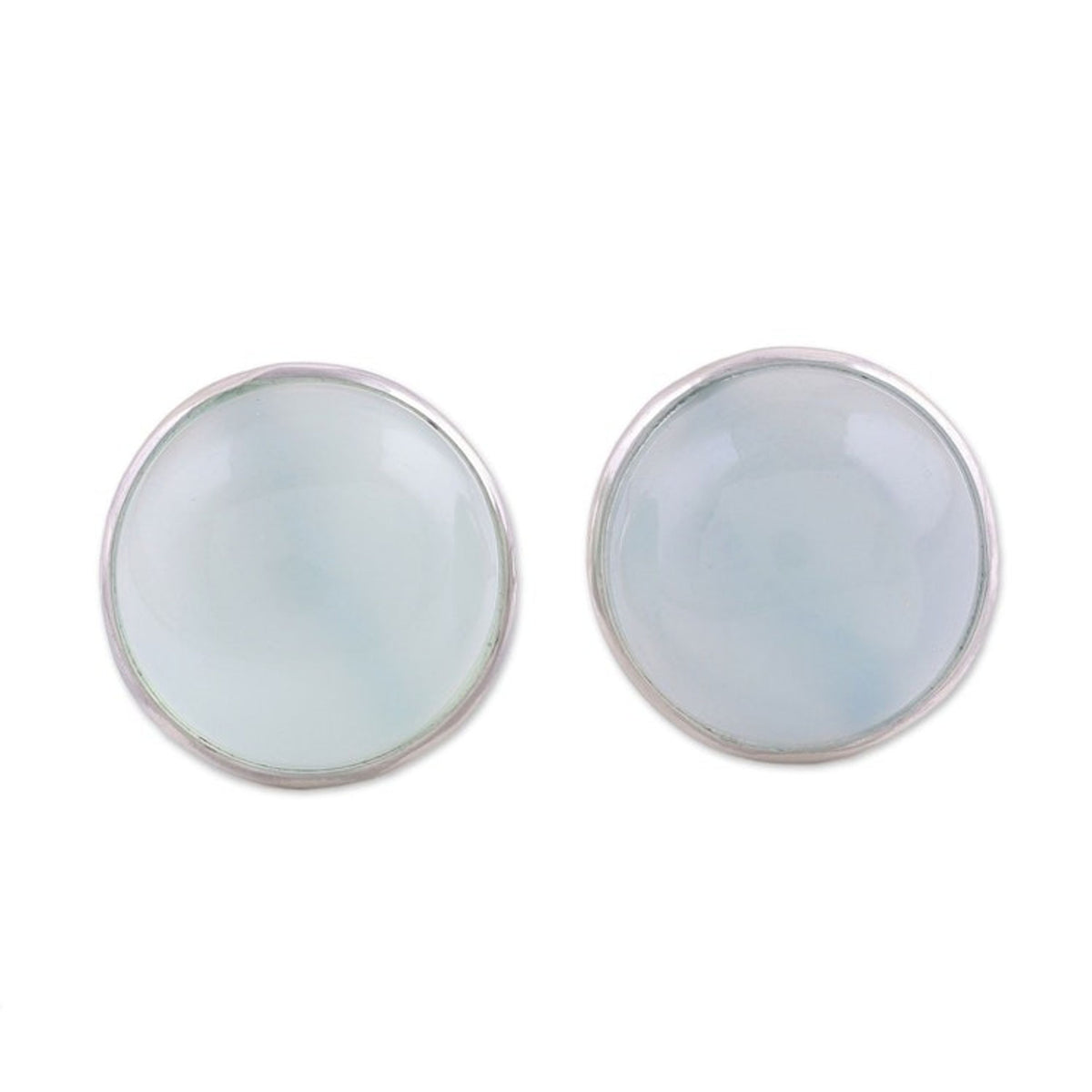 Aqua Chalcedony Round Button Earrings from India 'Moonlight Peace'