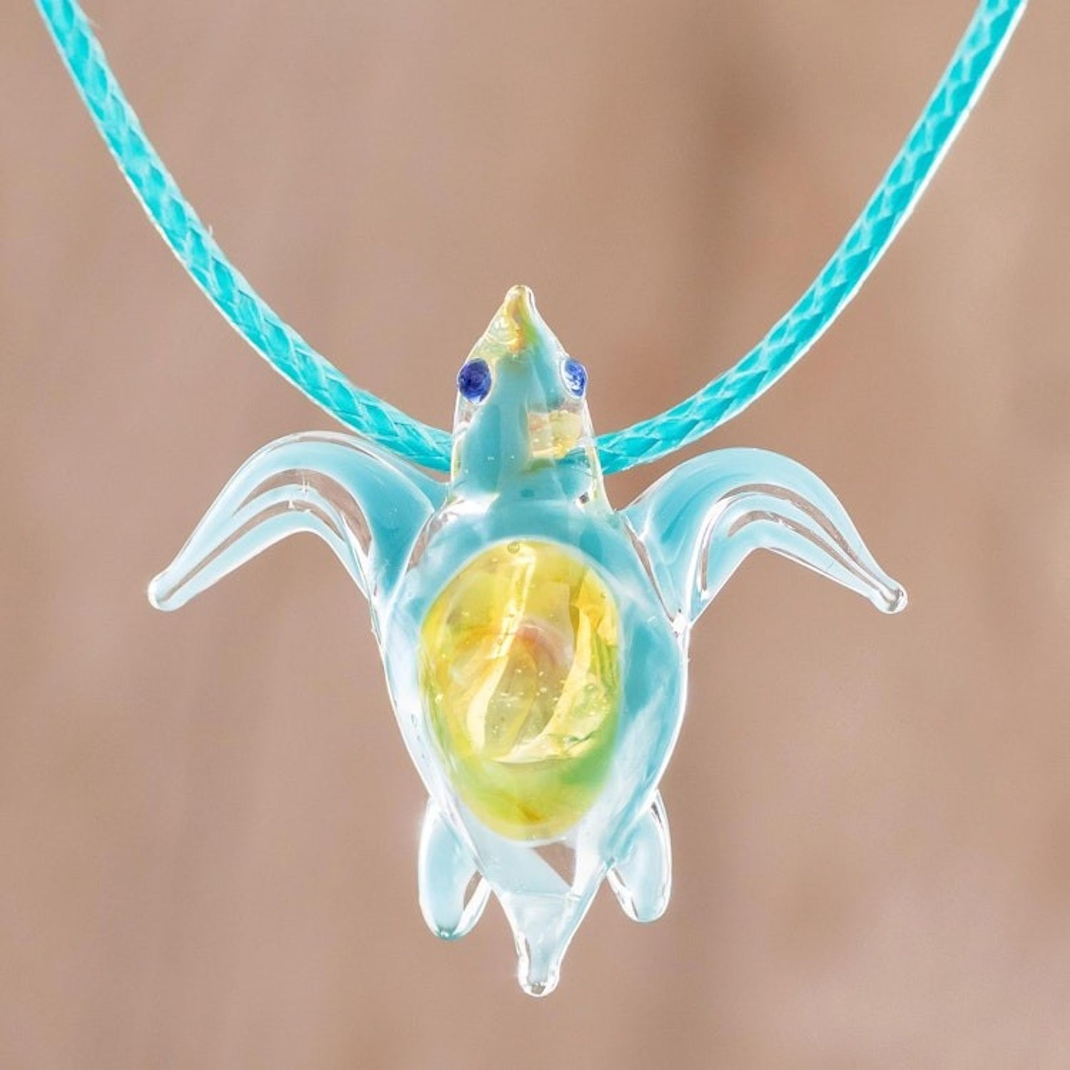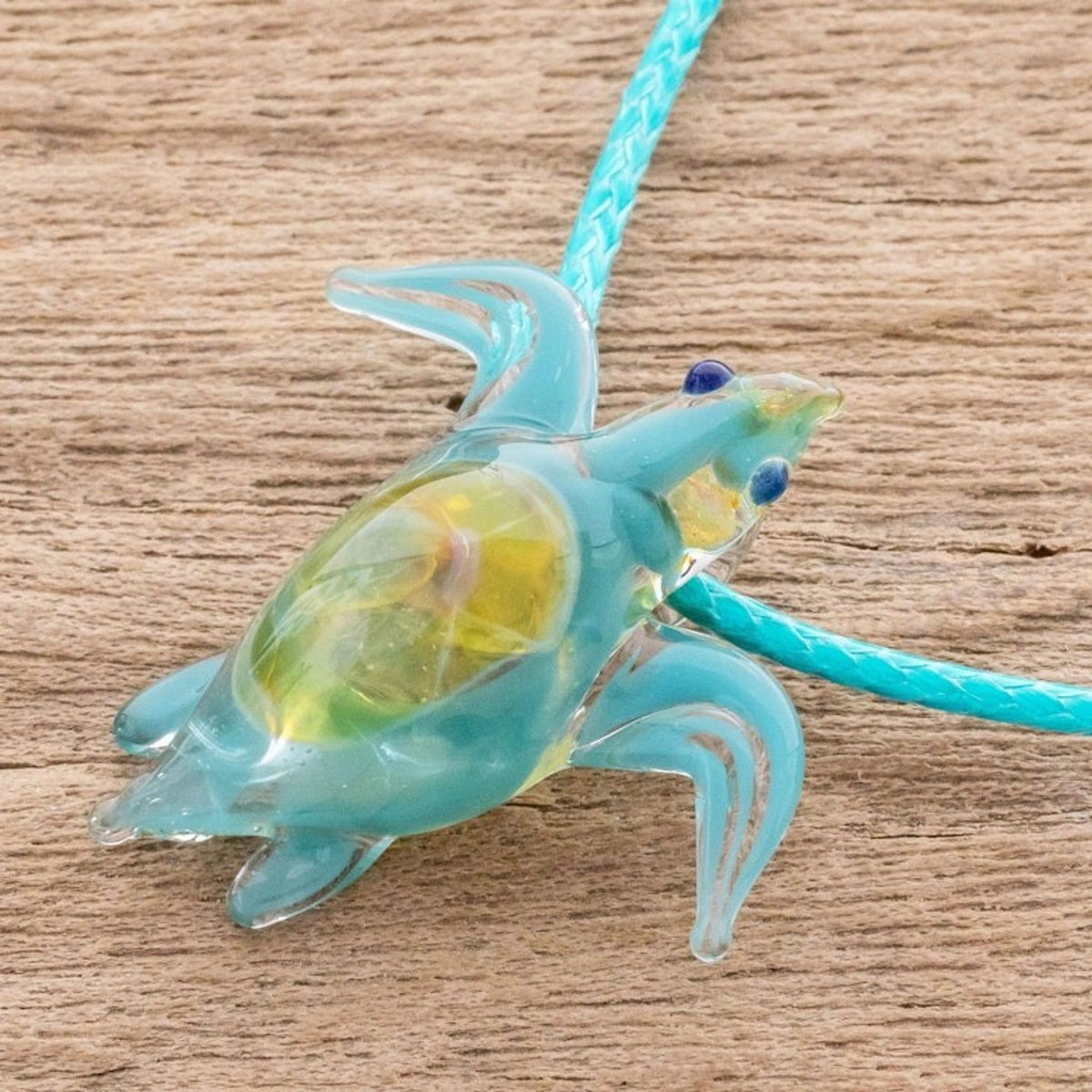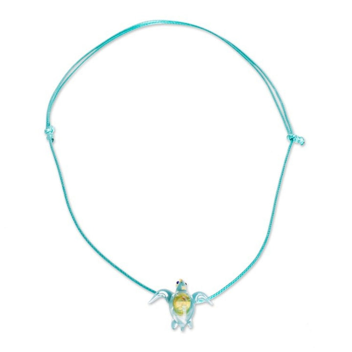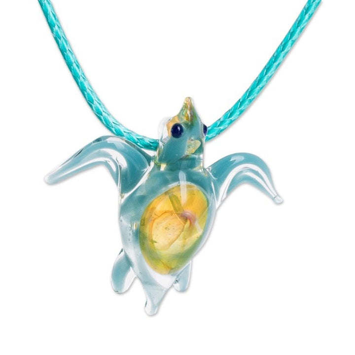 Art Glass Sea Turtle Pendant Necklace from Costa Rica 'In the Ocean'