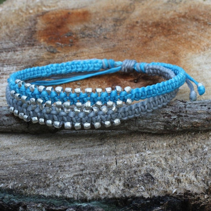 Artisan Braided Bracelet with Silver Plated Beads 'Blue-Gray Urban Siam'
