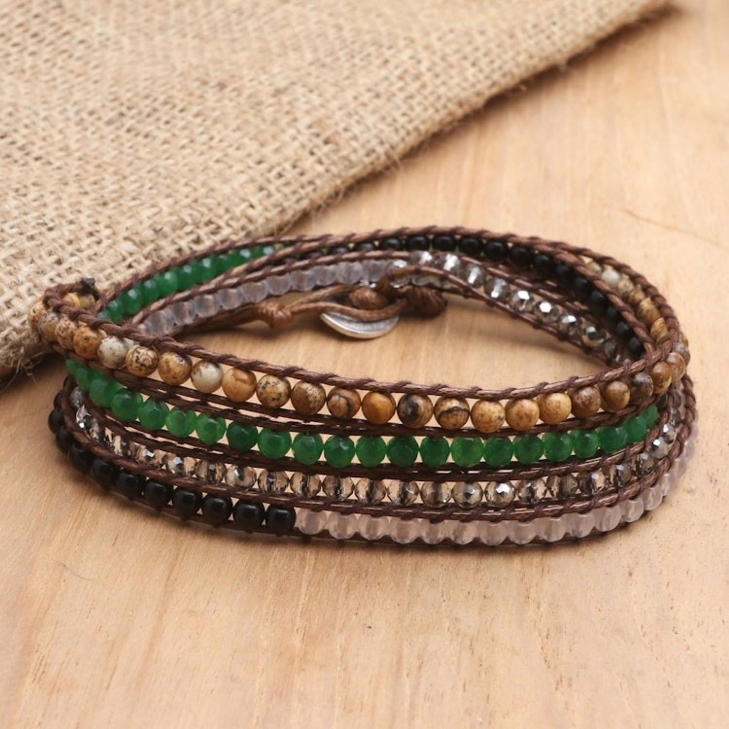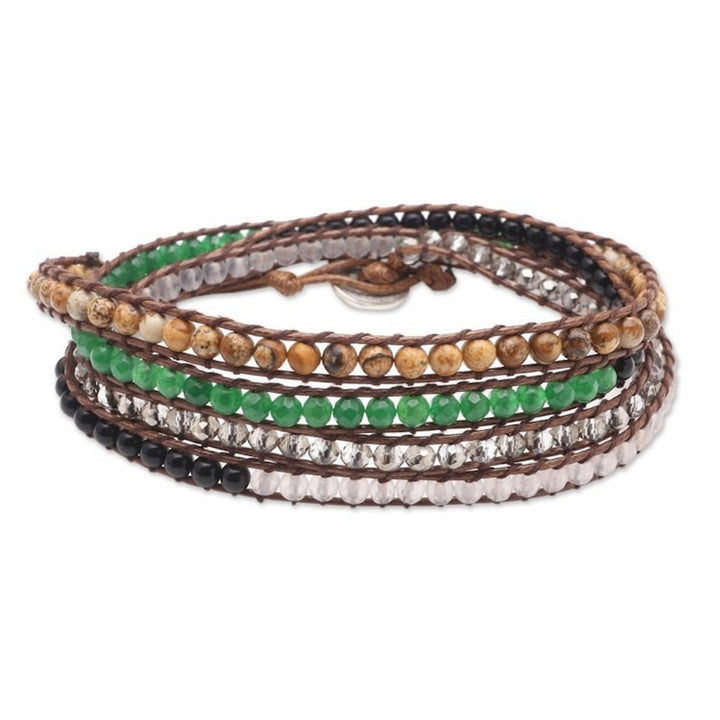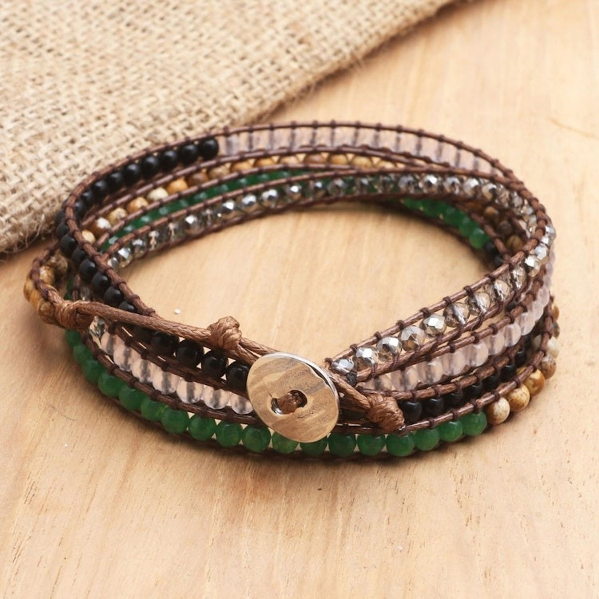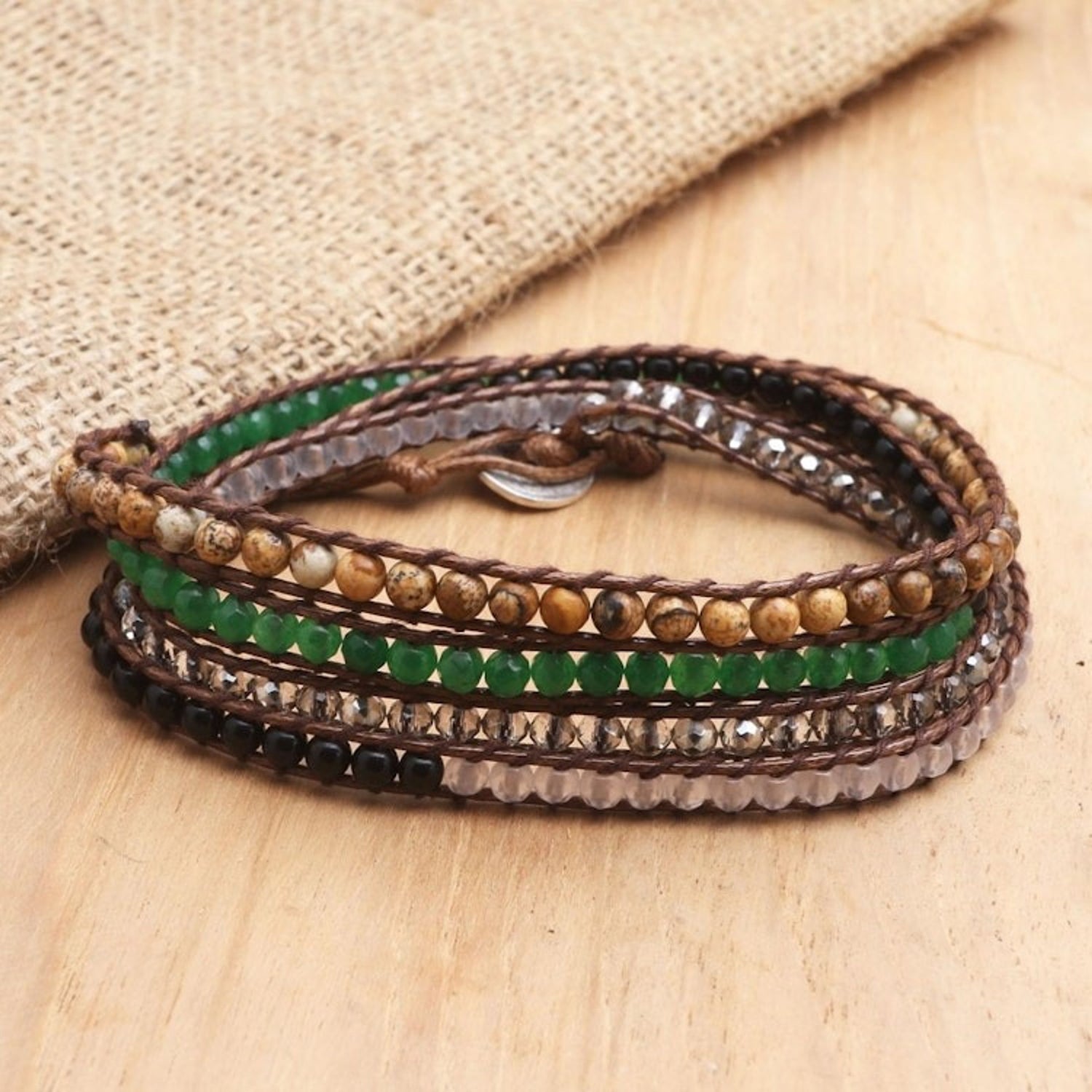 Artisan Crafted Agate and Onyx Beaded Wrap Bracelet 'Earth Song'