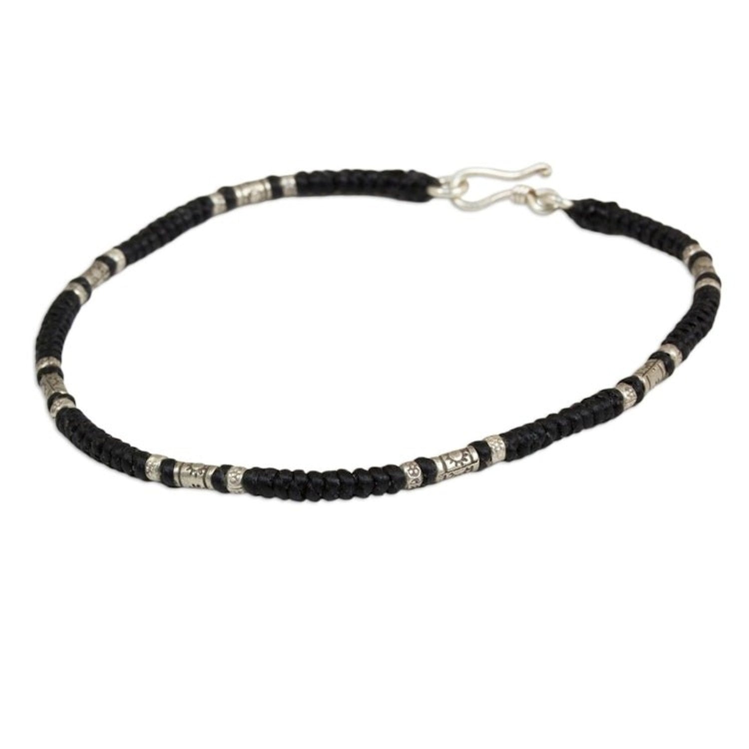 Handcrafted in Thailand from waxed polyester cord and 950 silver beads with a .925 sterling silver S-hook clasp, this anklet measures 9.8 inches L and 3 mm W.