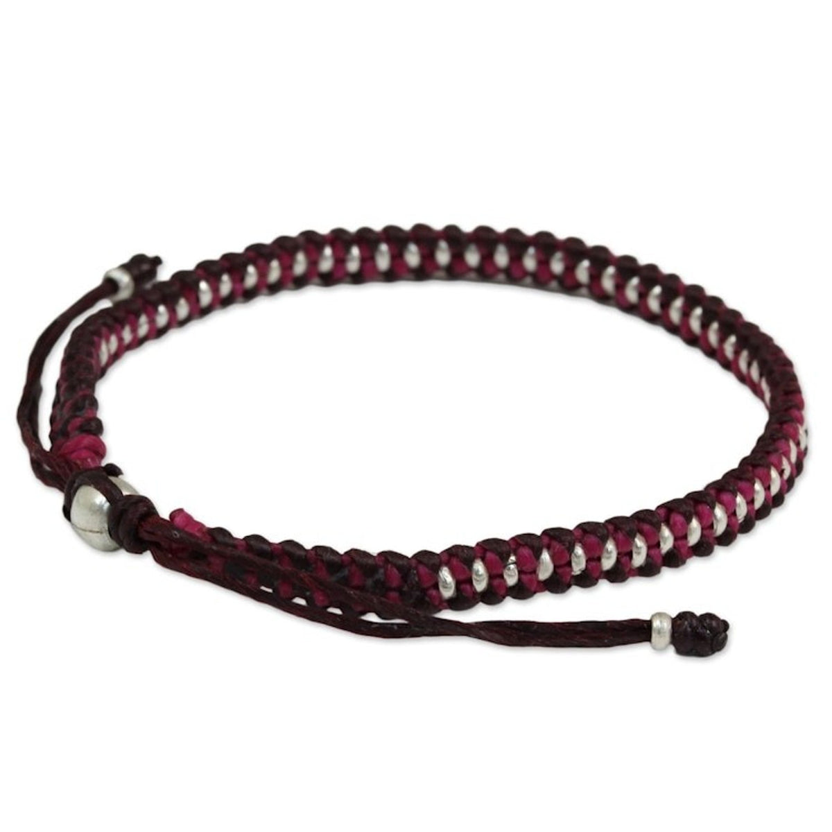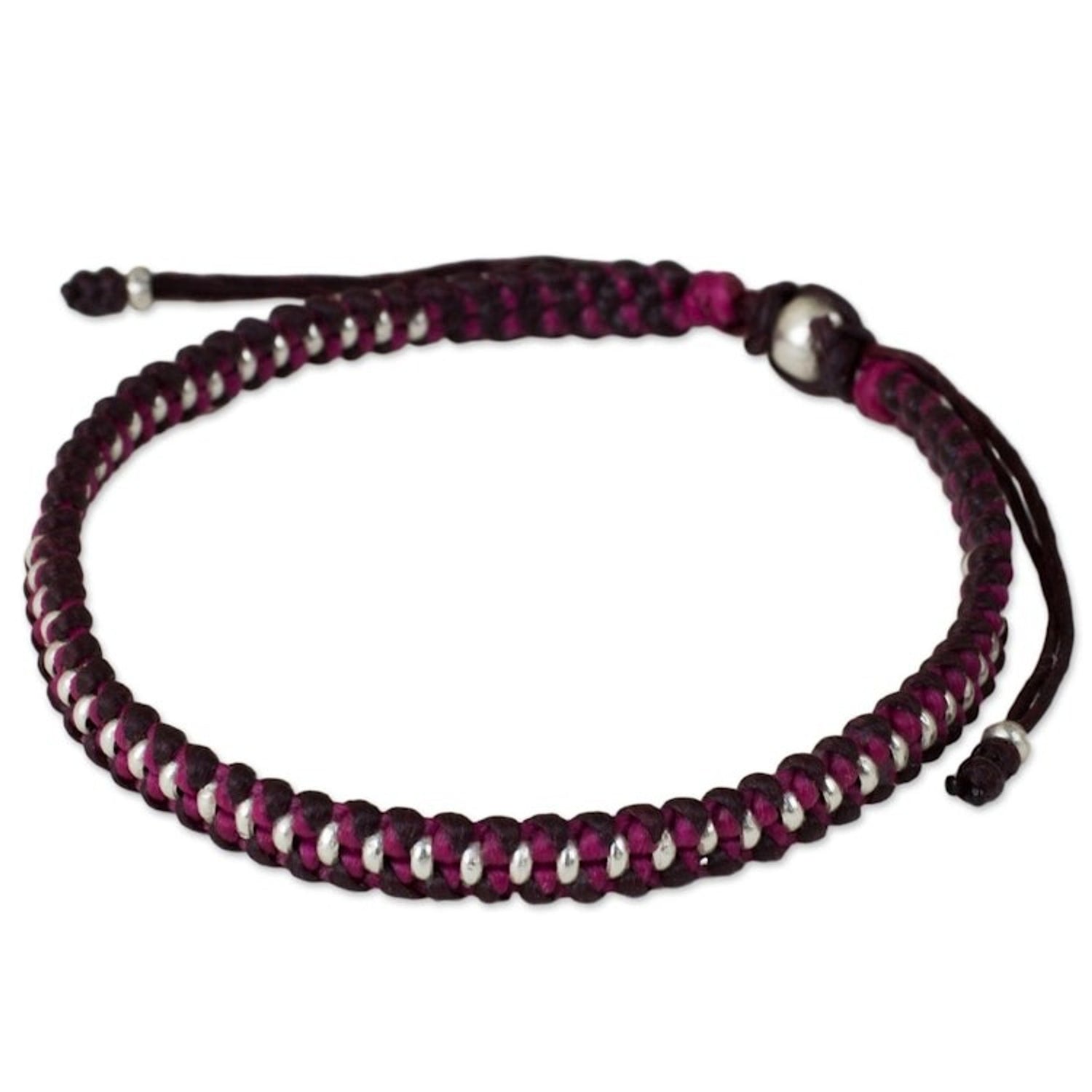 Artisan Crafted Braided Bracelet with Silver Beads 'Bringing Friendship in Magenta'
