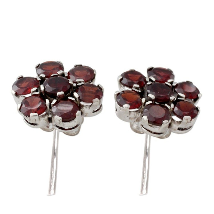 Artisan Crafted Floral Button Earrings with Garnet 'Romantic Blossom'