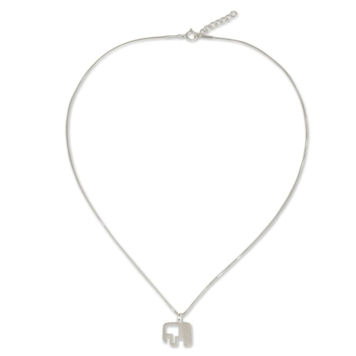 This Artisan Crafted Silver Elephant Necklace from Thailand by Independent Artisans, titled 'Elephant Geometry,' is a unique and geometric design from Thai artisan Jantana. The pendant is a brushed silver elephant with an artful geometric cutout. It graces a sleek sterling silver Venetian box chain, creating a necklace in her hallmark style. This piece reflects the artisan's commitment to her community and her love for sharing joy, beauty, and craftsmanship with the world.