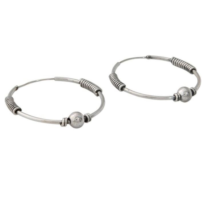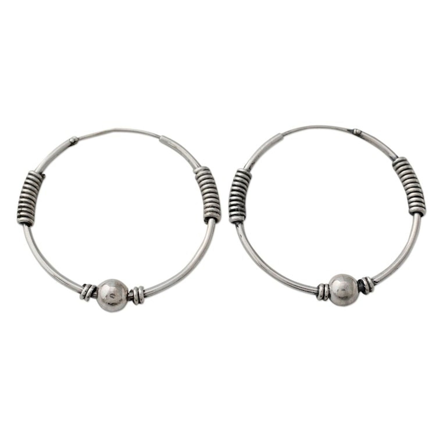 These Artisan Crafted Sterling Silver Endless Hoop Earrings by Independent Artisans, titled 'High Wire,' are a timeless design from Indian artisan Mahavir. The sterling silver hoop earrings are given a modern upgrade with lightly-oxidized twists of wire and polished silver balls. This piece reflects the artisan's belief that jewelry is one of the most expressive art forms, with endless possibilities for innovation.