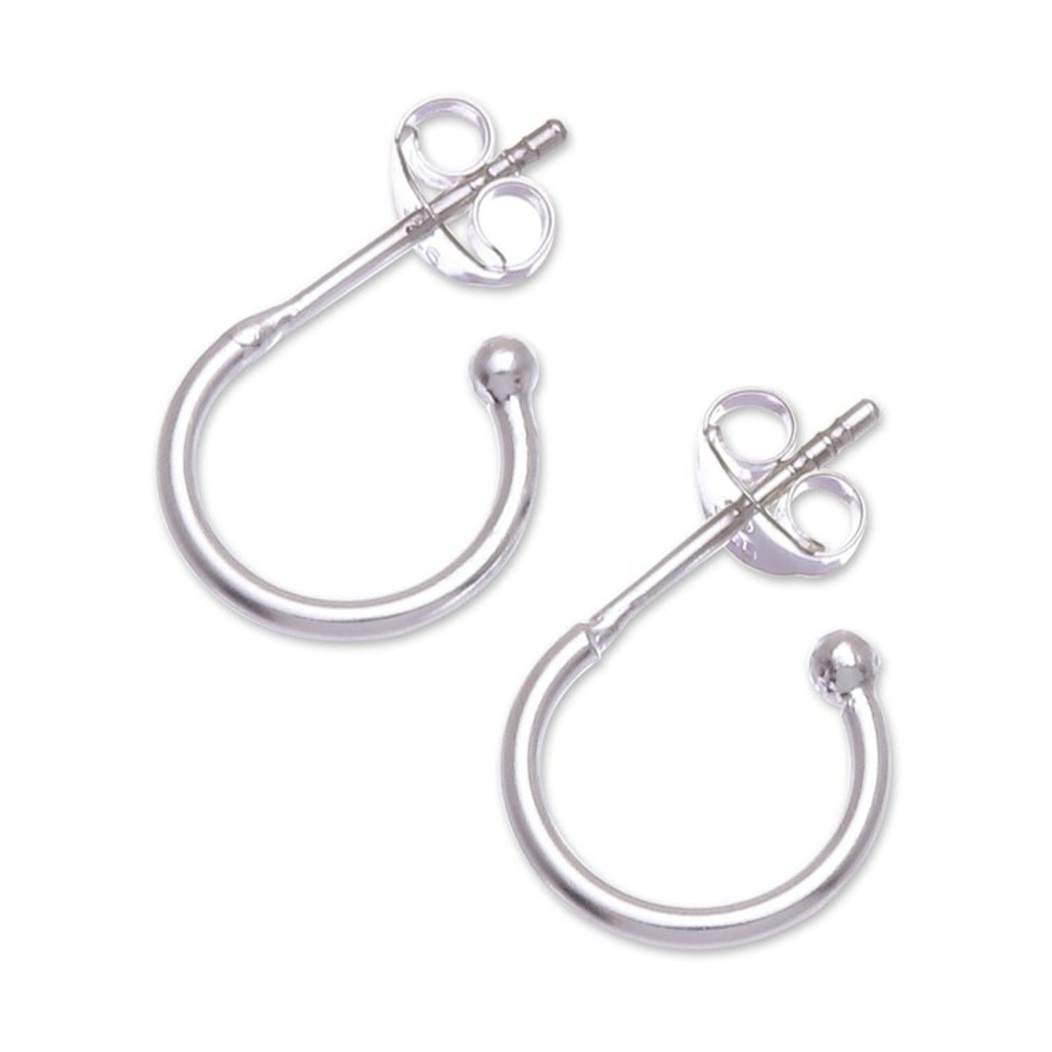 These Artisan Crafted Sterling Silver Half Hoop Earrings by Independent Artisans, titled 'Classic Crescent,' are a petite and elegant design from Thai artisan Lalana. The half hoops are crafted from sterling silver into a gentle crescent shape with a shining high-polish finish. A petite ball at the end adds a thoughtful touch. This piece reflects the artisan's dedication to her craft and her mission to provide sustainable livelihoods for her collaborators.