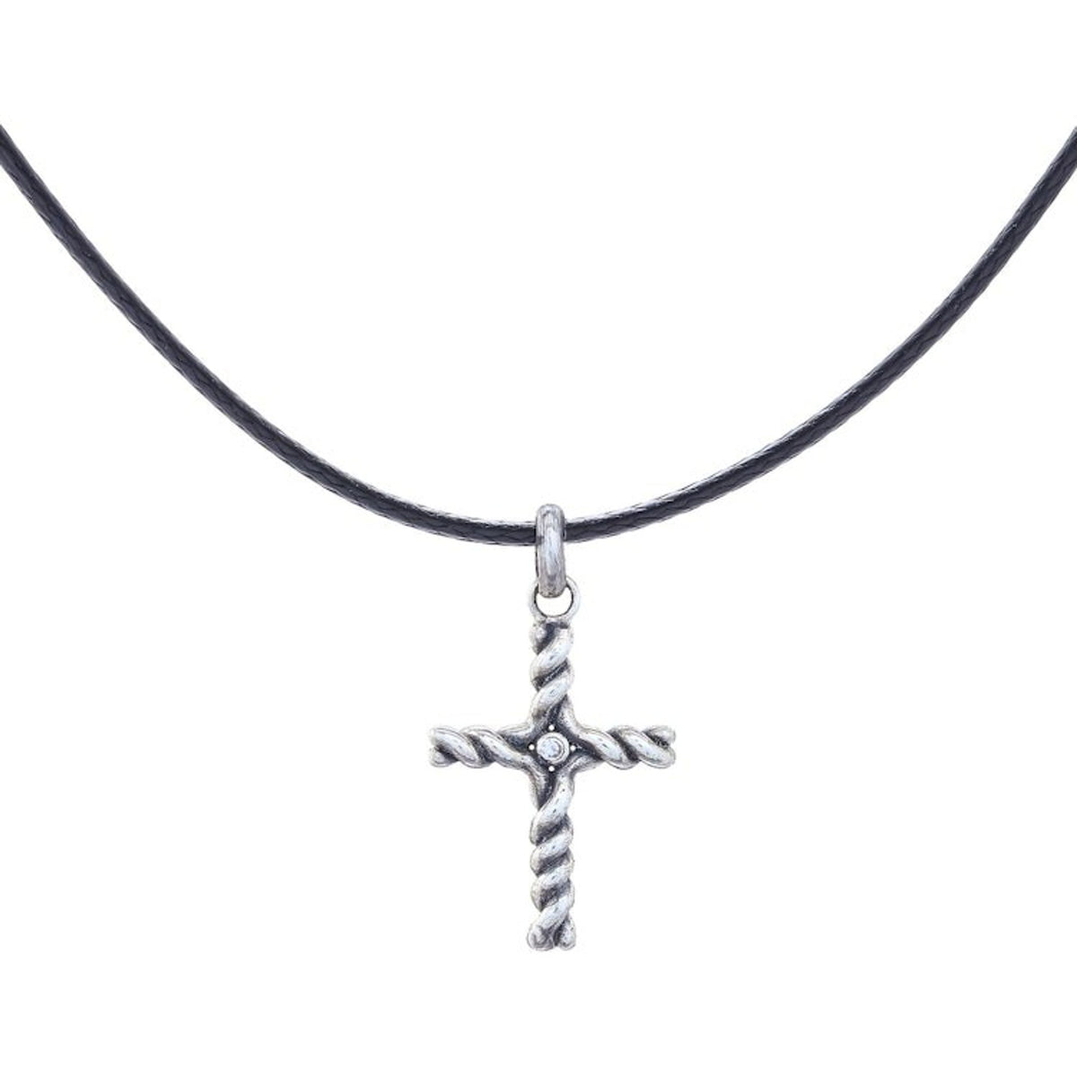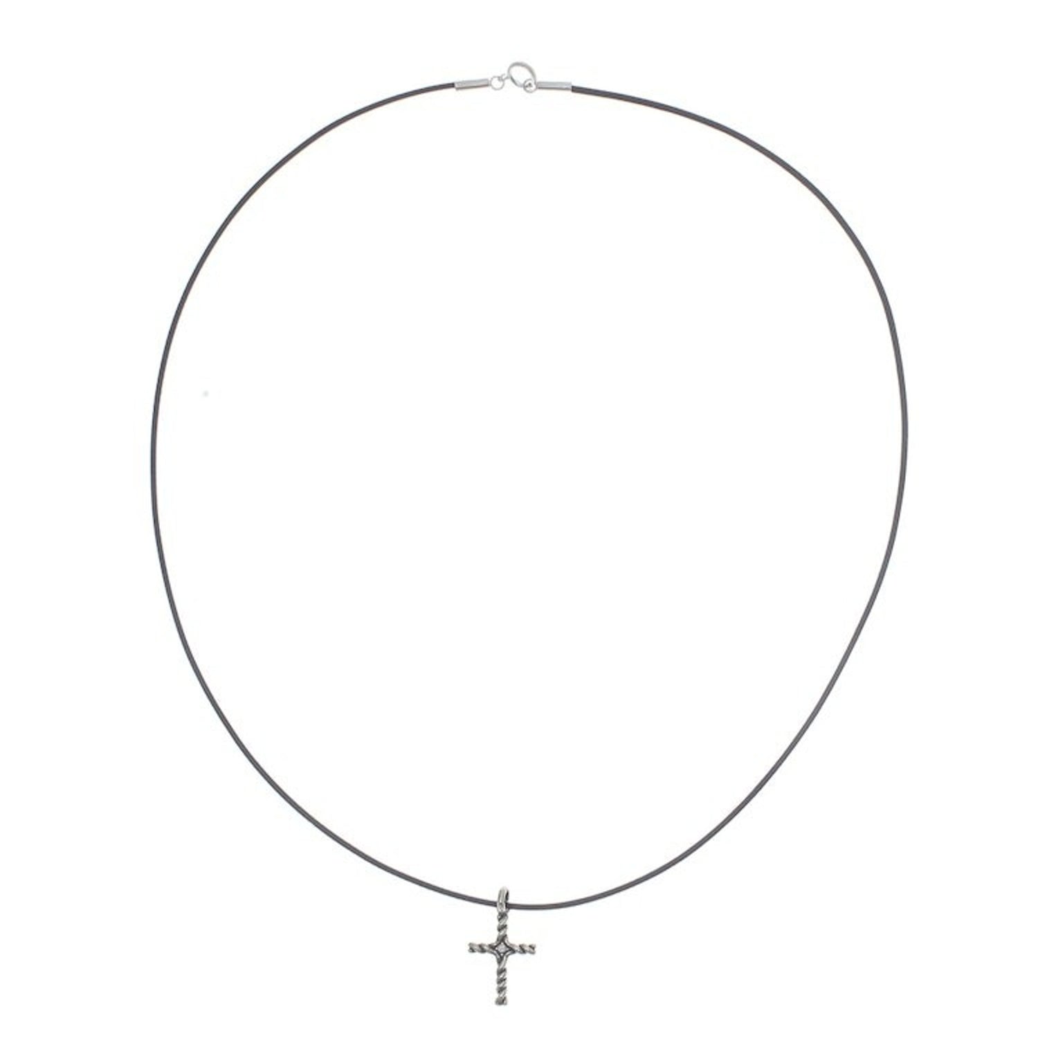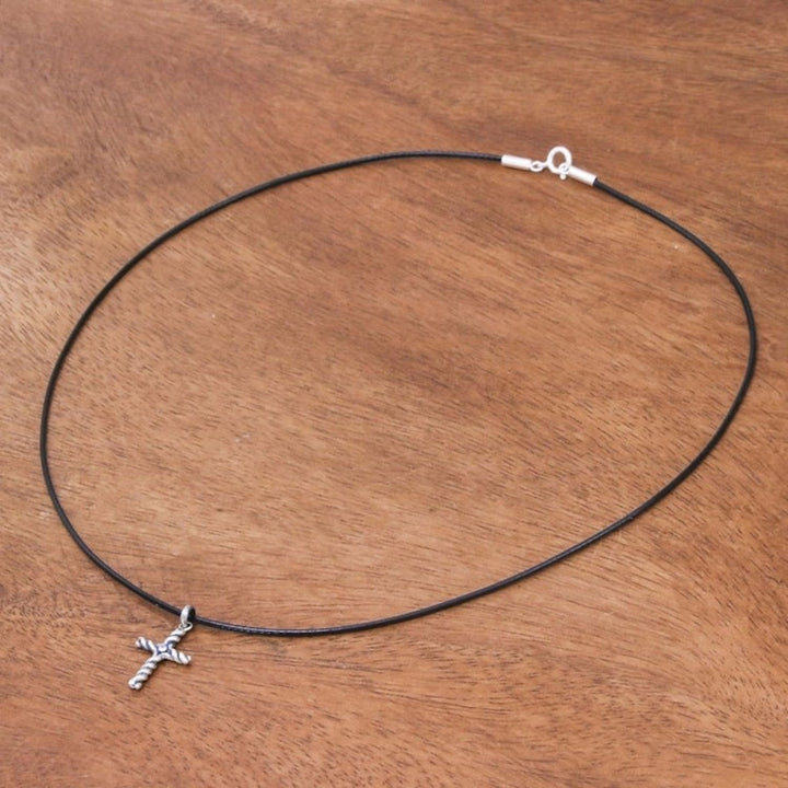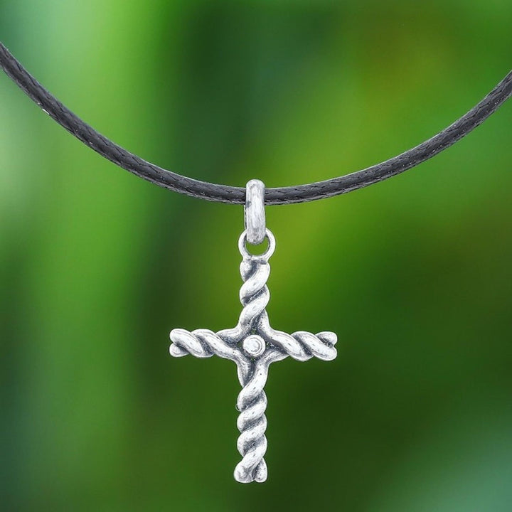 This Artisan Crafted Thai Sterling Silver Cross Necklace with CZ by Independent Artisans, titled 'Beacon Cross,' is a beautiful and faithful design from Thai designer Sarote Lochotinunt. The pendant is a sterling silver cross with dark, oxidized accents and a single sparkling cubic zirconia gem in the center, like a beacon of faith. The pendant is worn on a black cord. This piece reflects the artisan's dedication to his craft and his wish to bring joy to those who wear his jewelry.