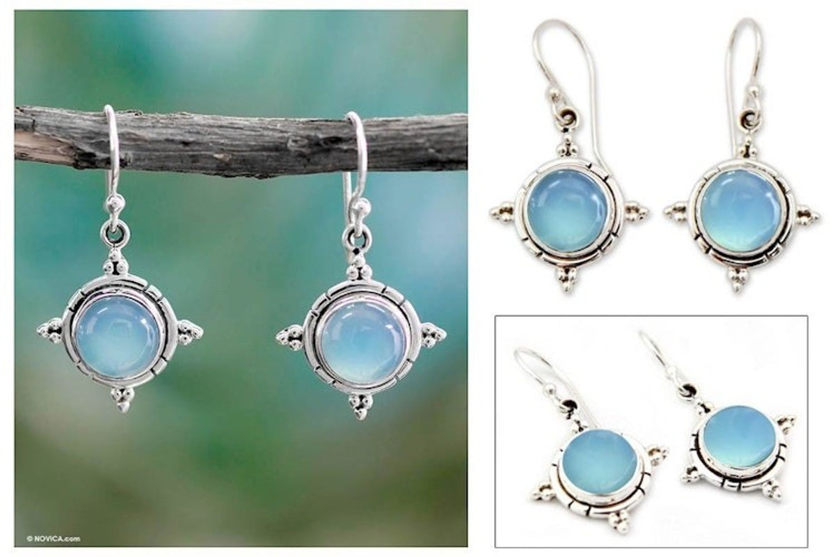Artisan Jewelry Sterling Silver and Chalcedony Earrings 'Endless Sky'