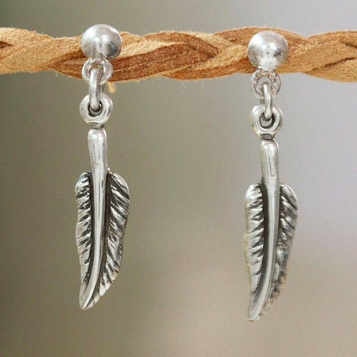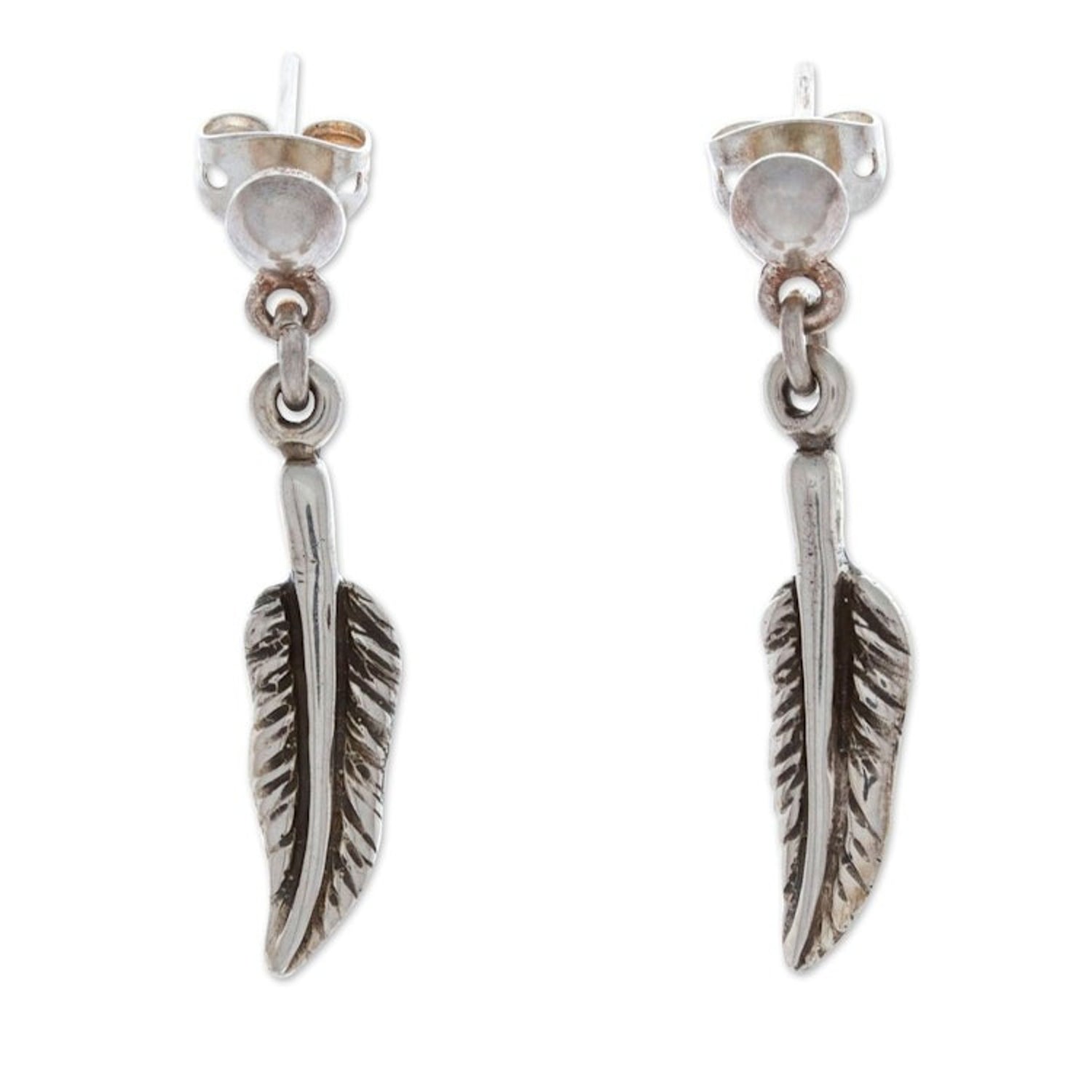 Artisan-Made Feather-Shaped Sterling Silver Dangle Earrings 'Feather Dance'