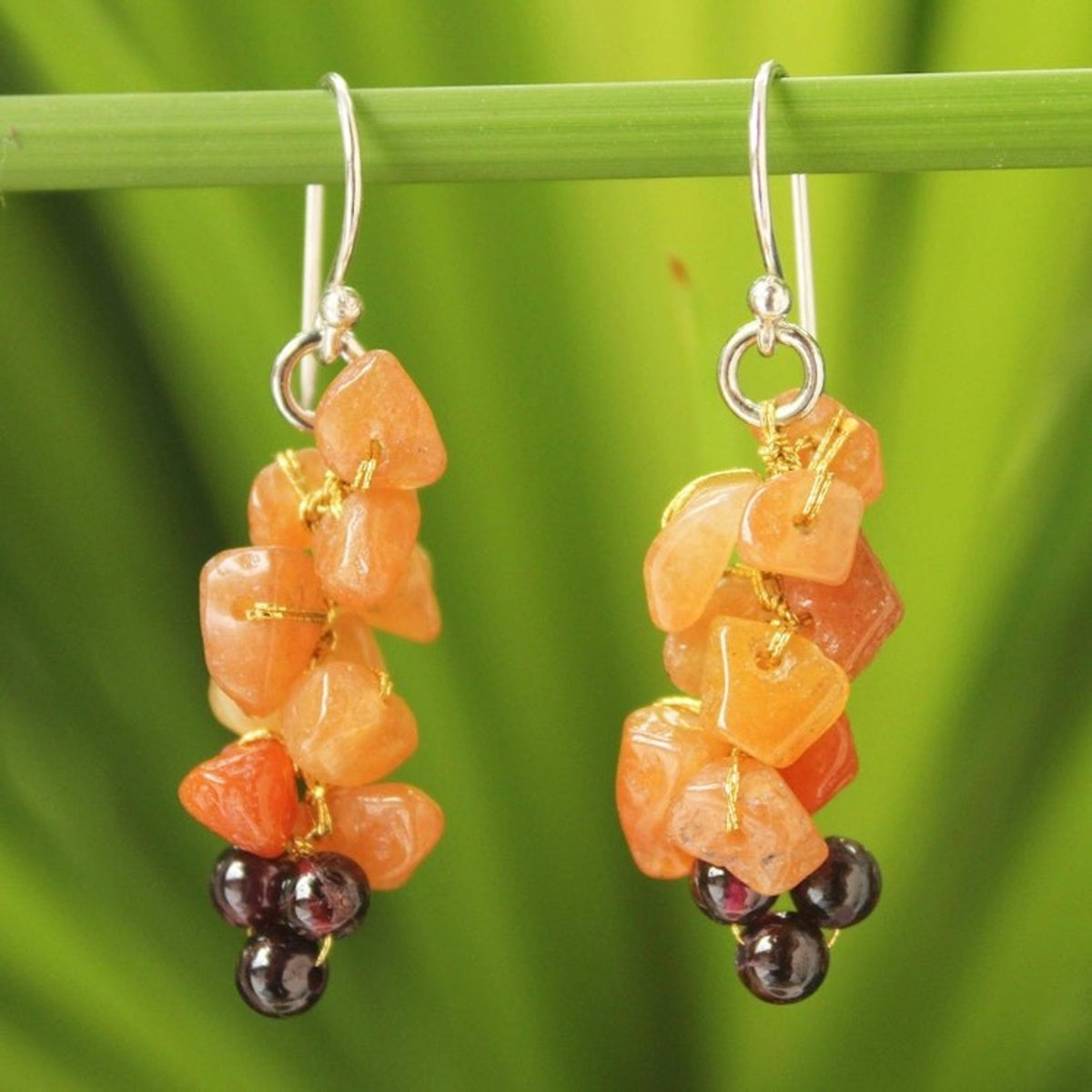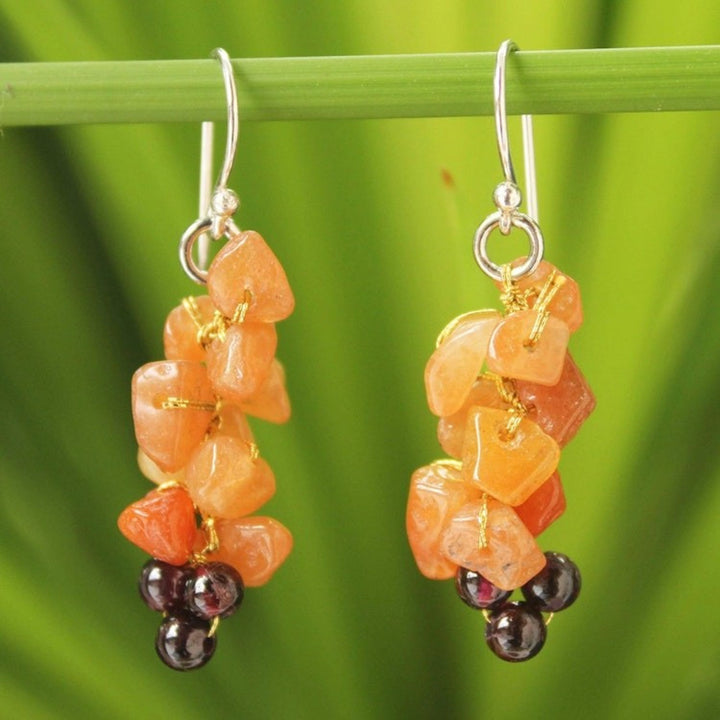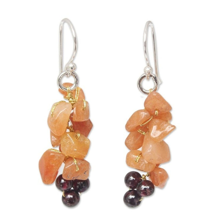 Aventurine and garnet cluster earrings 'Afternoon Passion'