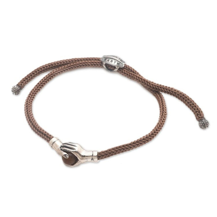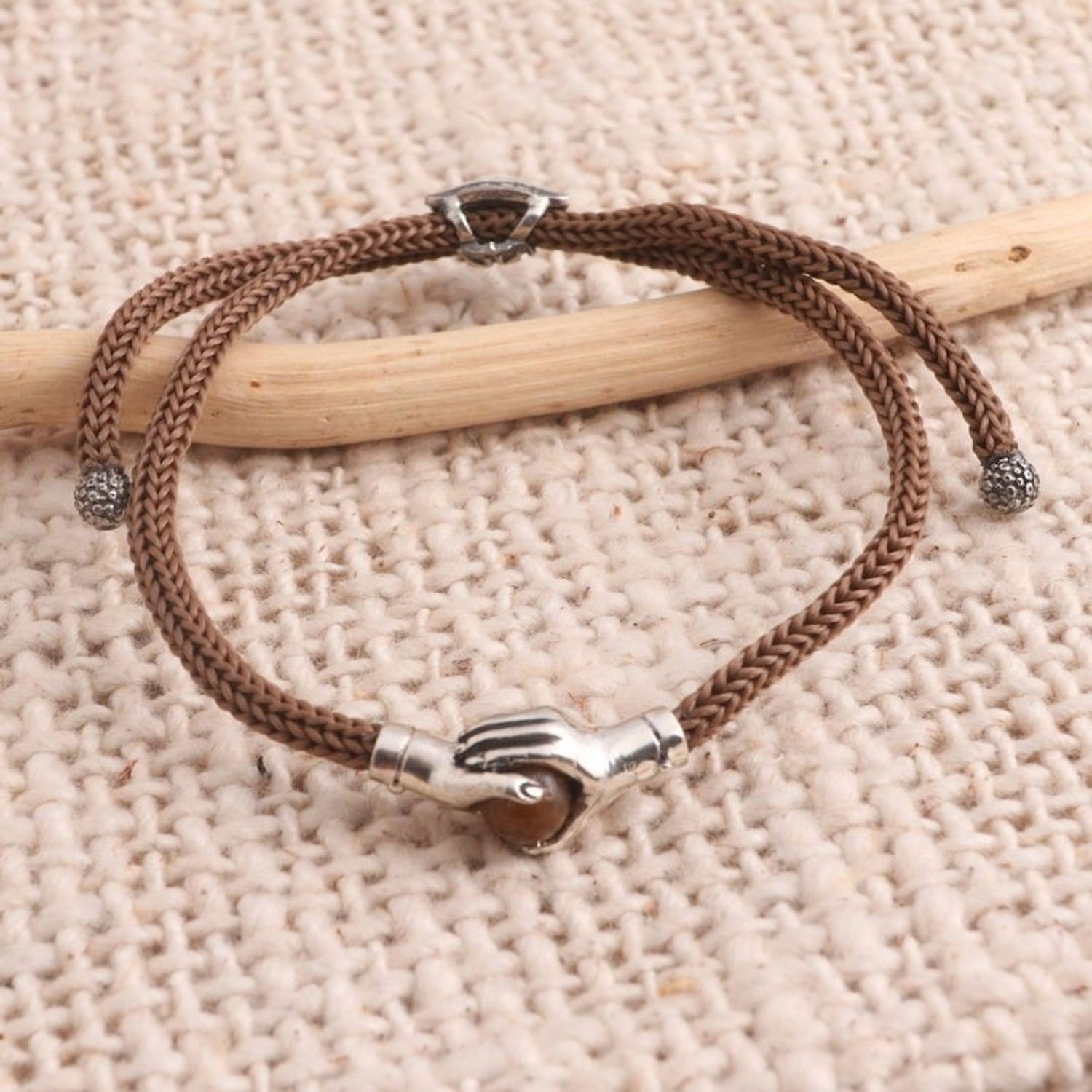 Bali Tiger's Eye and Sterling Silver Cord Unity Bracelet 'Silver Handshake'