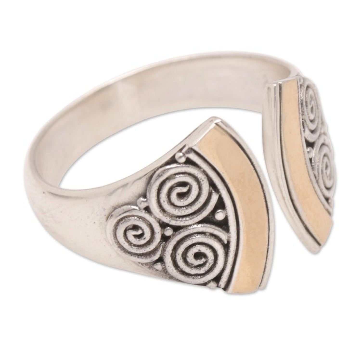 Balinese 18k Gold-Accented Sterling Silver Wrap Ring 'Split Ax'