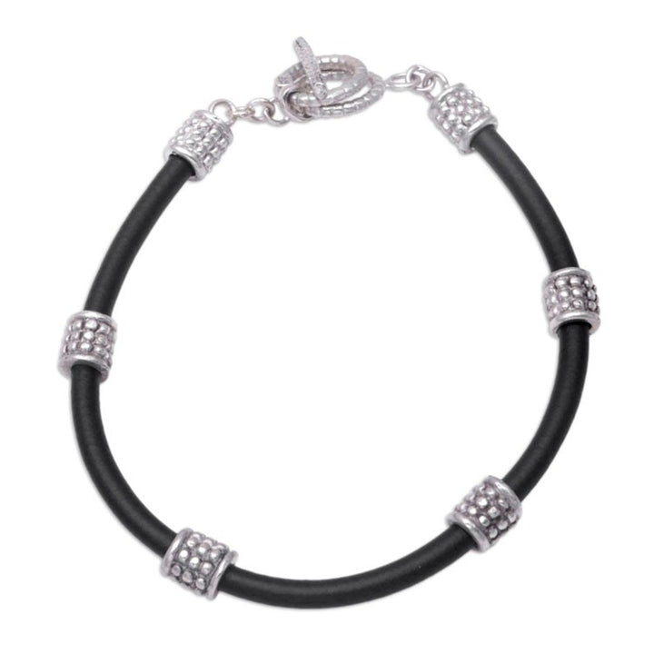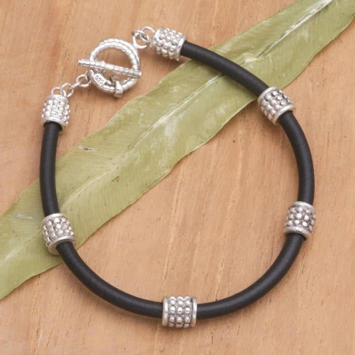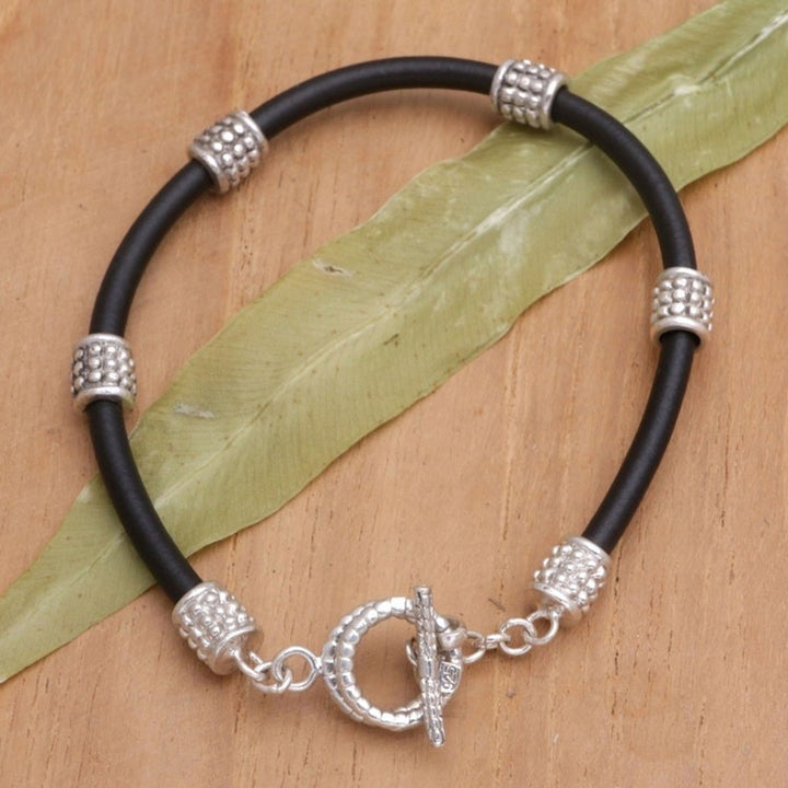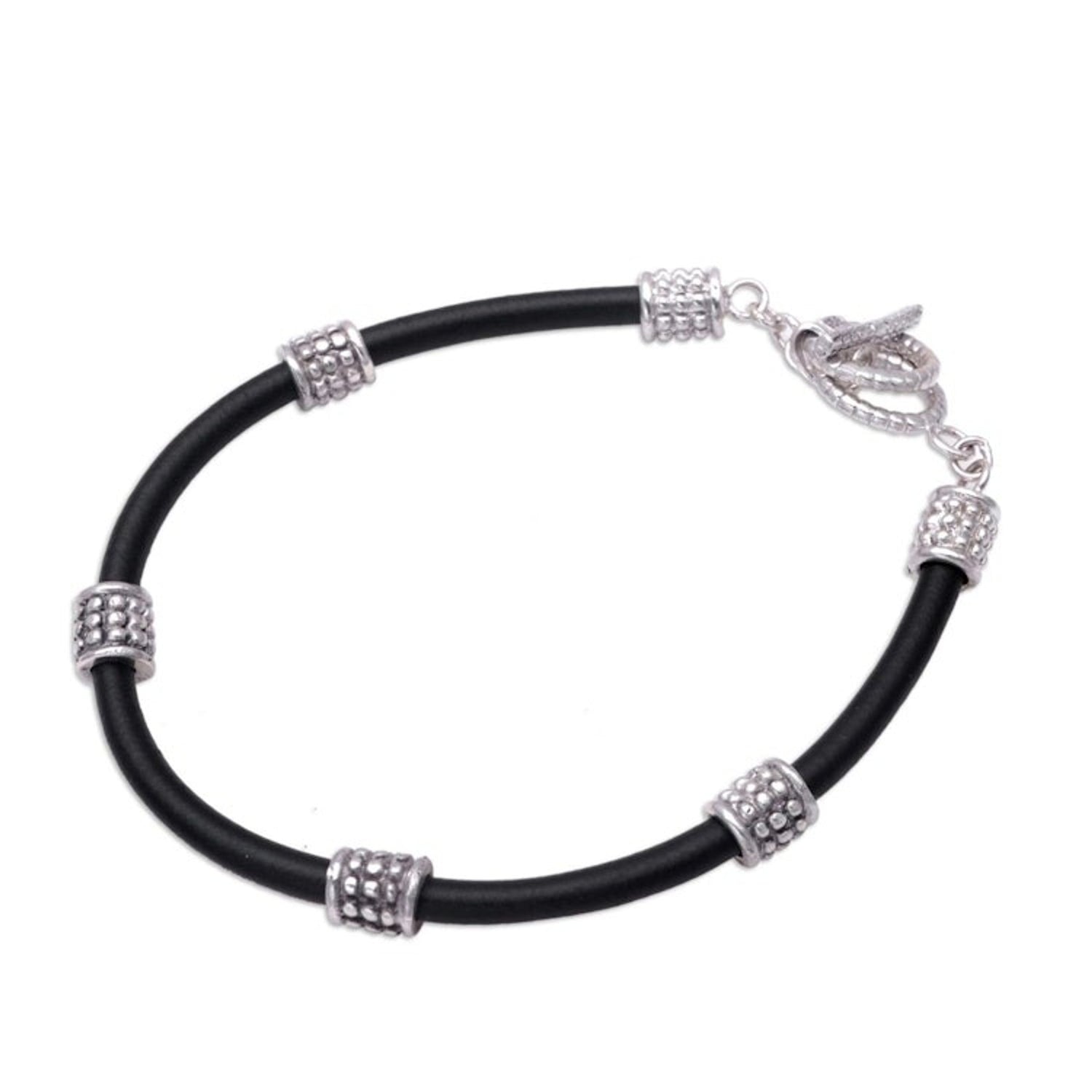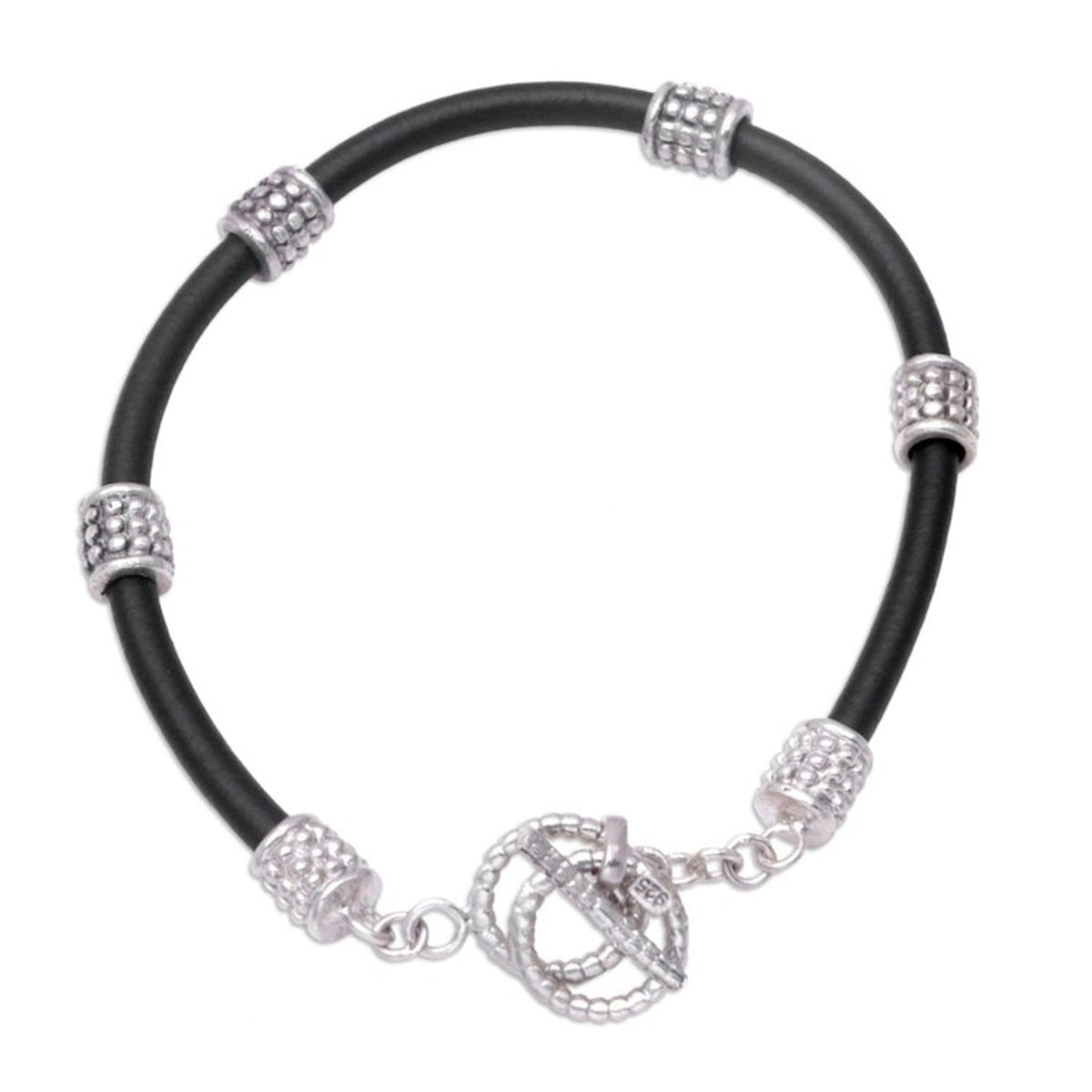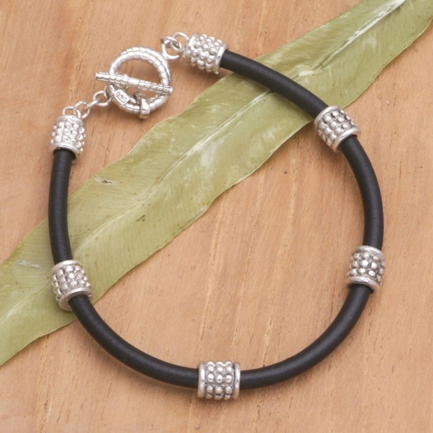 Balinese Black Cord Bracelet with Sterling Silver Beads 'Charming Elegance'
