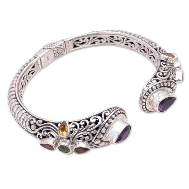 Balinese Multi-Gemstone Sterling Silver Cuff Bracelet 'Shining Woman'