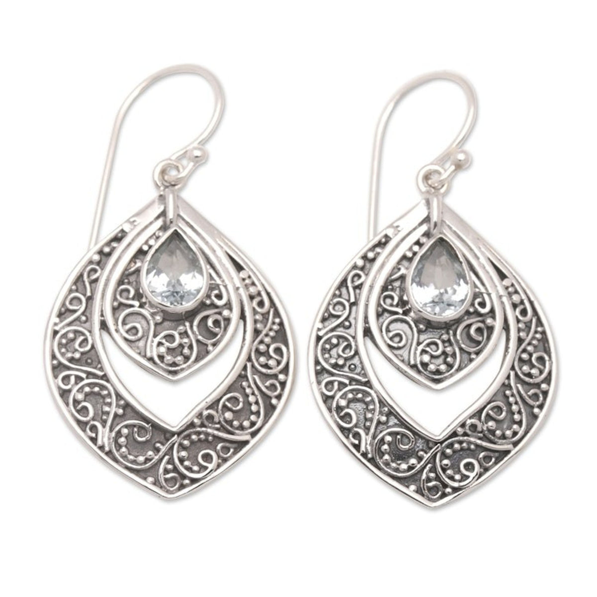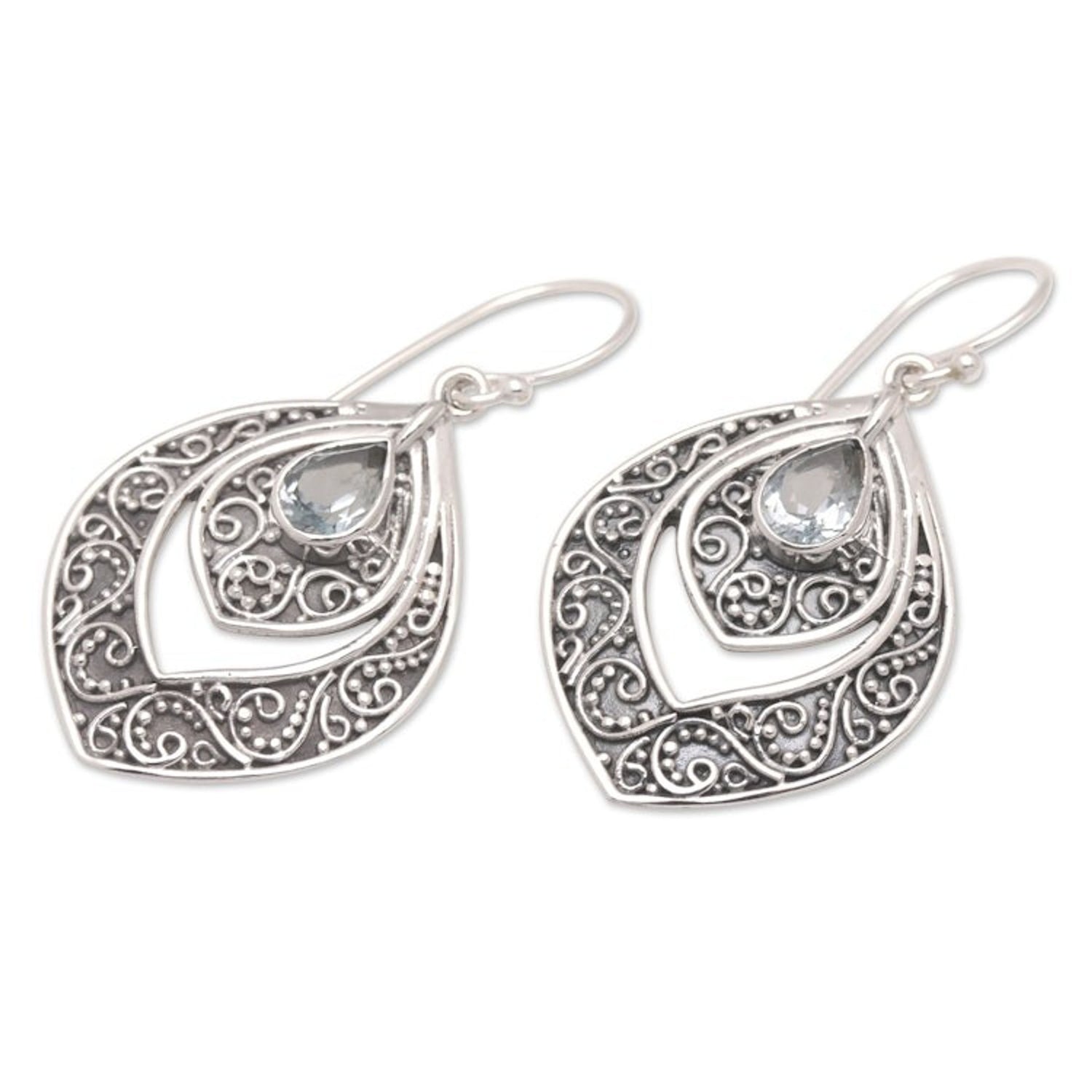 Balinese Silver and Blue Topaz Fashion Dangle Earrings 'Party Queen'