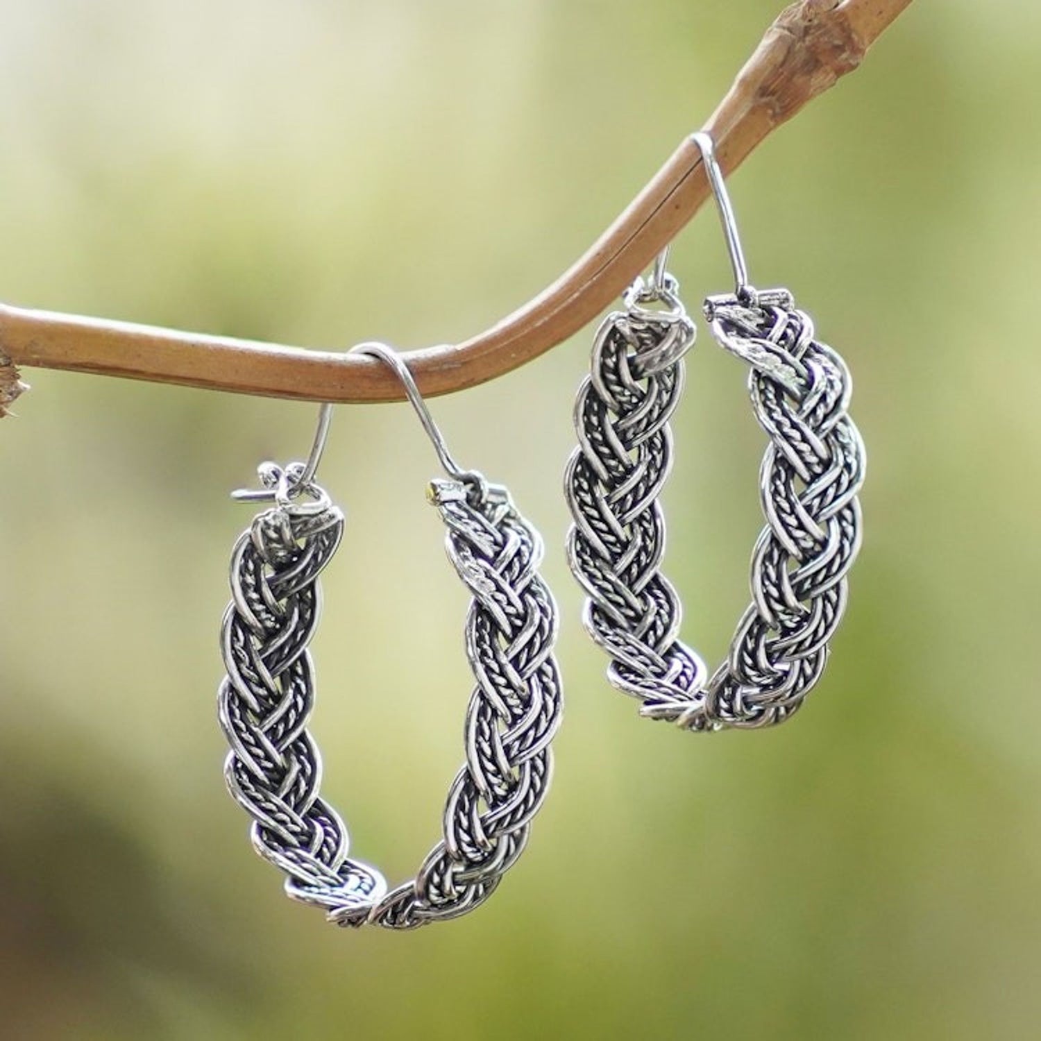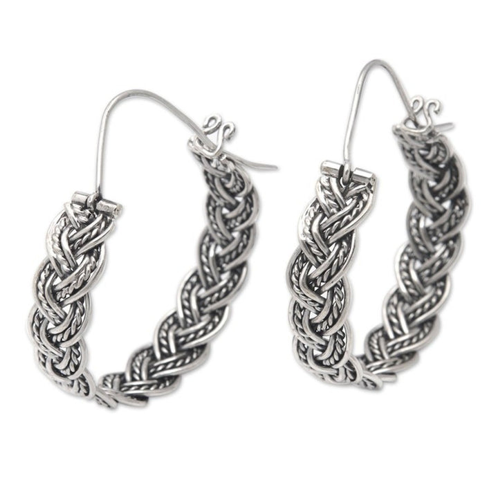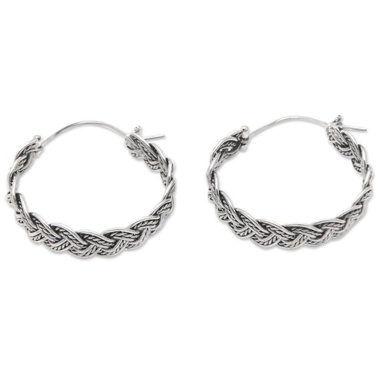 Balinese Sterling Silver Hoop Earrings with Braided Style 'Braided Flair'