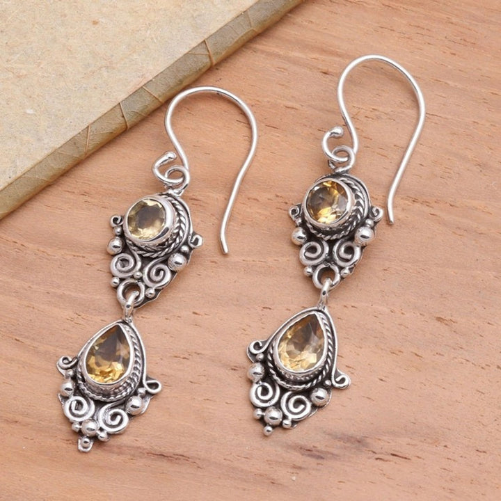 Balinese Style Citrine and Silver Dangle Earrings 'Traditional Ways'