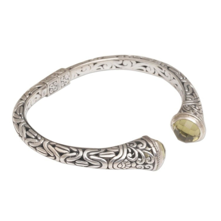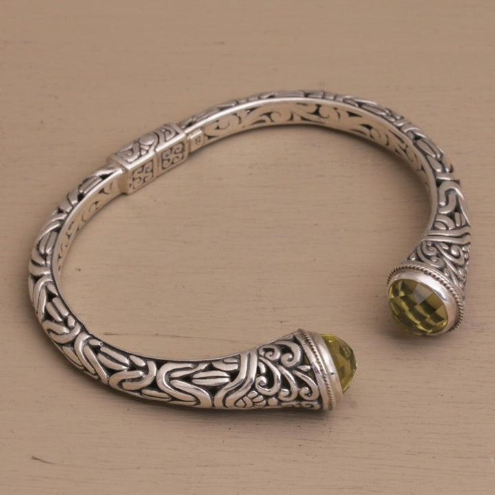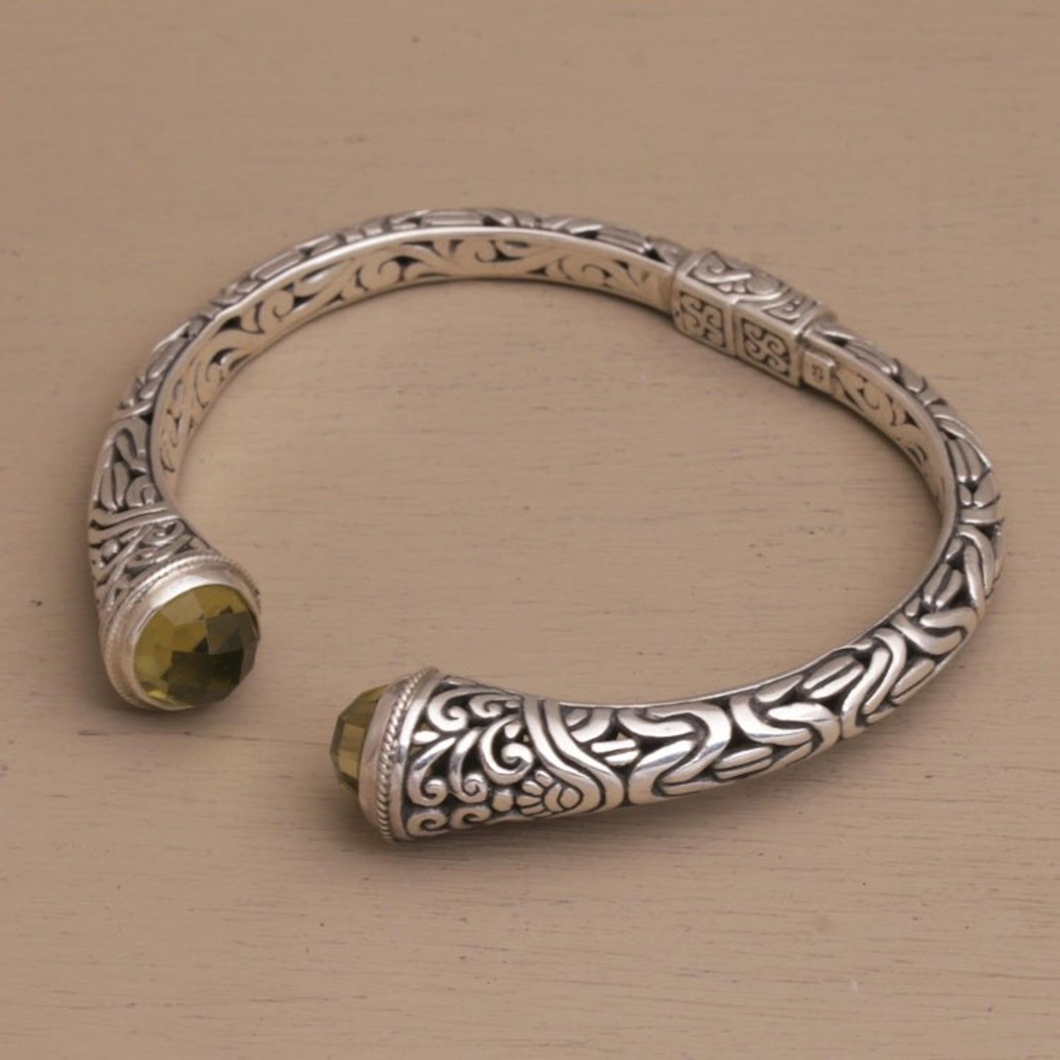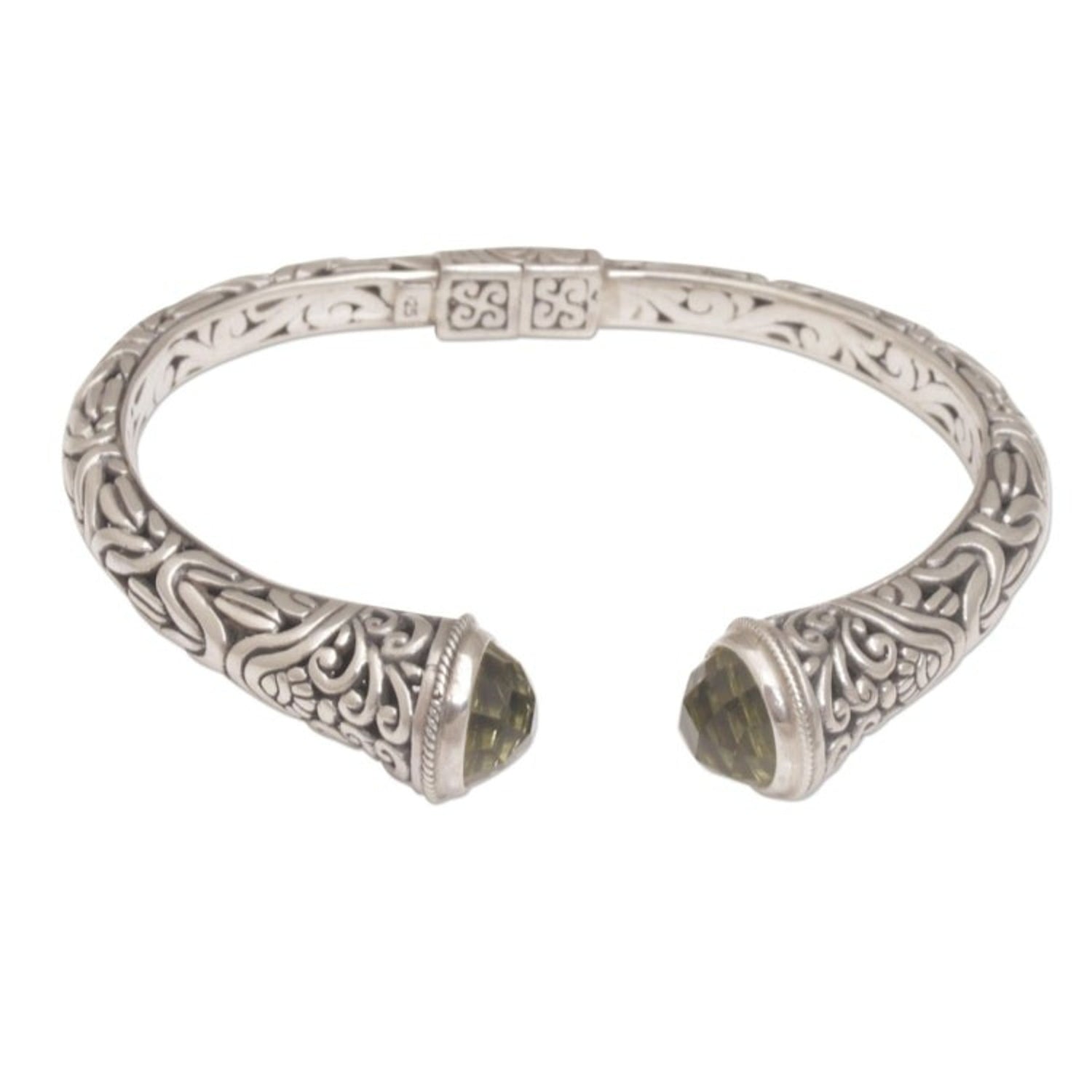 Balinese Style Hinged 925 Silver Prasiolite Cuff Bracelet 'Our Two Souls'