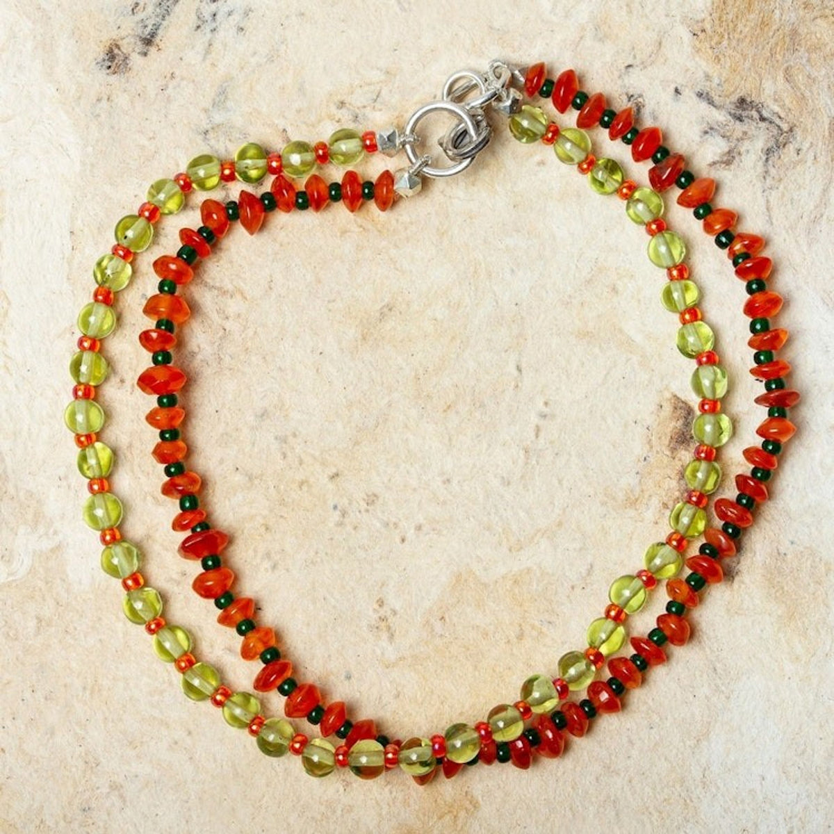 Beaded Bracelet with Peridot and Carnelian 'Bold Colors'