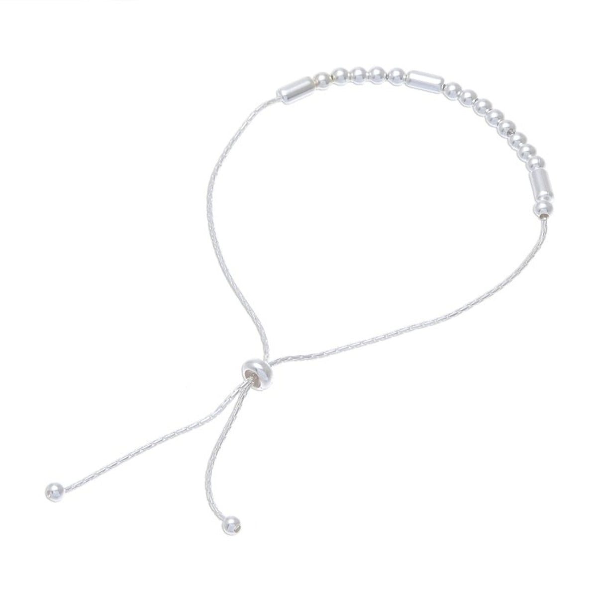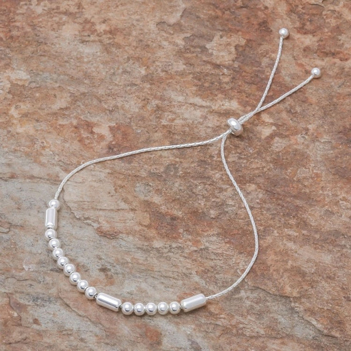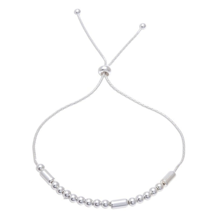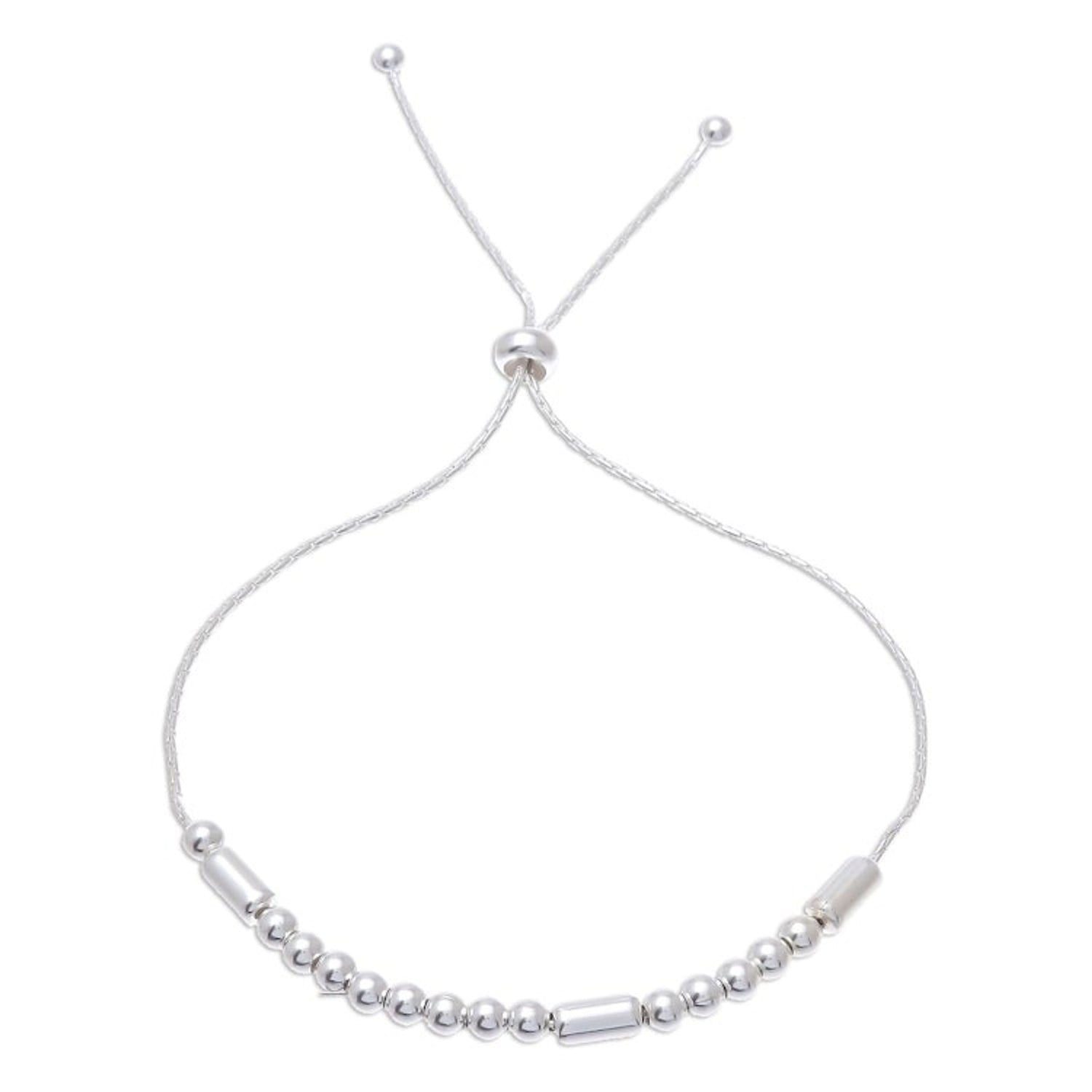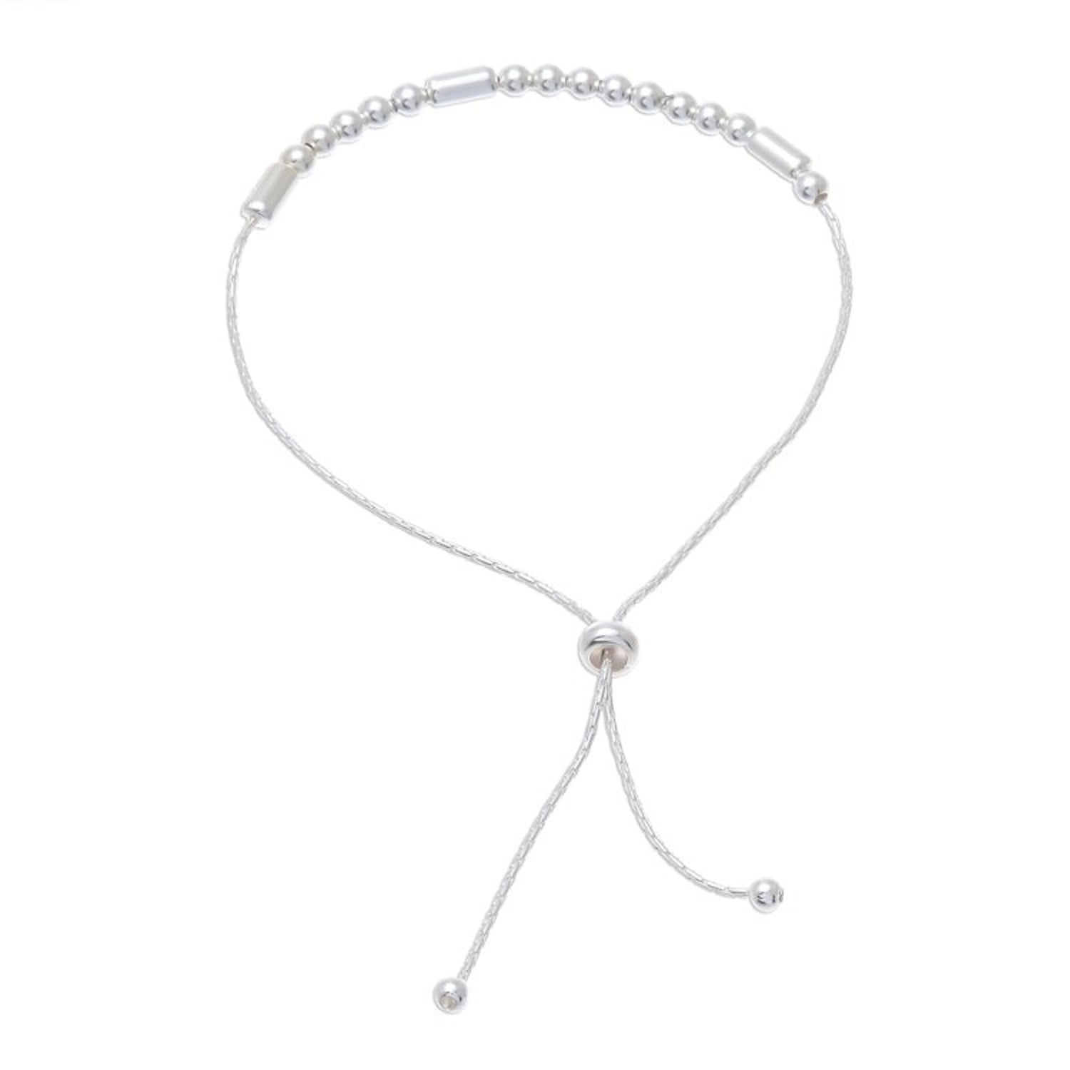 This 'Message of Belief' by Independent Artisans is a beautiful sterling silver bracelet that carries a secret message. Designed by Pichaya, the sterling chain circles the wrist, centered by round and tubular sterling silver beads that spell the word 'Believe' in Morse code. A sliding bead gives it an adjustable length, making it a lightweight and versatile piece.