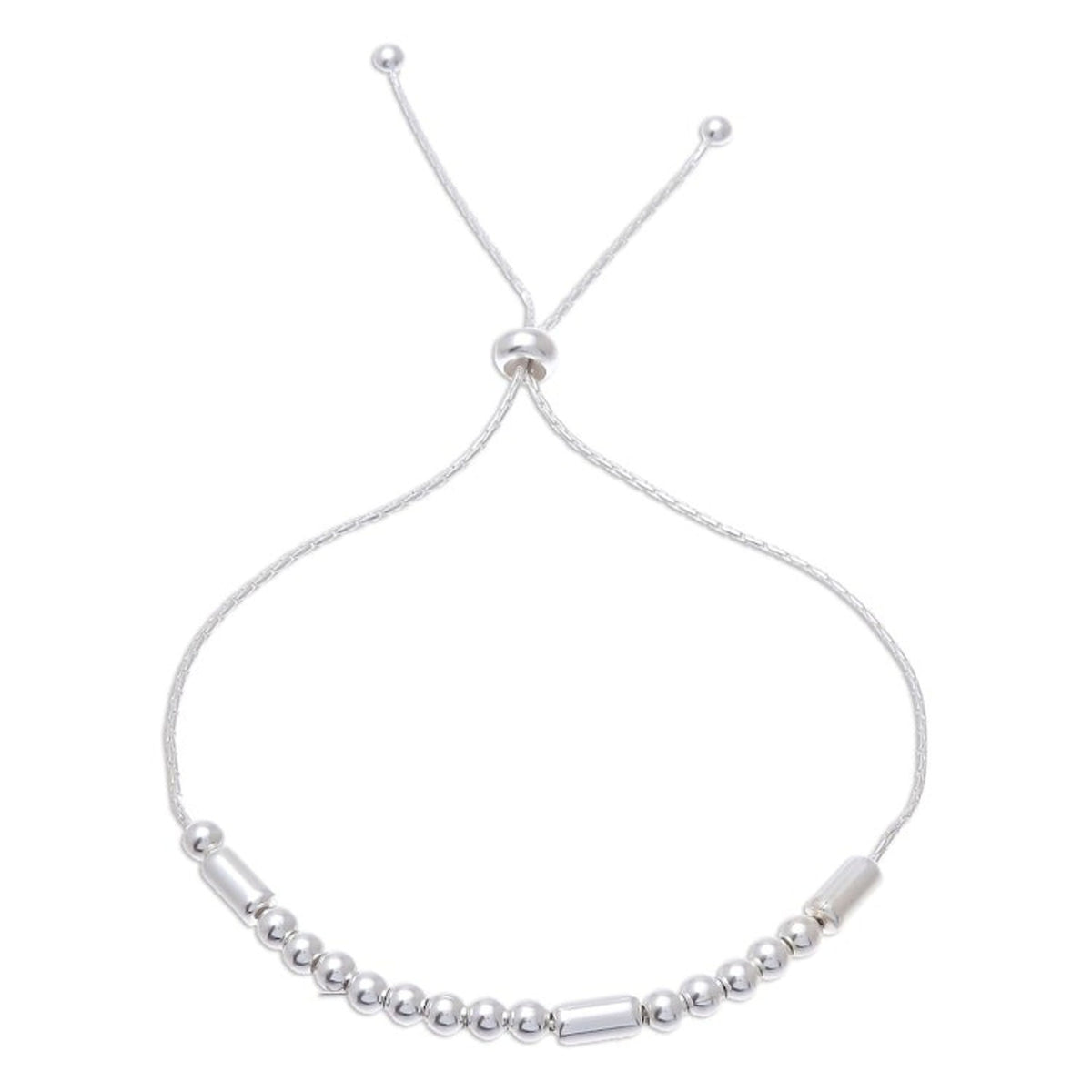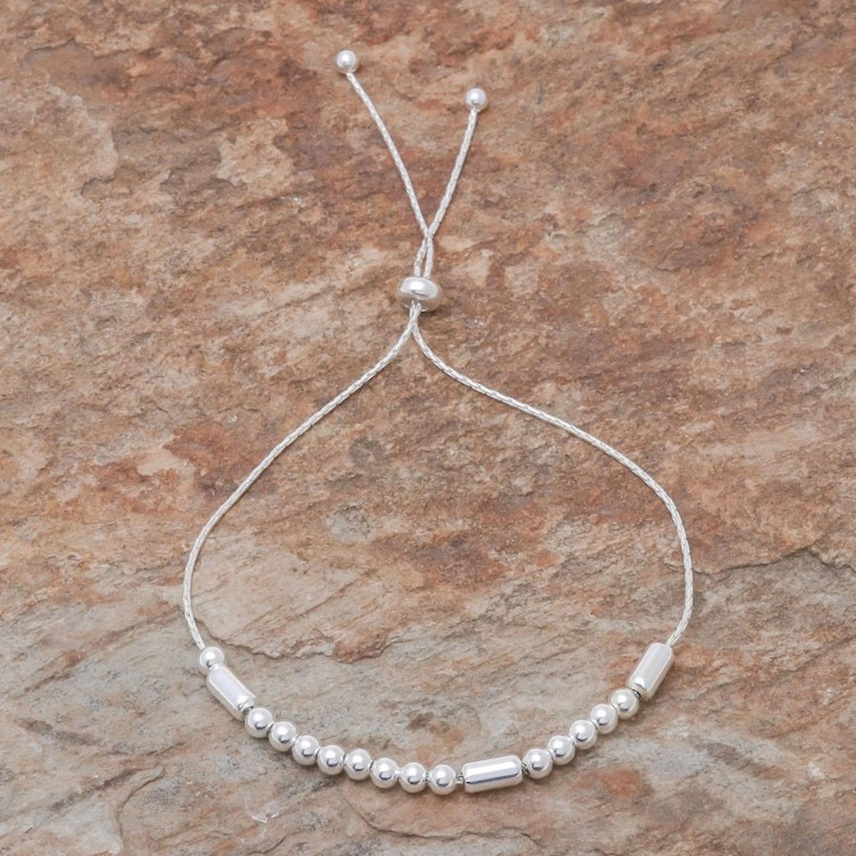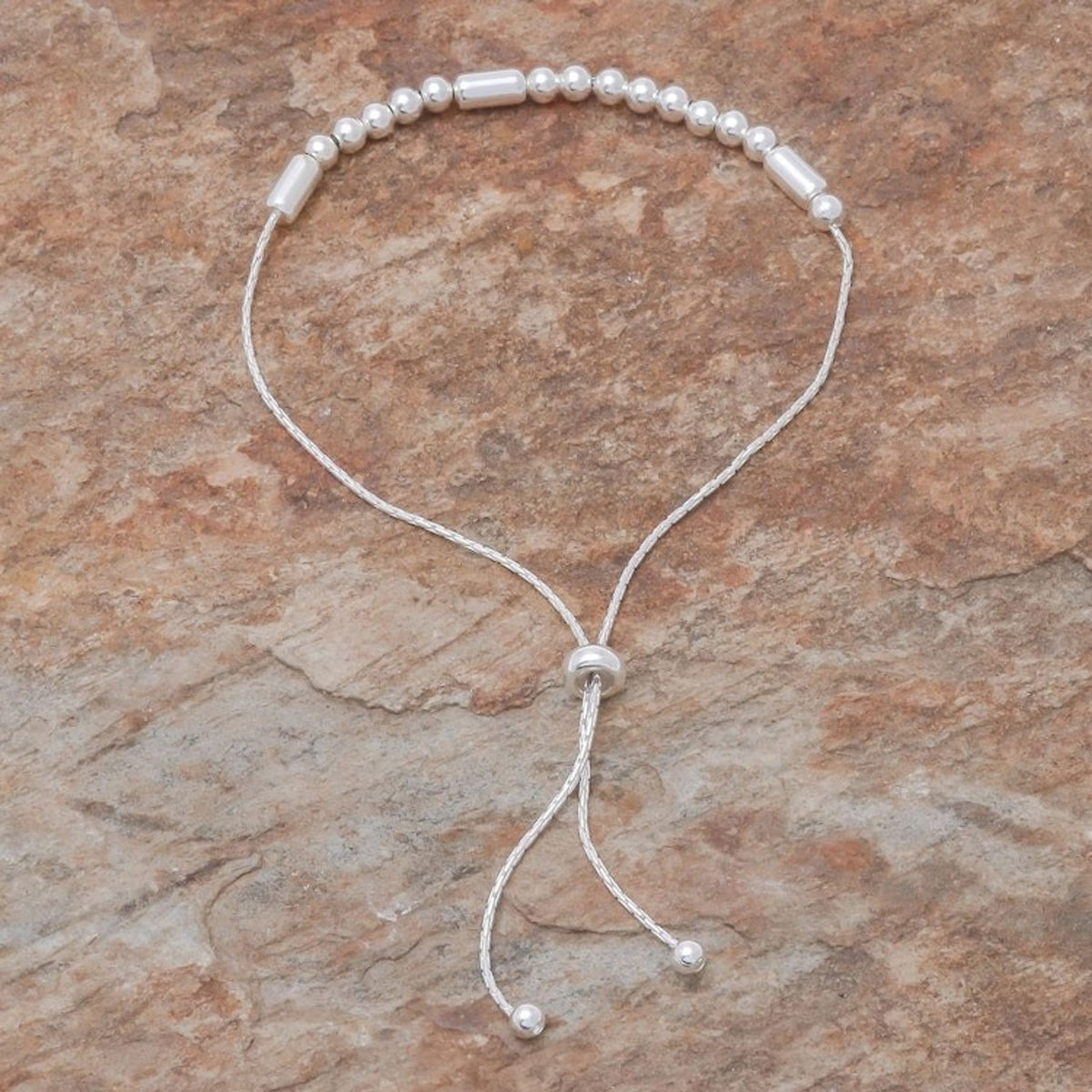 This 'Message of Belief' by Independent Artisans is a beautiful sterling silver bracelet that carries a secret message. Designed by Pichaya, the sterling chain circles the wrist, centered by round and tubular sterling silver beads that spell the word 'Believe' in Morse code. A sliding bead gives it an adjustable length, making it a lightweight and versatile piece.