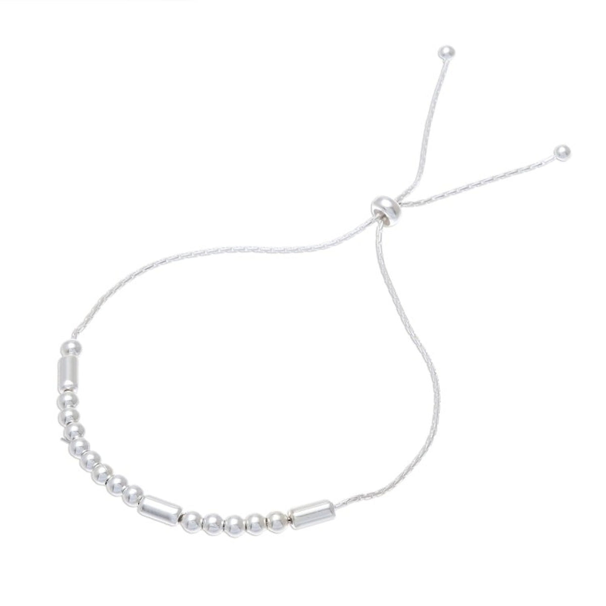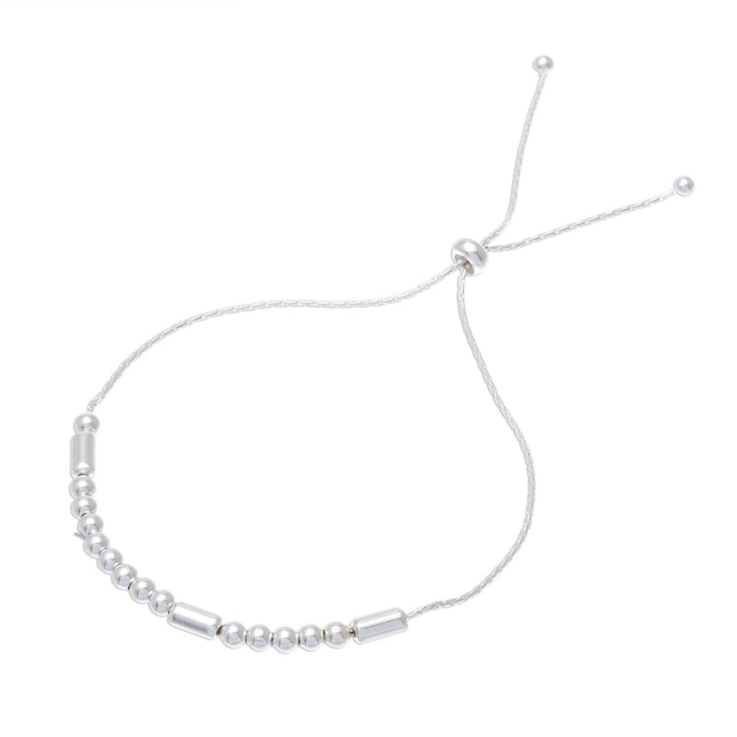 This bracelet is crafted from 925 sterling silver with a high-polish finish. It features a Boston link chain with a slide lock clasp and measures between 7.3 and 9.8 inches long. The pendant measures 0.1 inches L x 2.6 inches W.