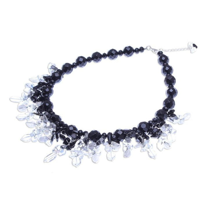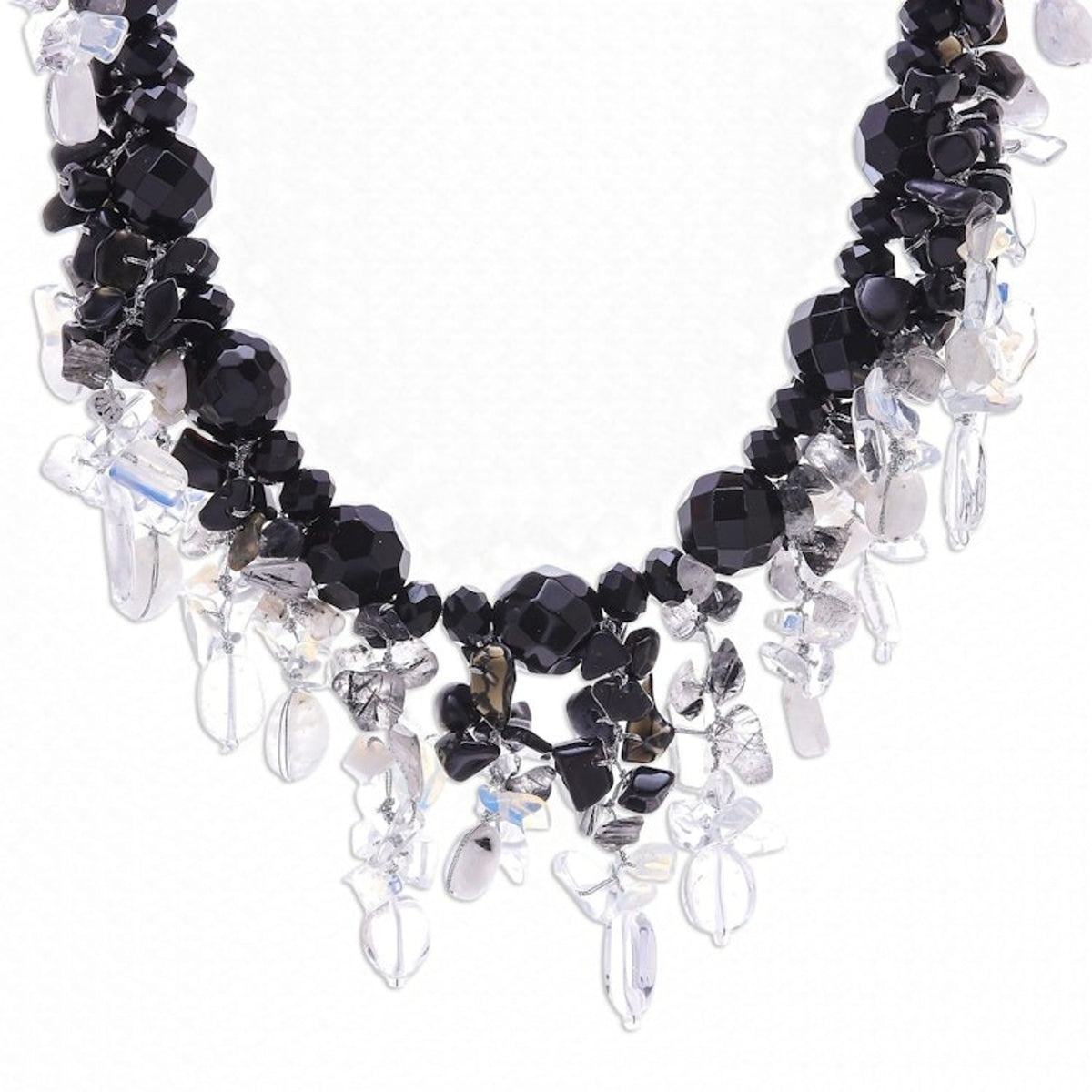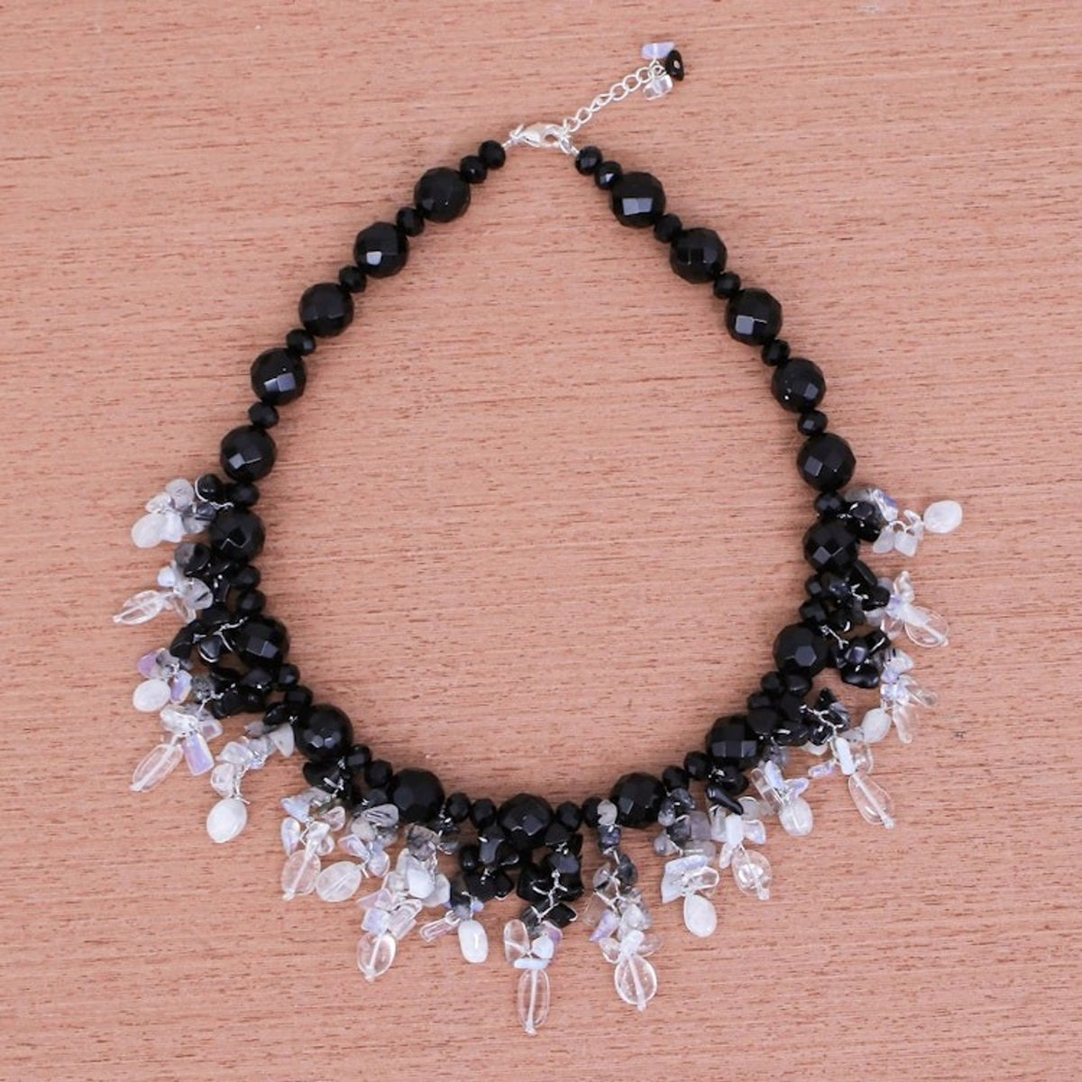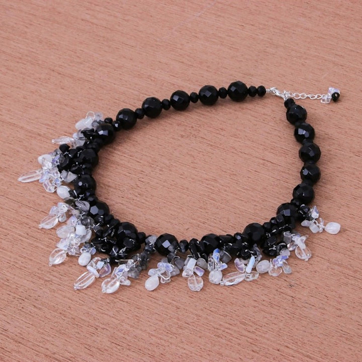 Black and White Multigemstone Beaded Necklace 'Sparkling Night'