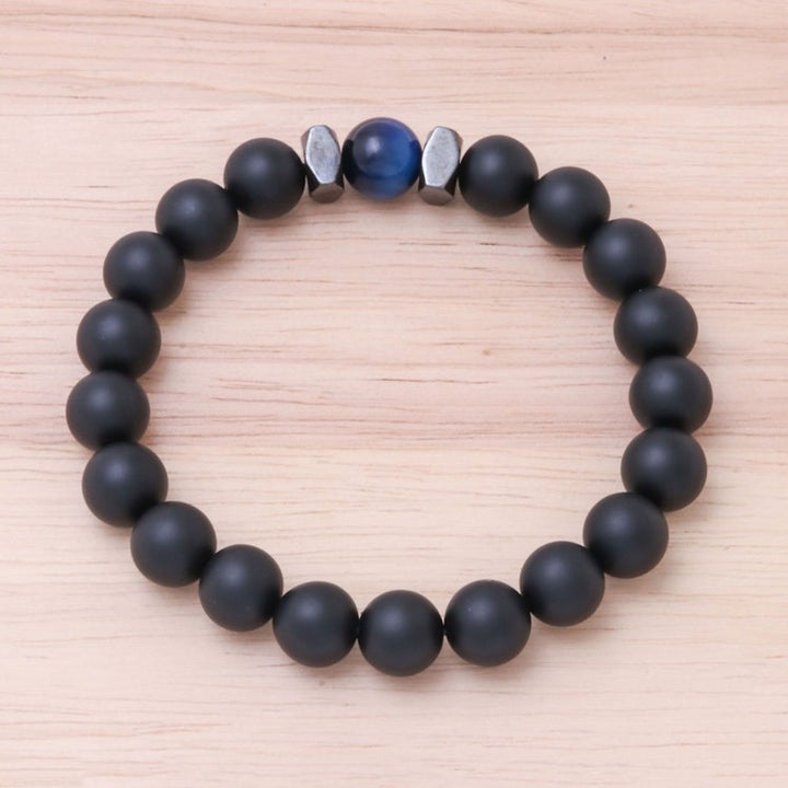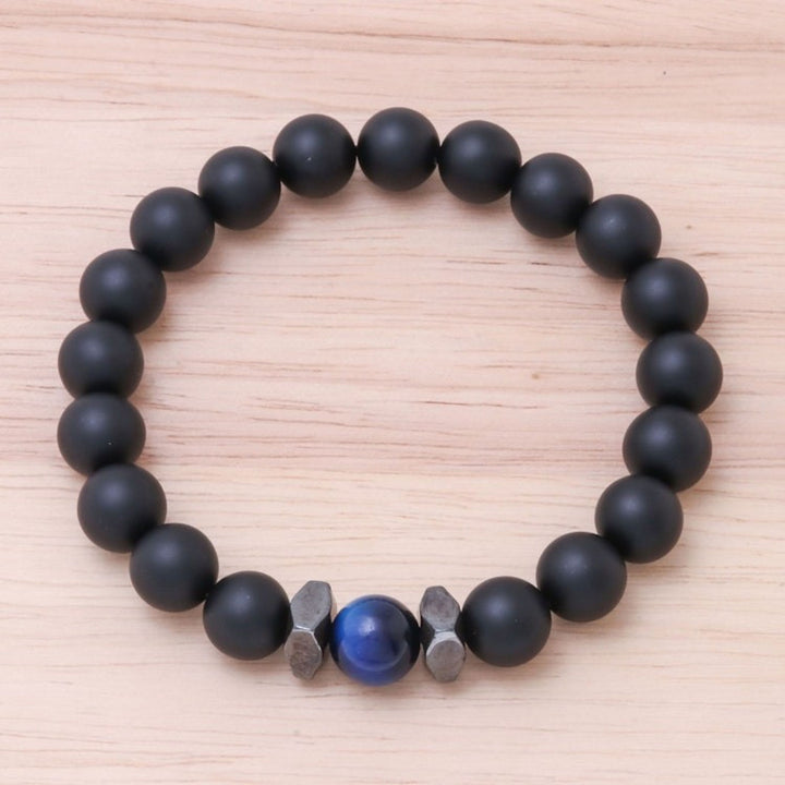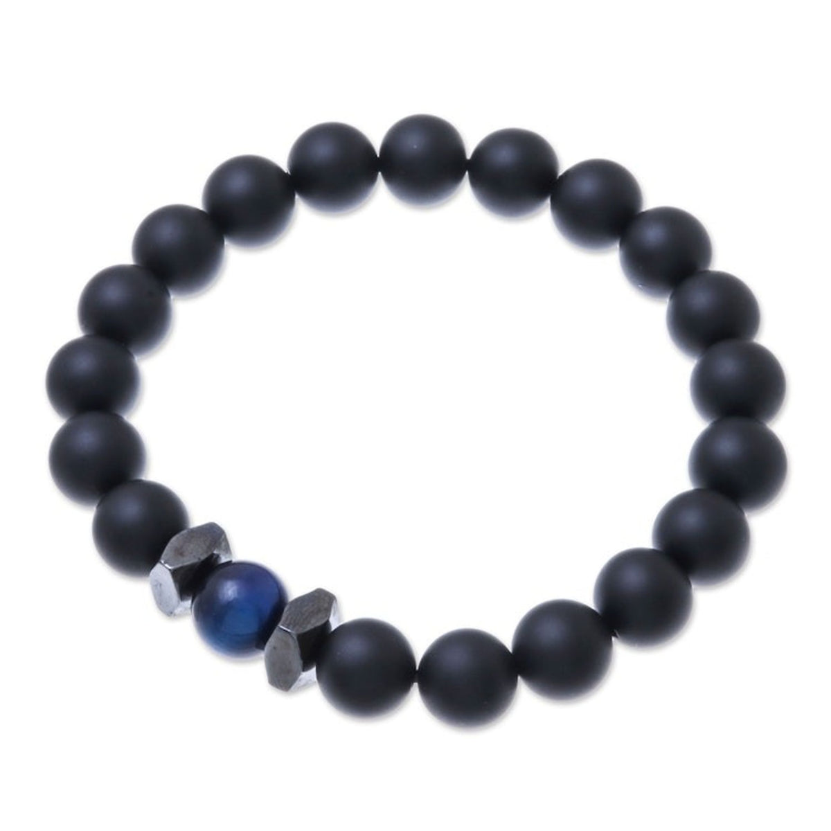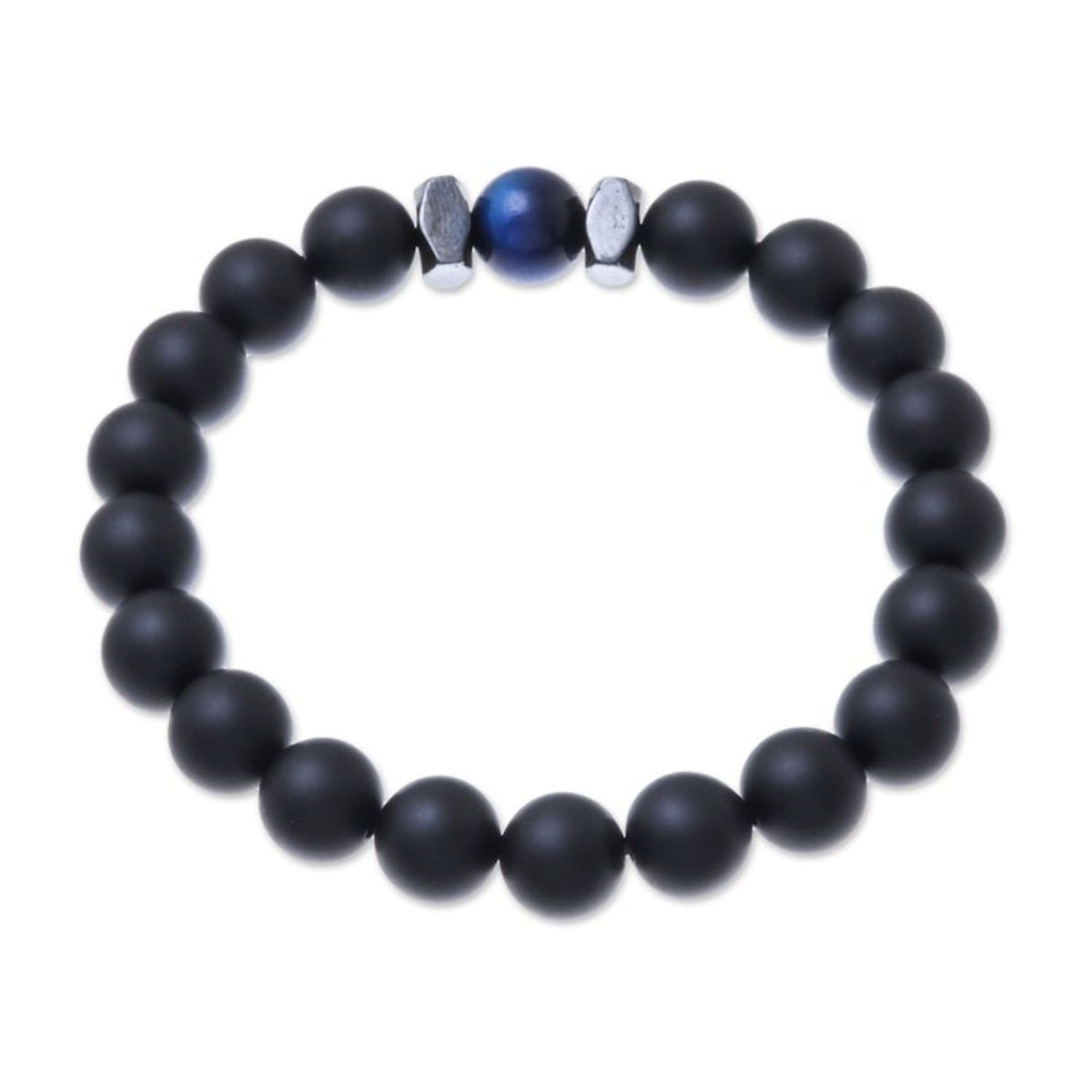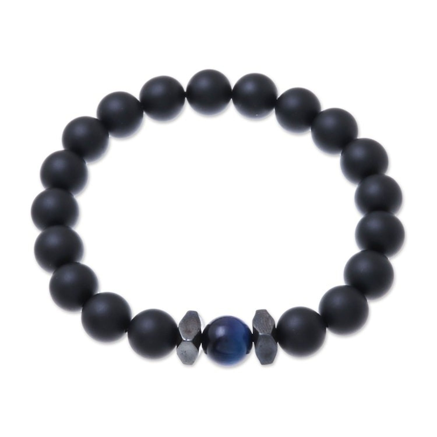 Black Onyx and Blue Tiger's Eye Beaded Stretch Bracelet 'Black Sky'