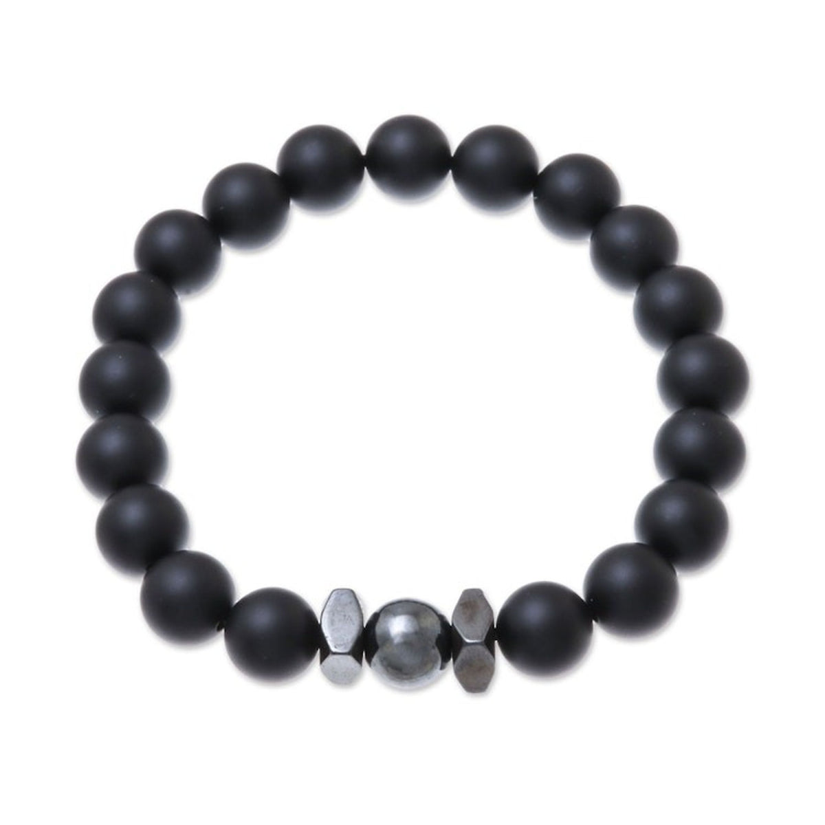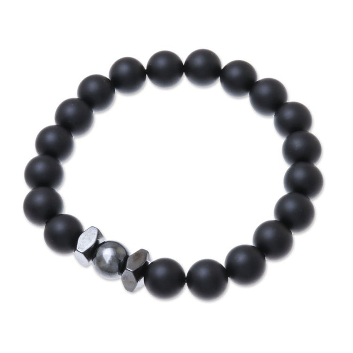 Black Onyx Beaded Stretch Bracelet from Thailand 'Black Sky'
