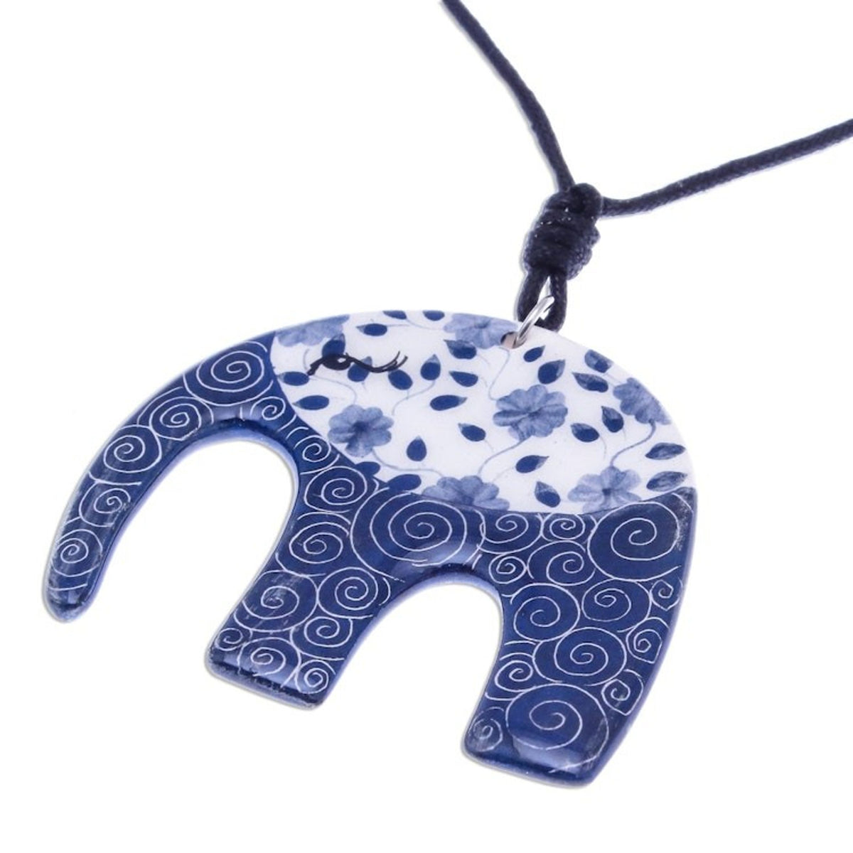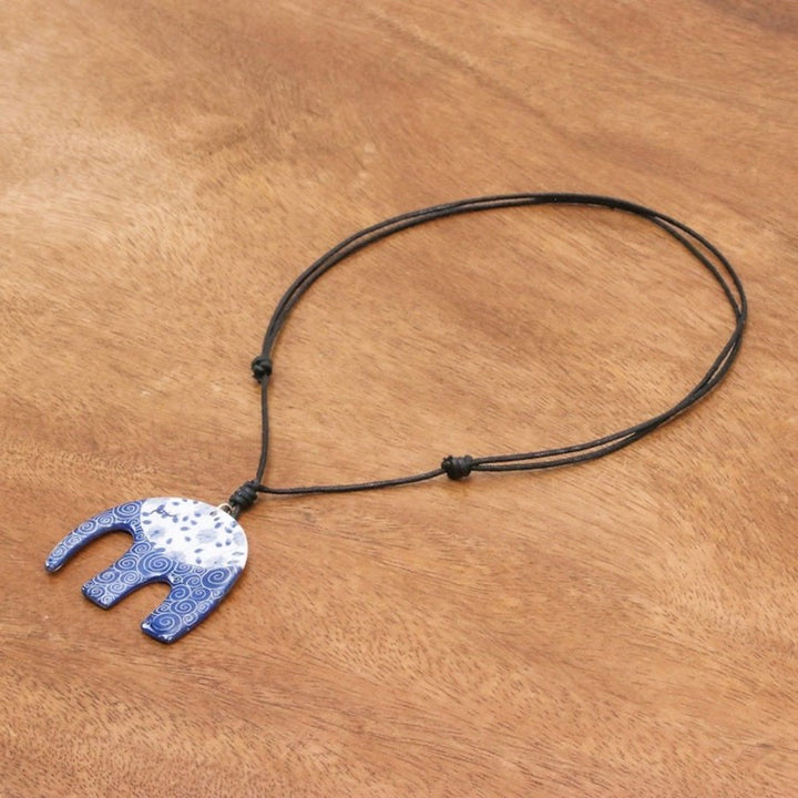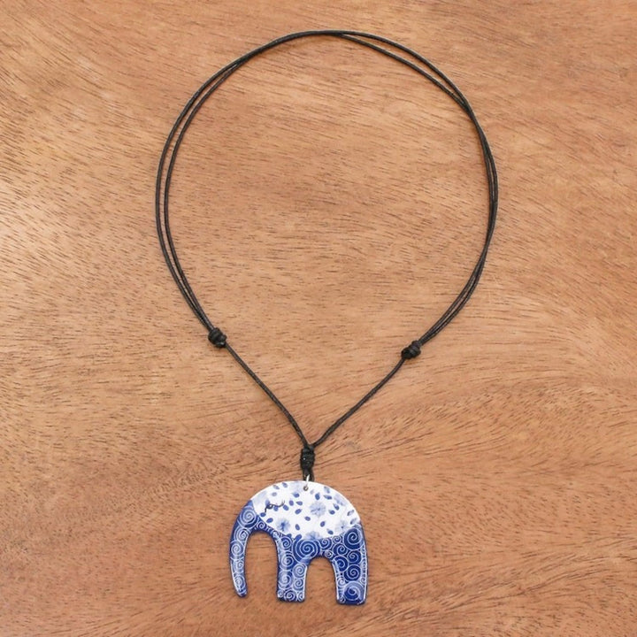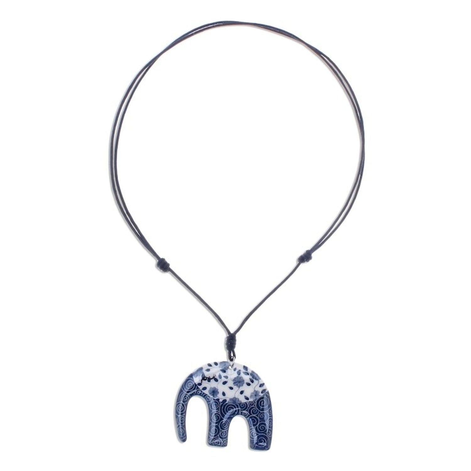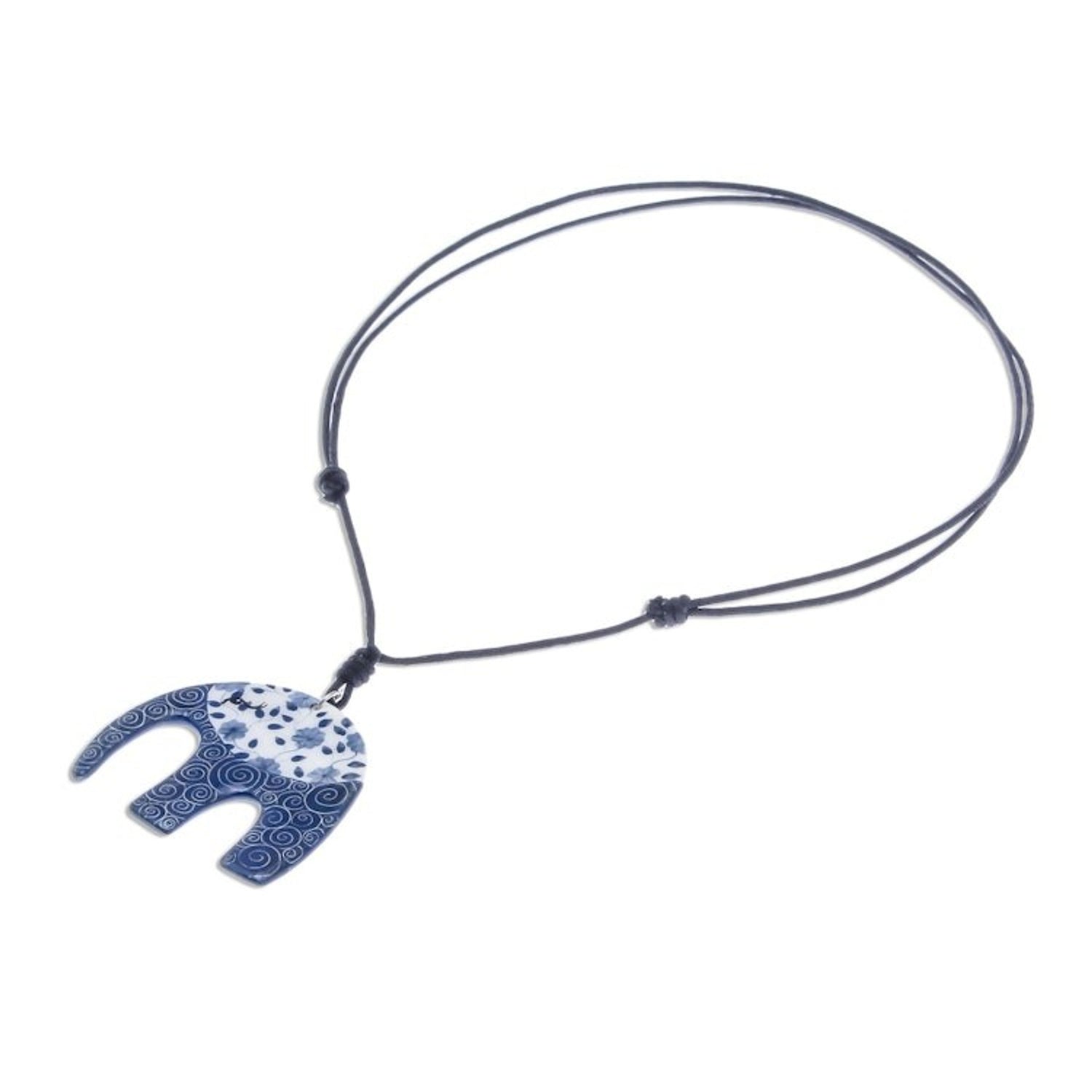 Blue and White Floral Elephant Ceramic Pendant Necklace 'Dark Floral Elephant'