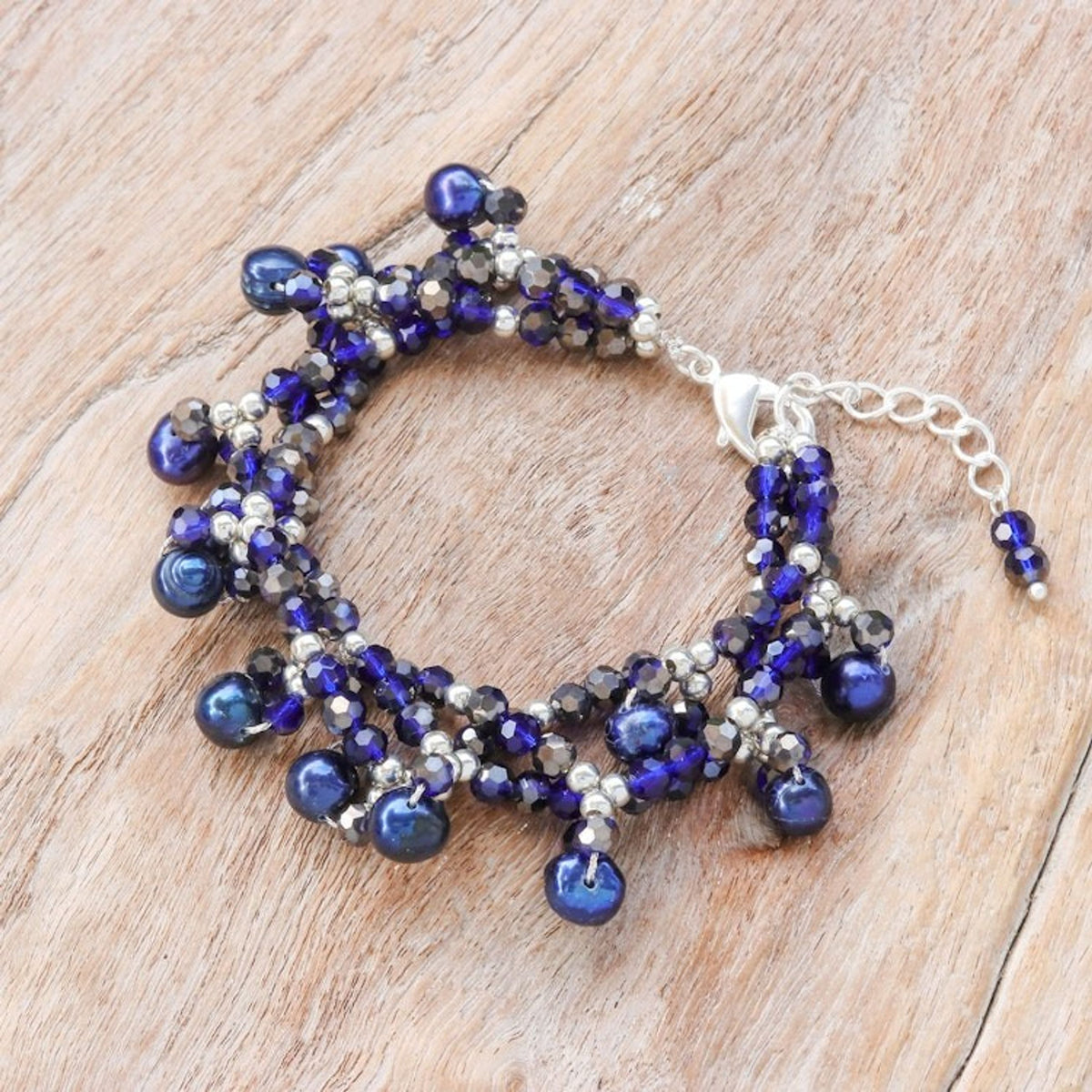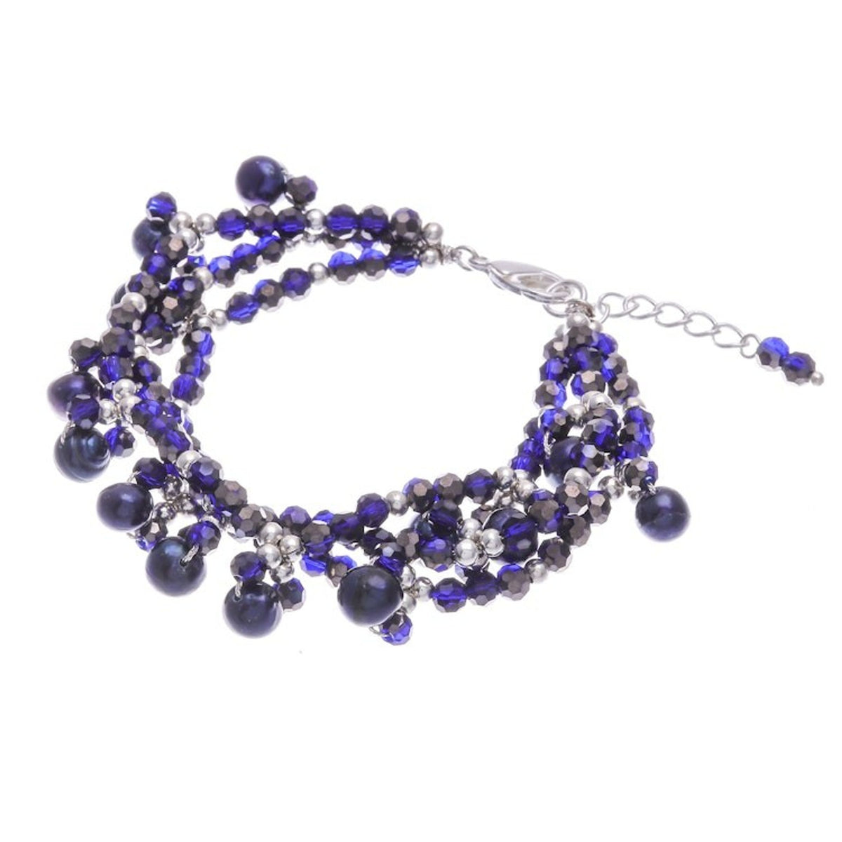 Blue Cultured Pearl Beaded Bracelet with Silver Accents 'Wonderful Blue'