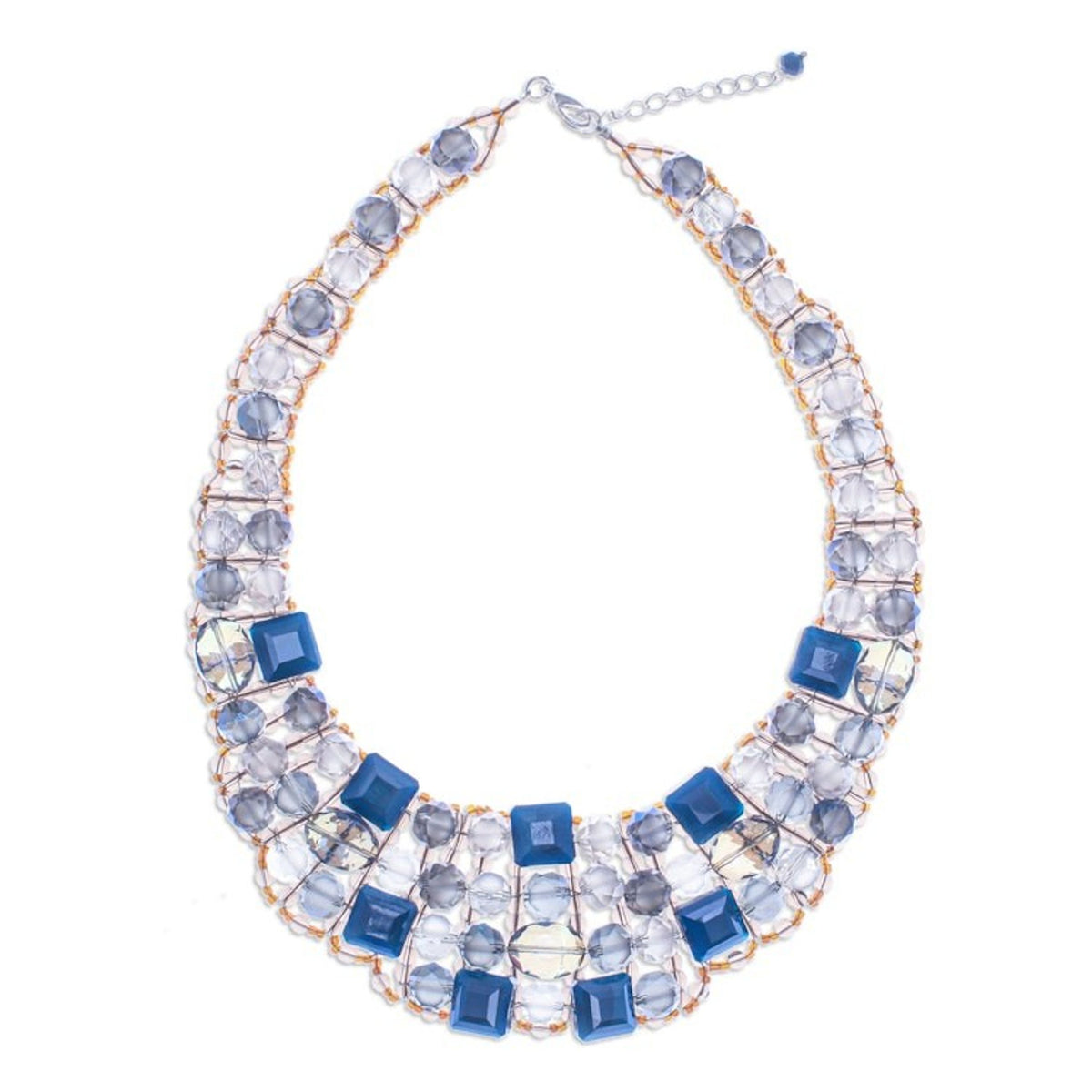 This 'Crystallized Blue Nights' by Independent Artisans is a beautiful glass beaded choker necklace. Designed by Nareerat, bright glass beads recreate a night of enchanting sensations. The choker boasts a silver-plated extender and clasp, allowing you to display the necklace's ethereal blue sparkles with comfort and sophistication.