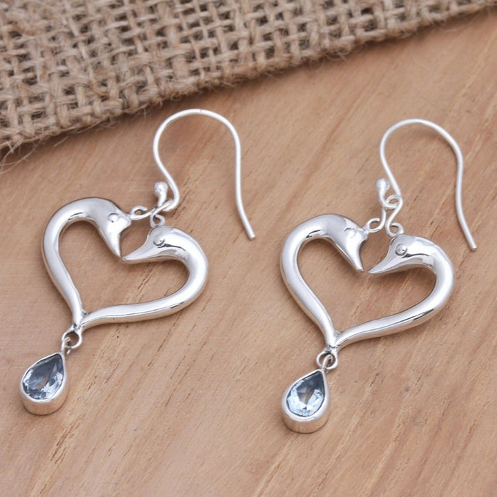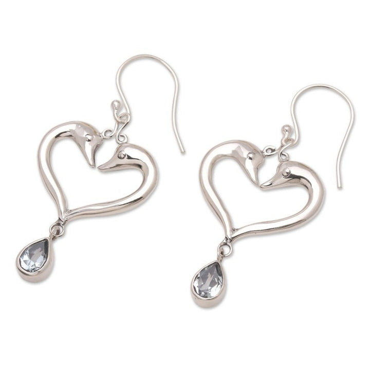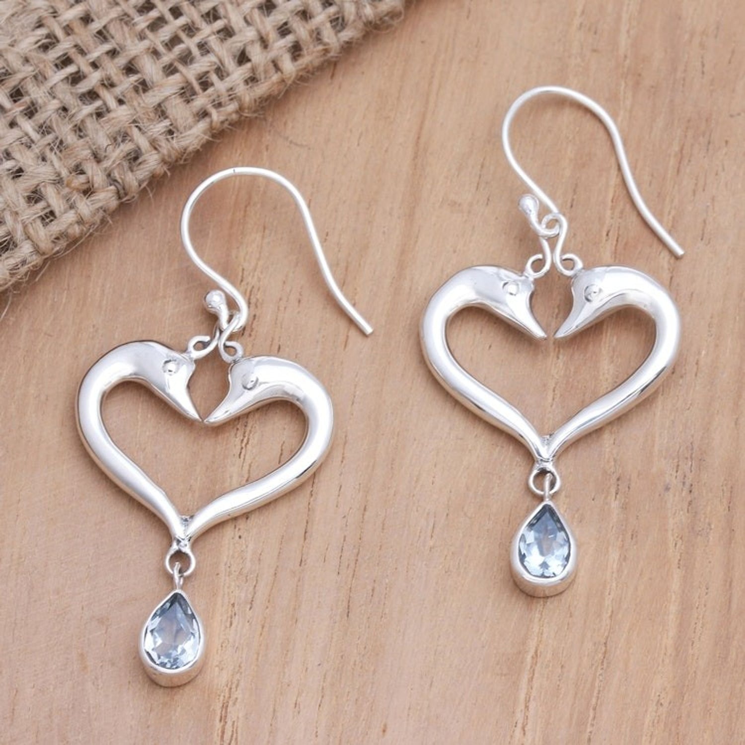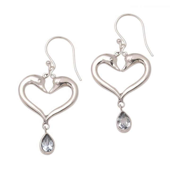 Blue Topaz Dolphin-Motif Dangle Earrings 'Young Romance'