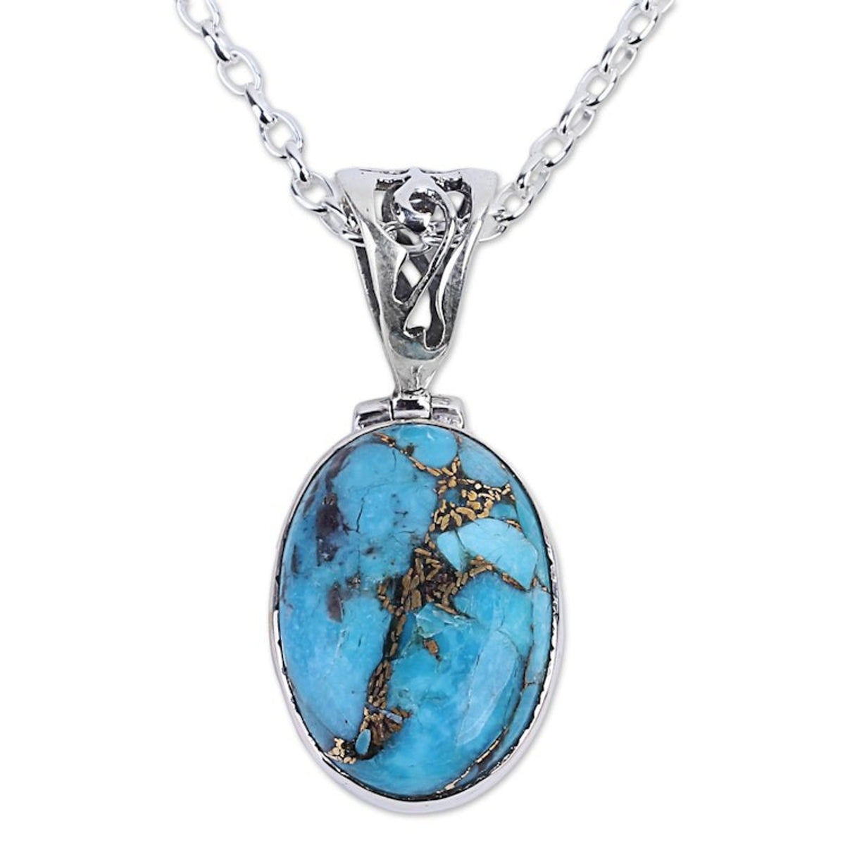 Blue Turquoise Sterling Silver Pendant Necklace India 'Mystical Blue'