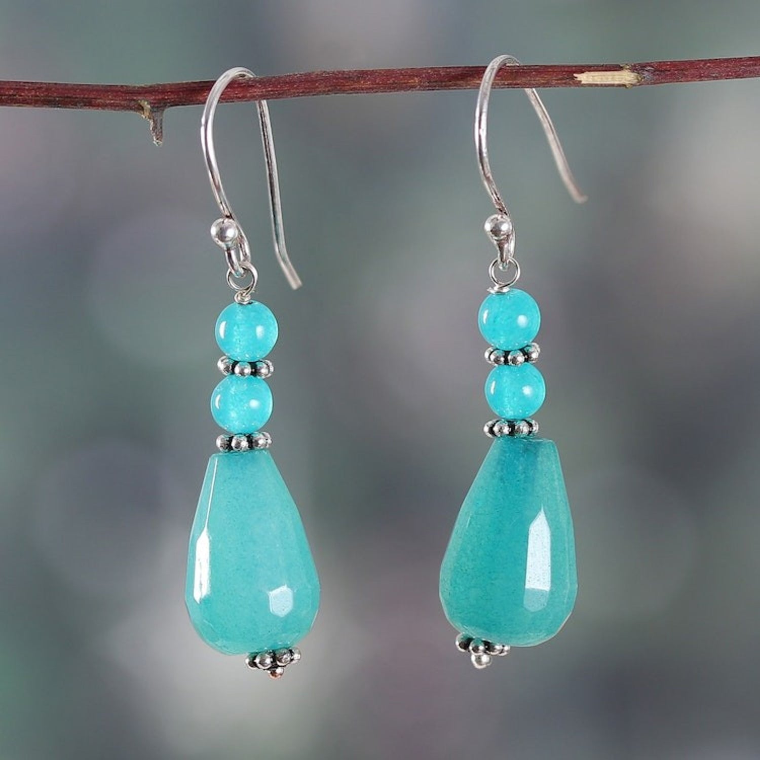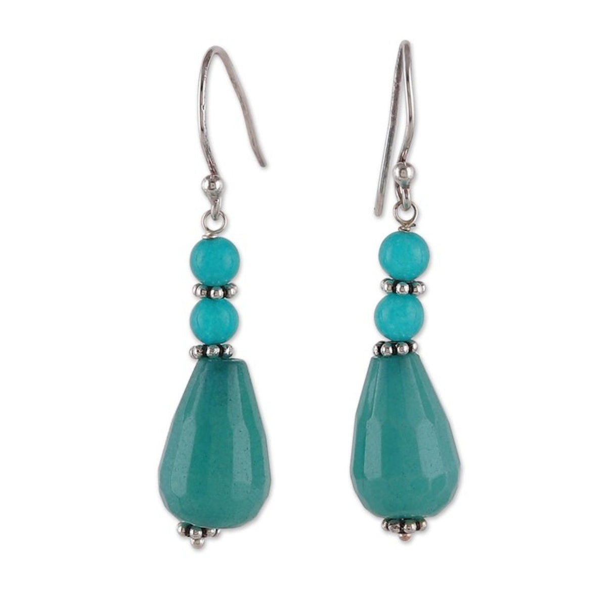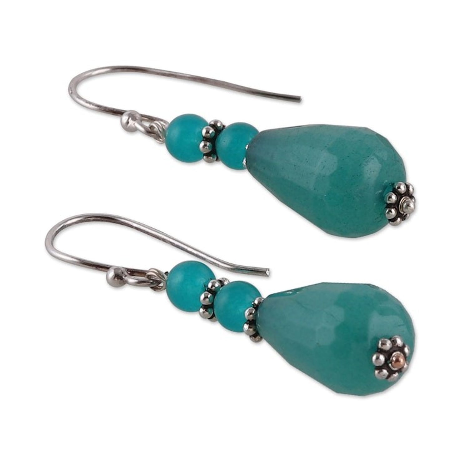 These 'Green Muse' by Independent Artisans are a beautiful pair of dangle earrings. Designed by Narayani, a refreshing palette of green hues makes this design a must-have in your jewelry collection. Crafted by master Indian artisans, these sterling silver earrings reunite aventurine and green agate gems, decorating them with classic details.