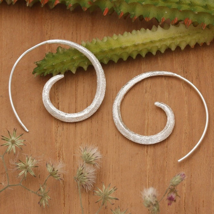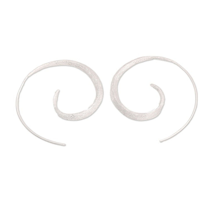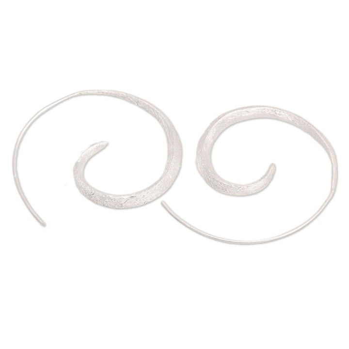 These 'Whirlpool Light' half-hoop earrings by Independent Artisans are a magical blend of modern style and enchanting artistry. Designed by Balinese artisan Desi Antari, these sterling silver half-hoops feature a spiral shape that creates a charming optical illusion. The brushed satin finish adds a sophisticated texture, while the design's avant-garde spirit makes these earrings a unique and eye-catching accessory. They are a perfect choice for those who appreciate innovative design with a hint of whimsy.