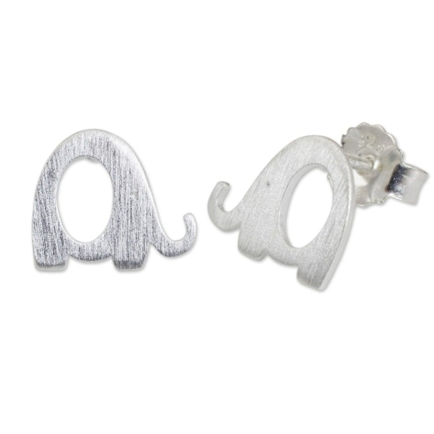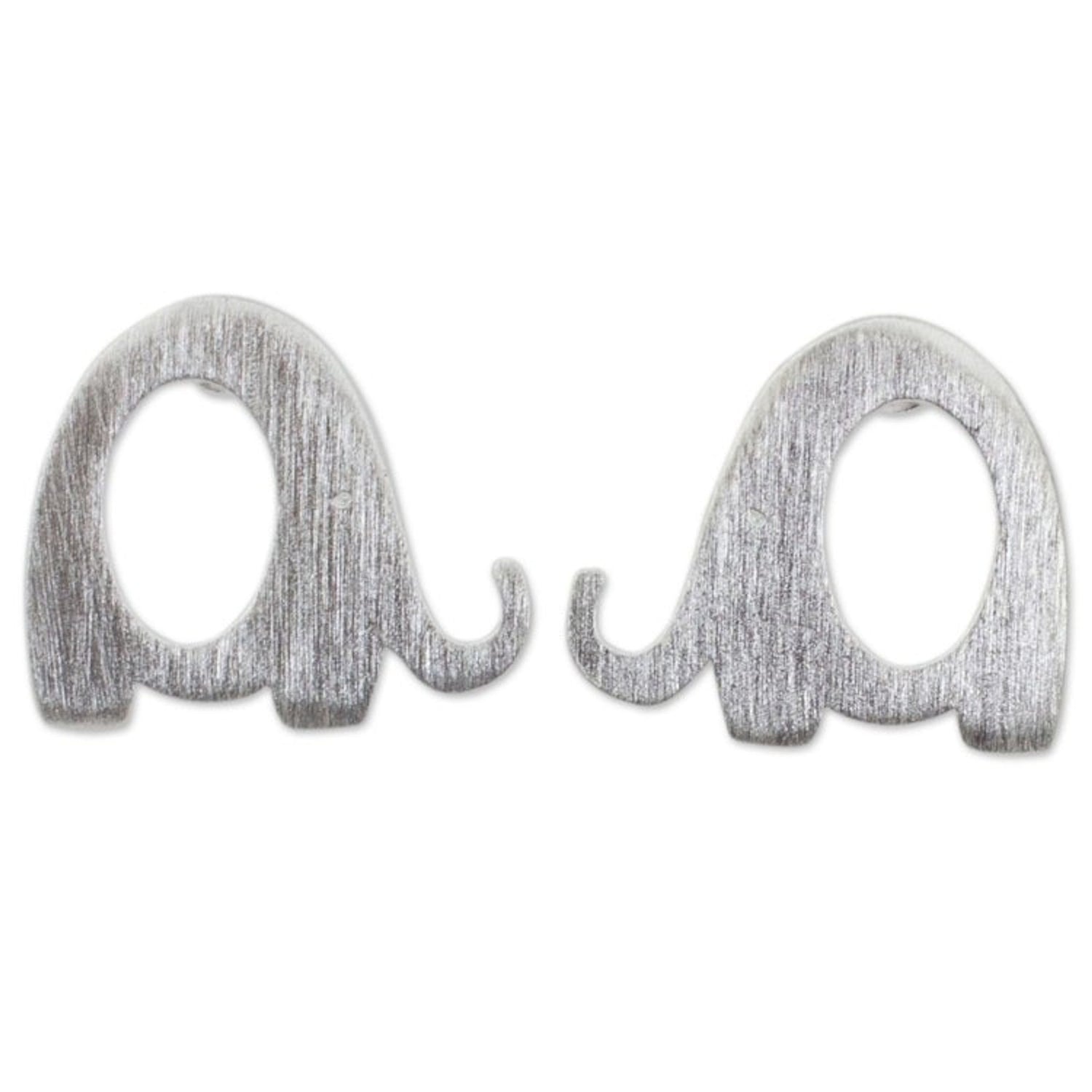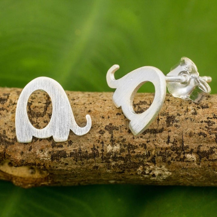 Brushed Silver Elephant Stud Earrings from Thai Artisan 'Tiny Elephants'