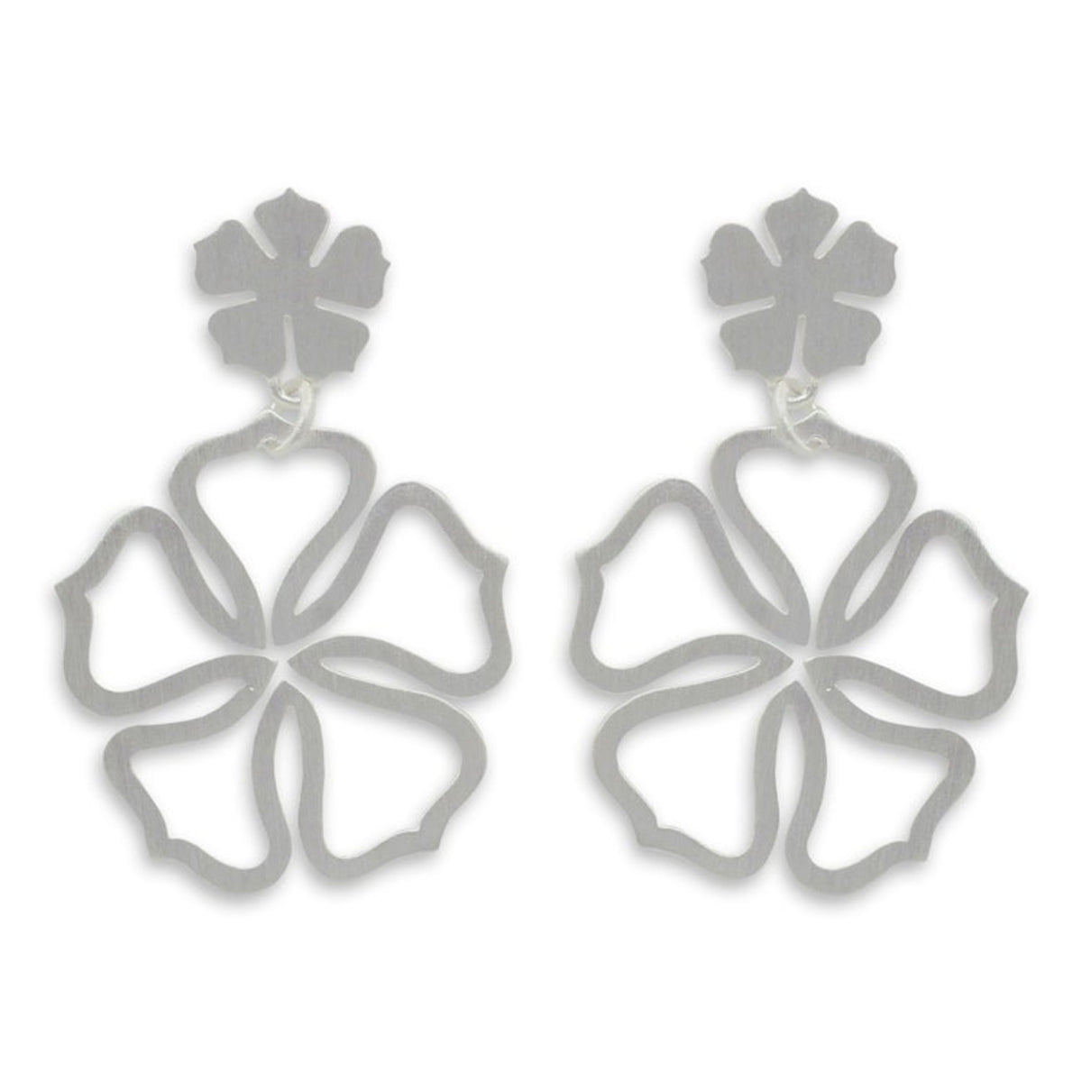 Brushed Sterling Silver Rose Dangle Earrings 'Chinese Rose'