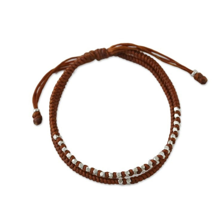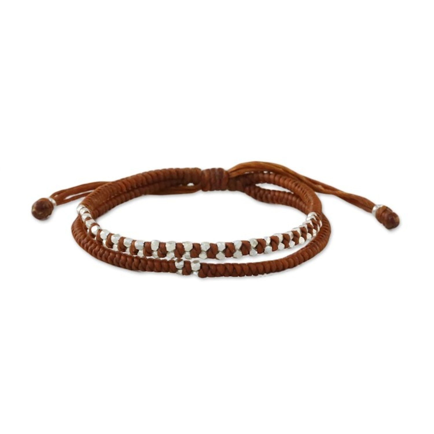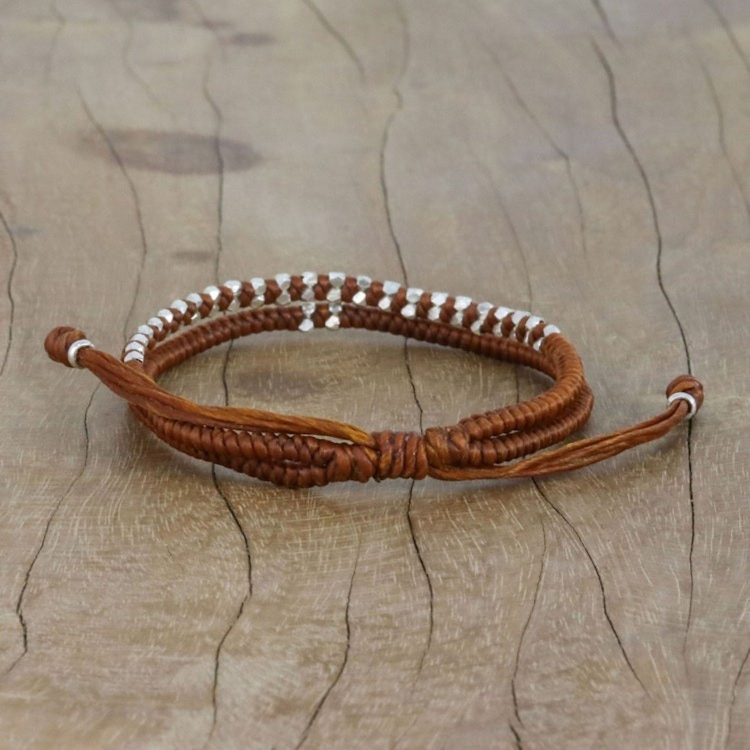 Burnt Sienna Cord Bracelet with Silver Beads 'Everyday Thai in Burnt Sienna'