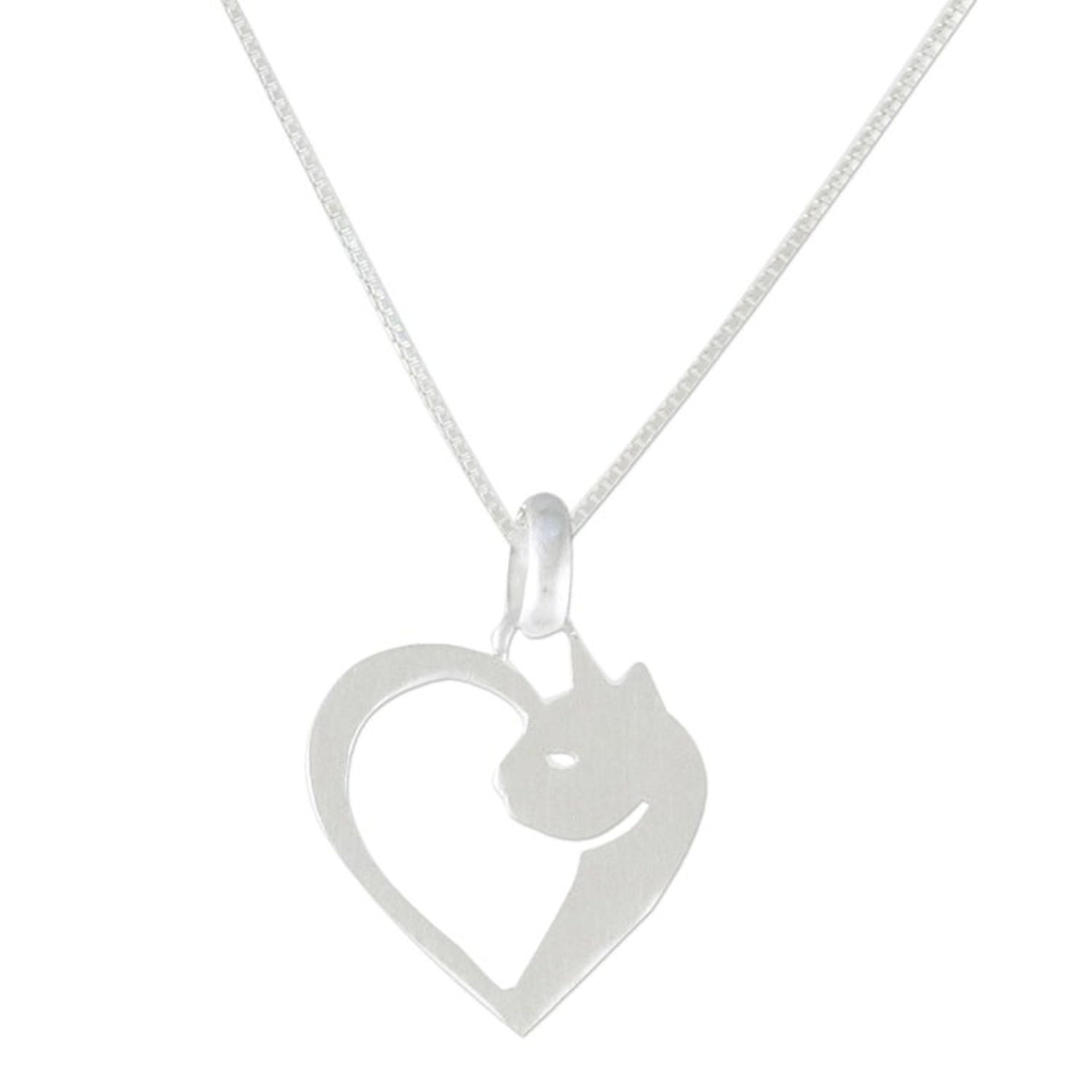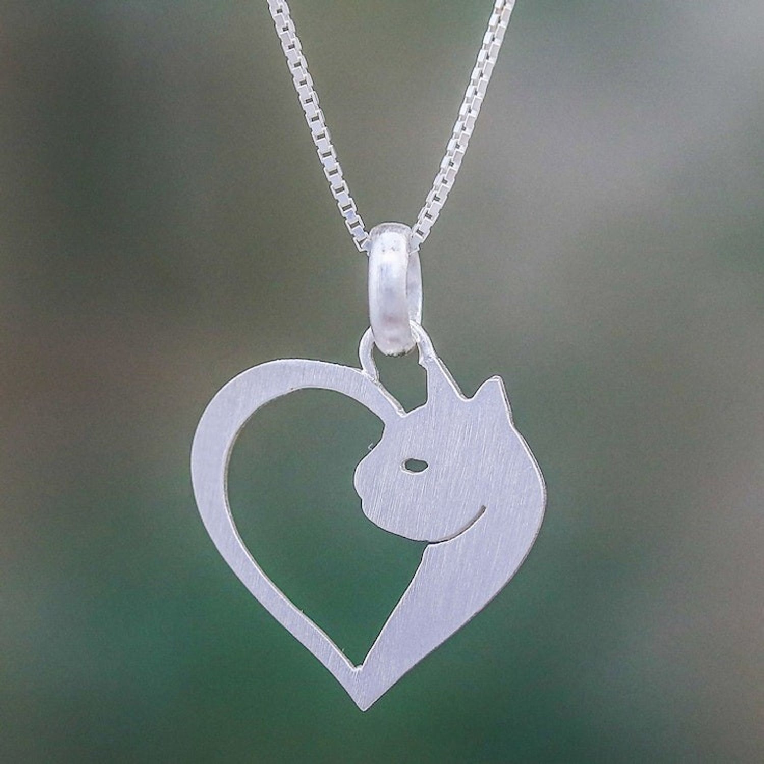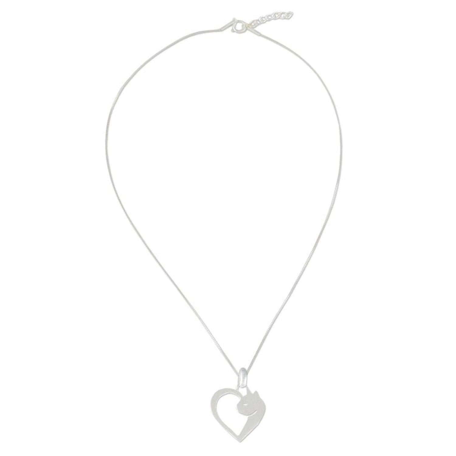 Cat Heart Sterling Silver Pendant Necklace from Thailand 'Soul of a Kitten'