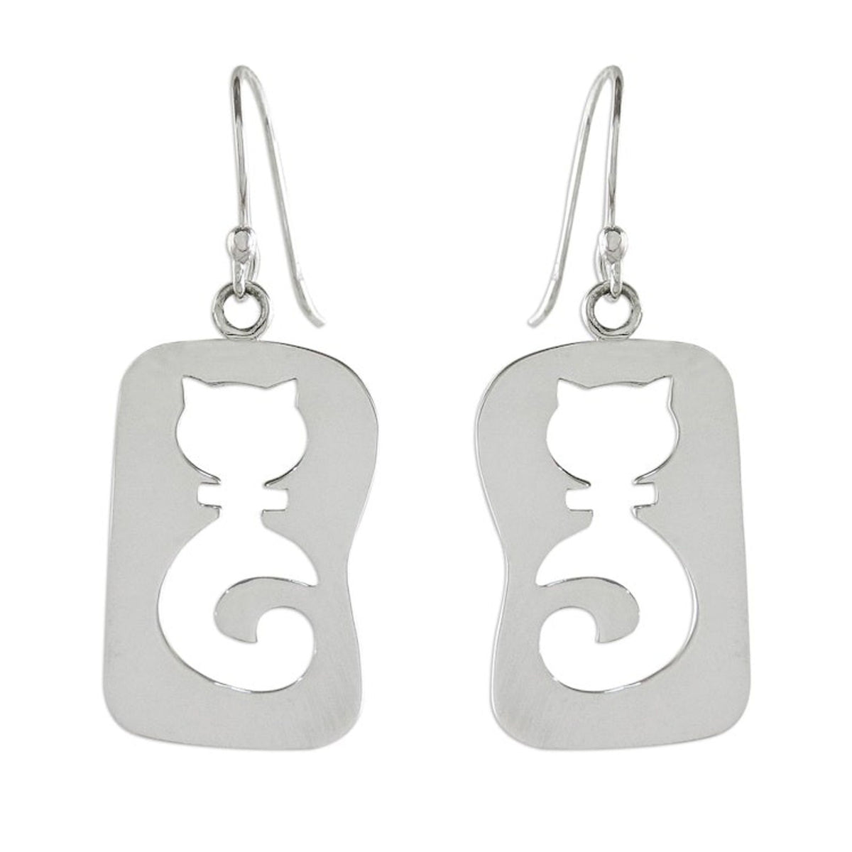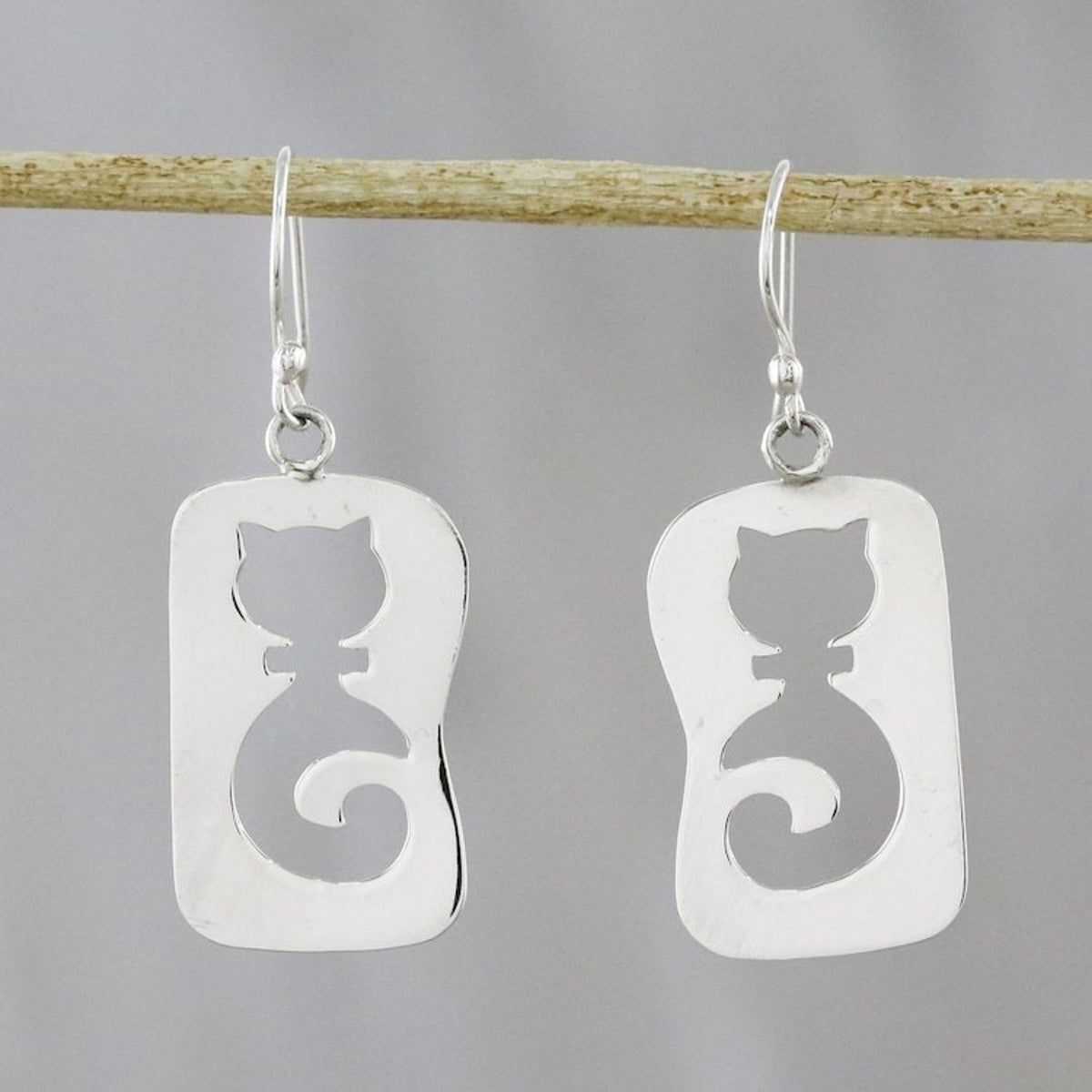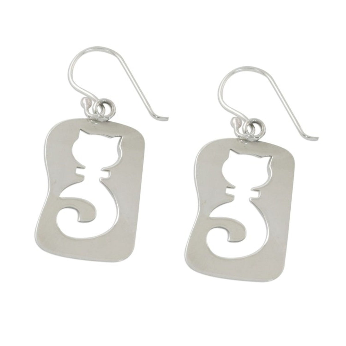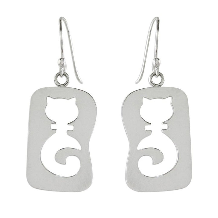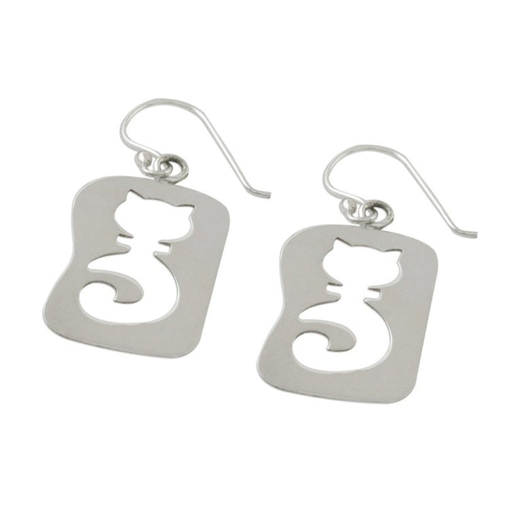 Cat-Themed Sterling Silver Dangle Earrings from Thailand 'Feline Silhouettes'