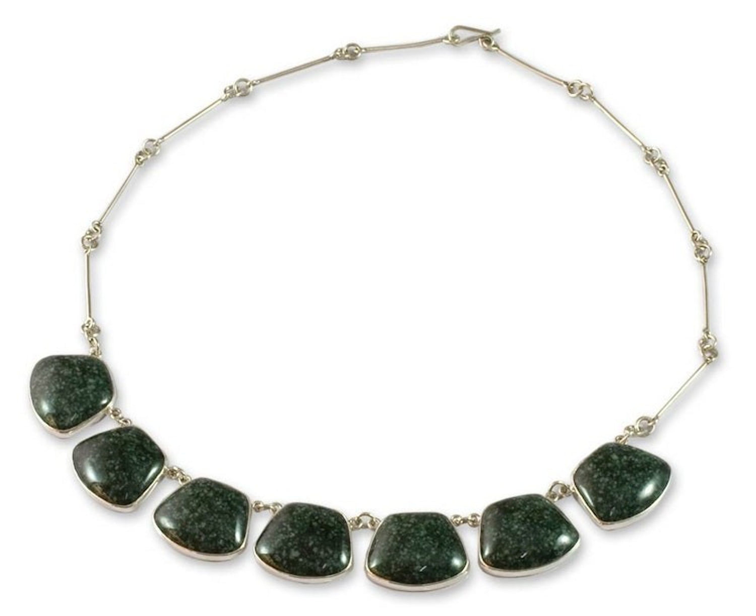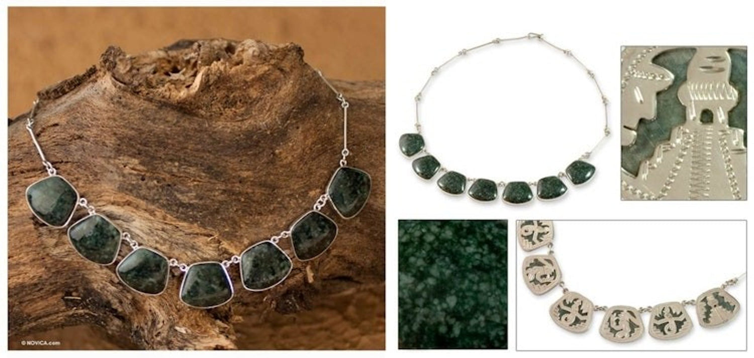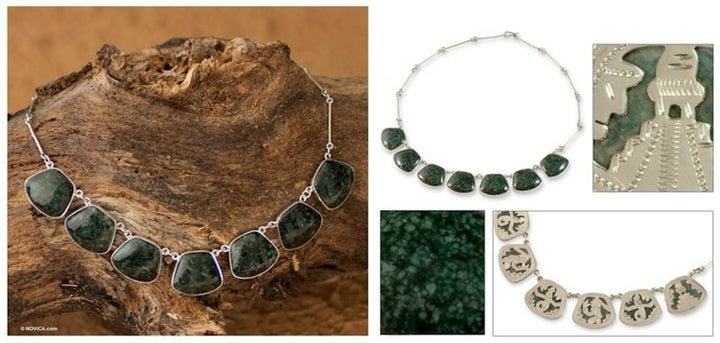 Central American Sterling Silver Jade Necklace 'Maya Legends'