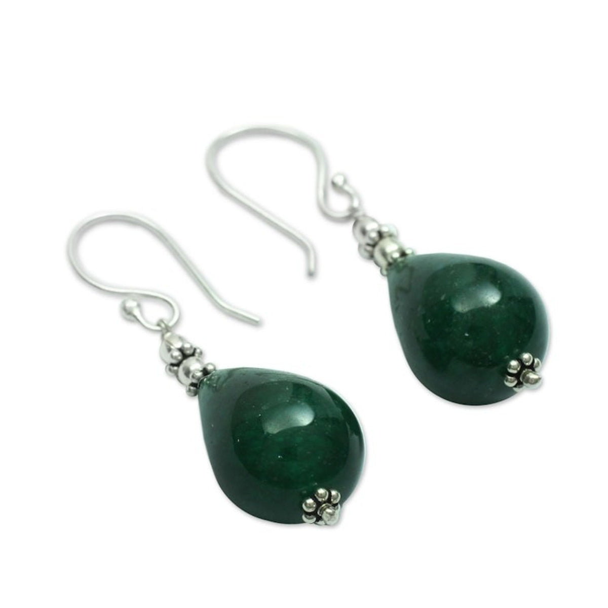 Chalcedony dangle earrings 'Emerald Dewdrop'