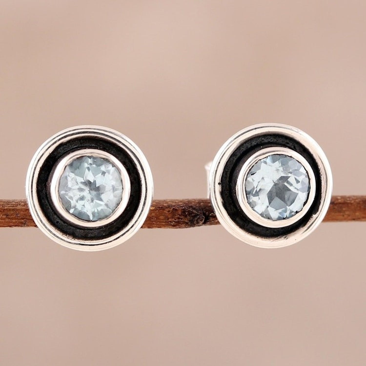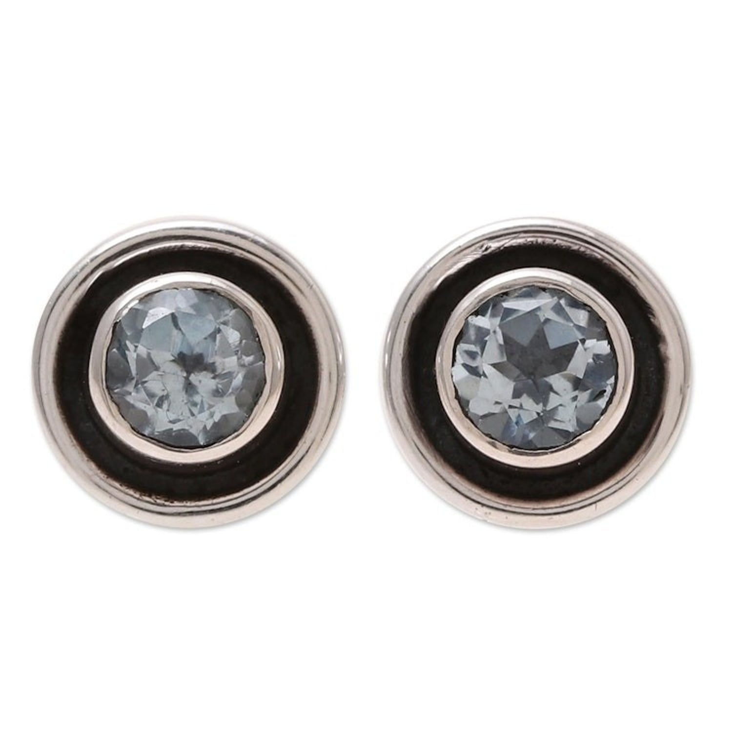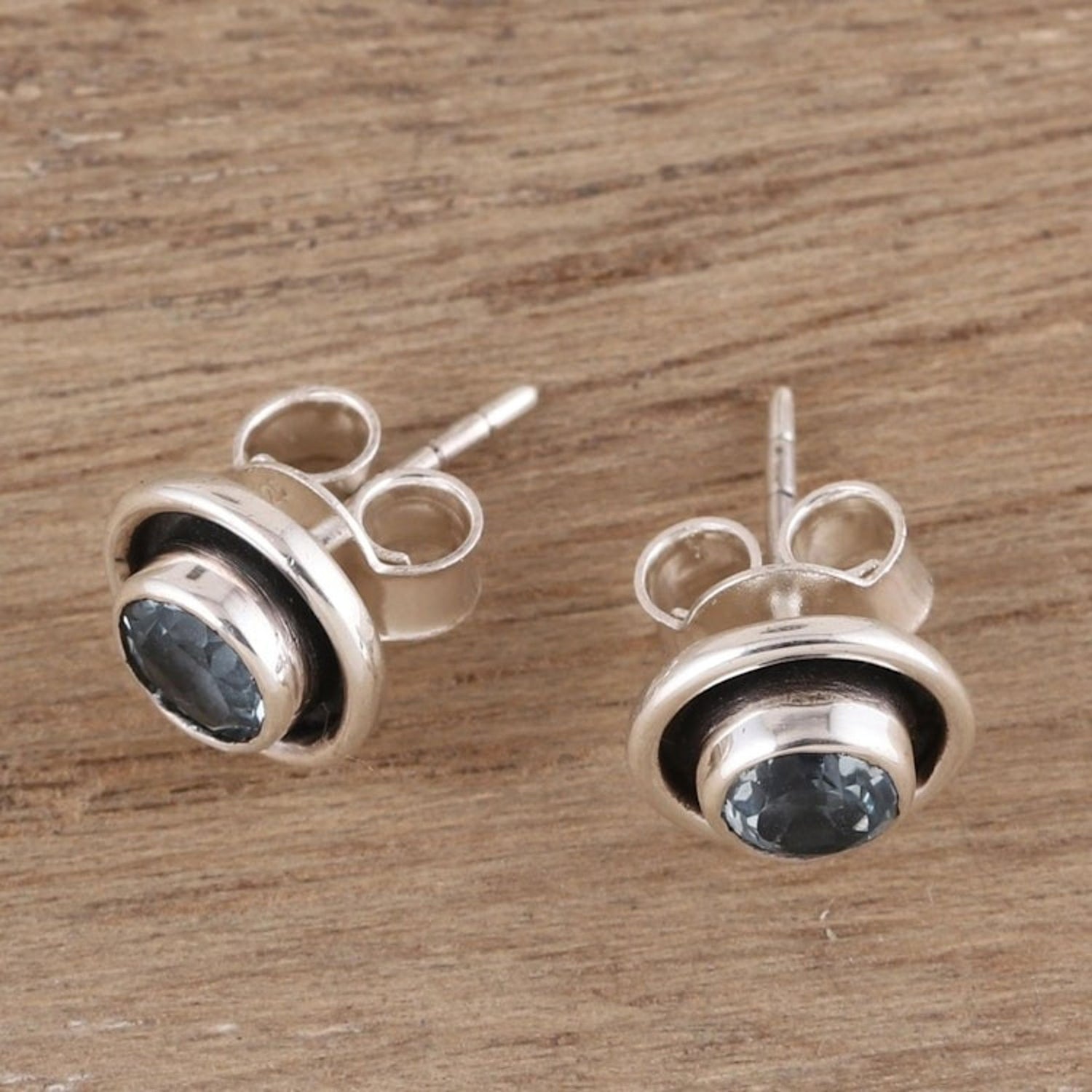 Circular Blue Topaz Stud Earrings from India 'Graceful Frames'
