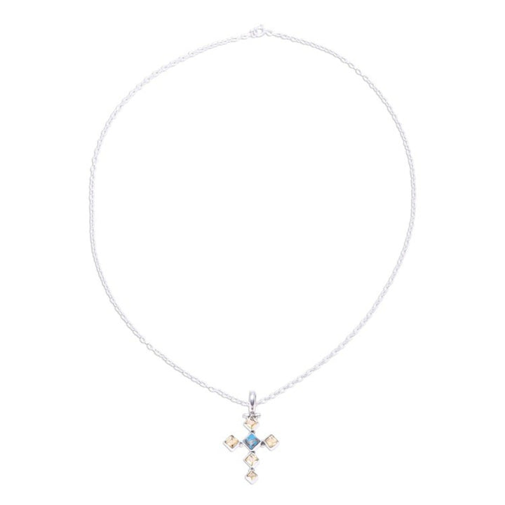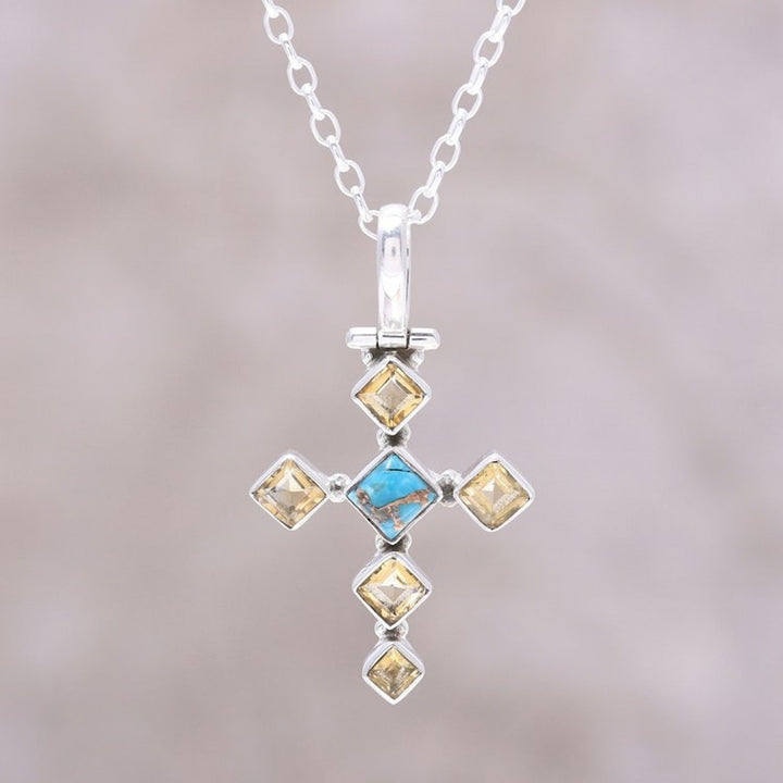 Citrine and Composite Turquoise Cross Pendant Necklace 'Sunny Cross'