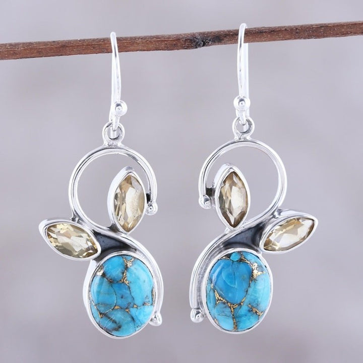 Citrine and Composite Turquoise Dangle Earrings from India 'Dazzling Sparkle'